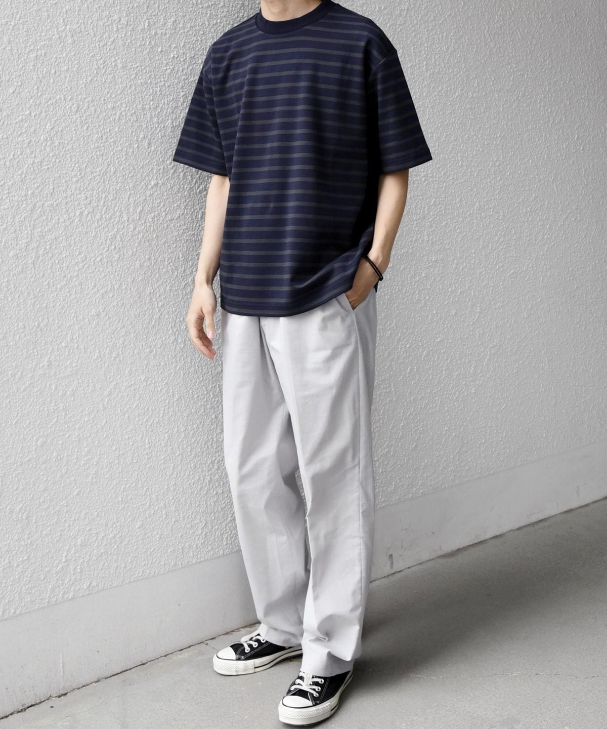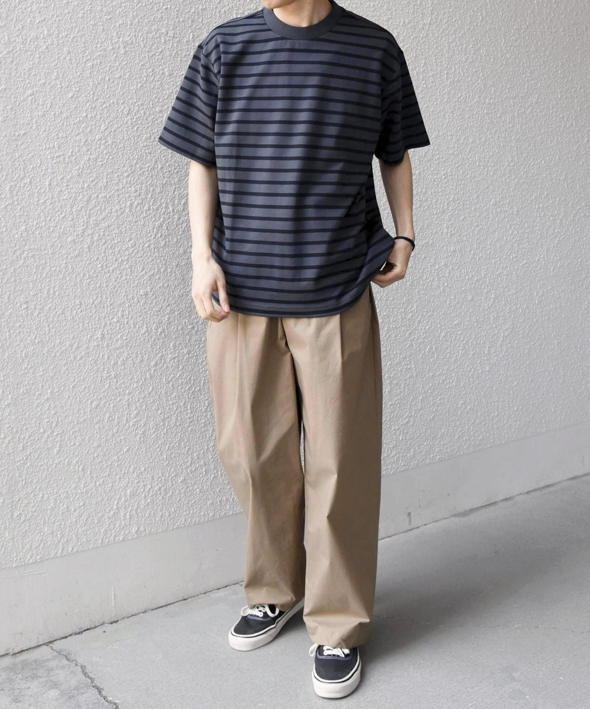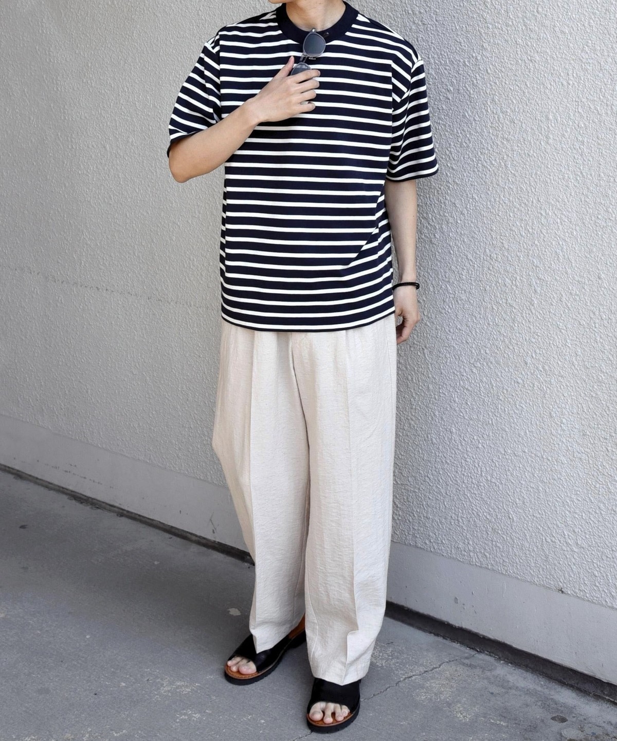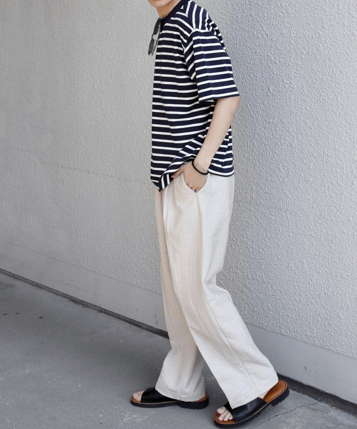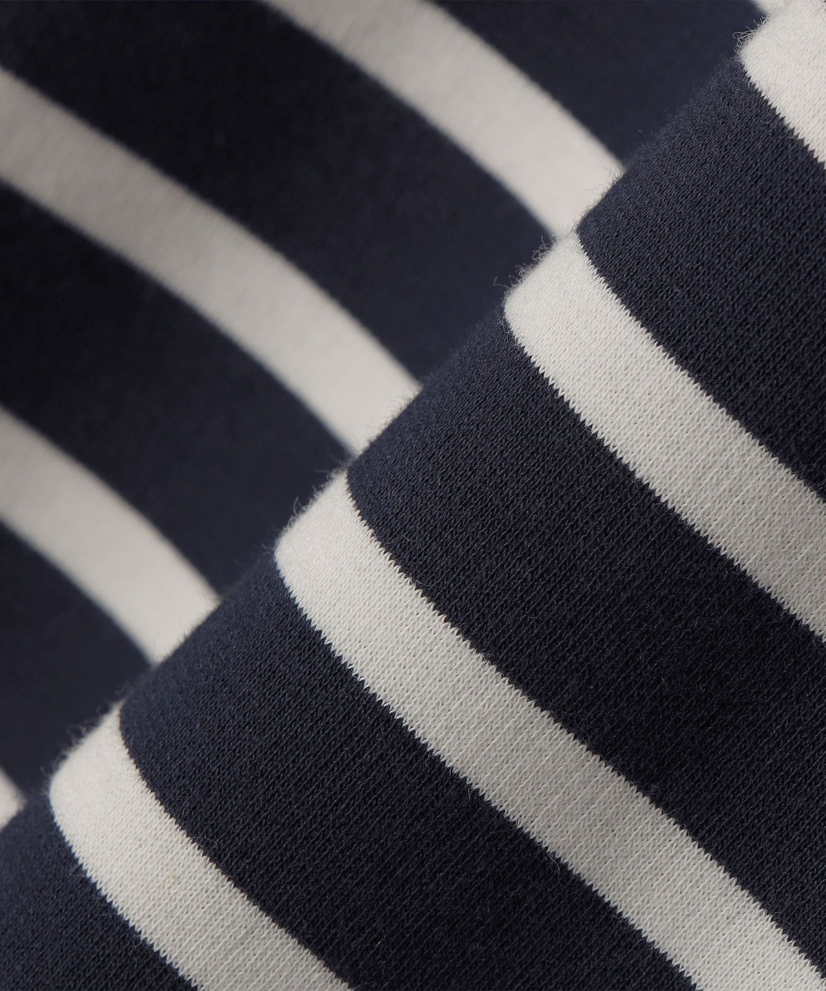 大人も着やすいようにボーダーピッチこだわり、カジュアルになりすぎず上品な印象に仕上げています。