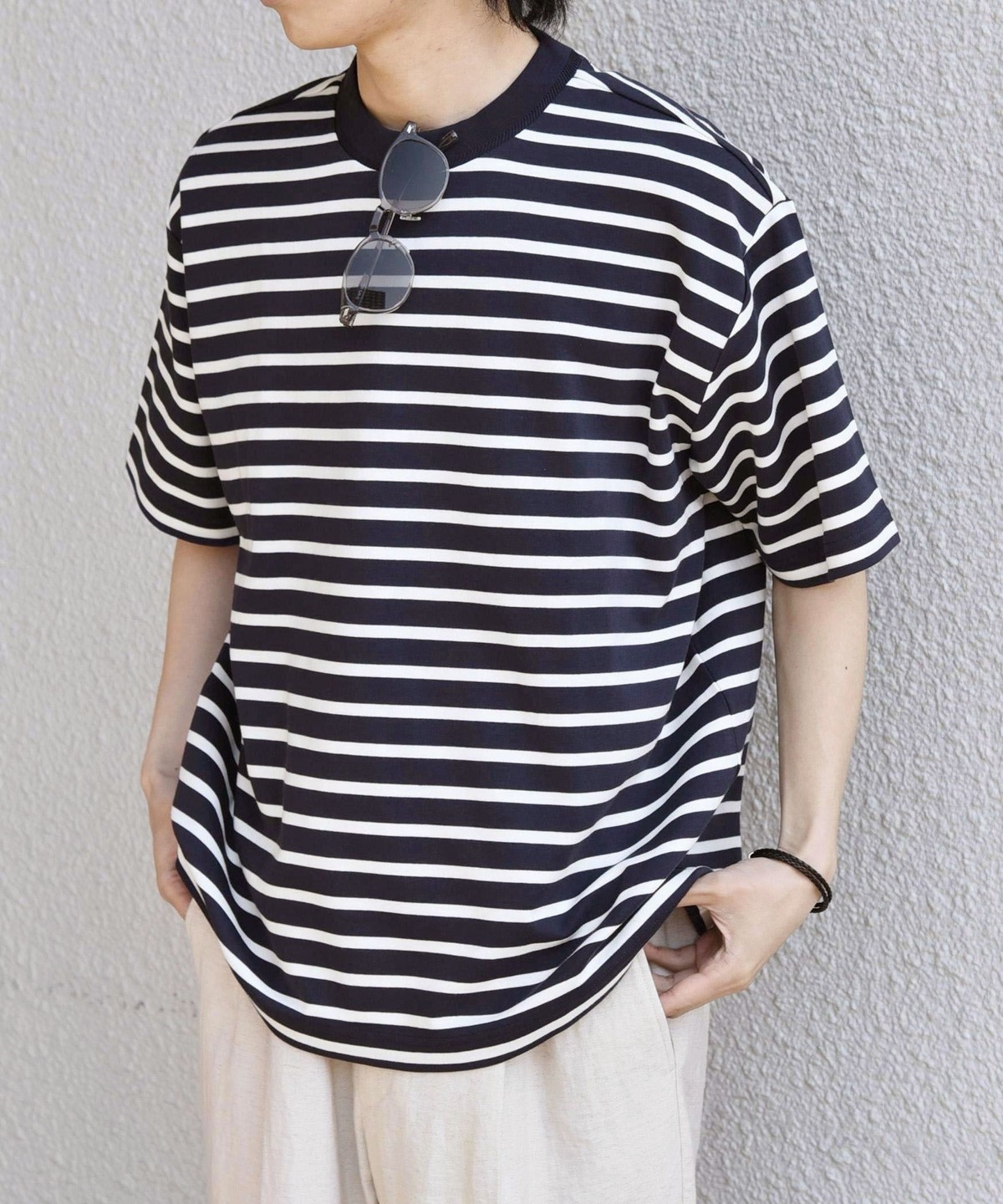 SHIPS any:〈洗濯機可能〉デザイン リブ ベーシック ボーダー Tシャツ◆