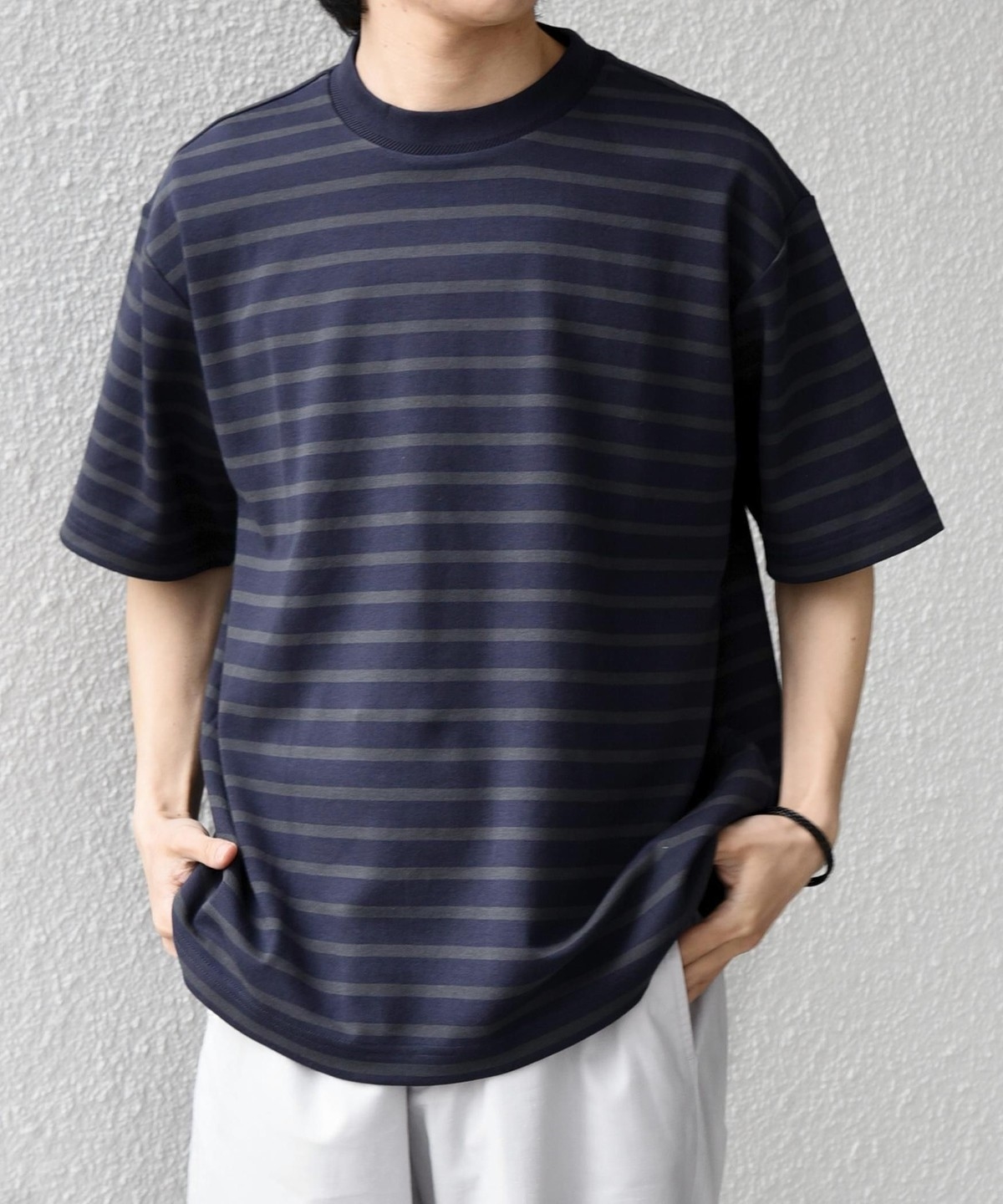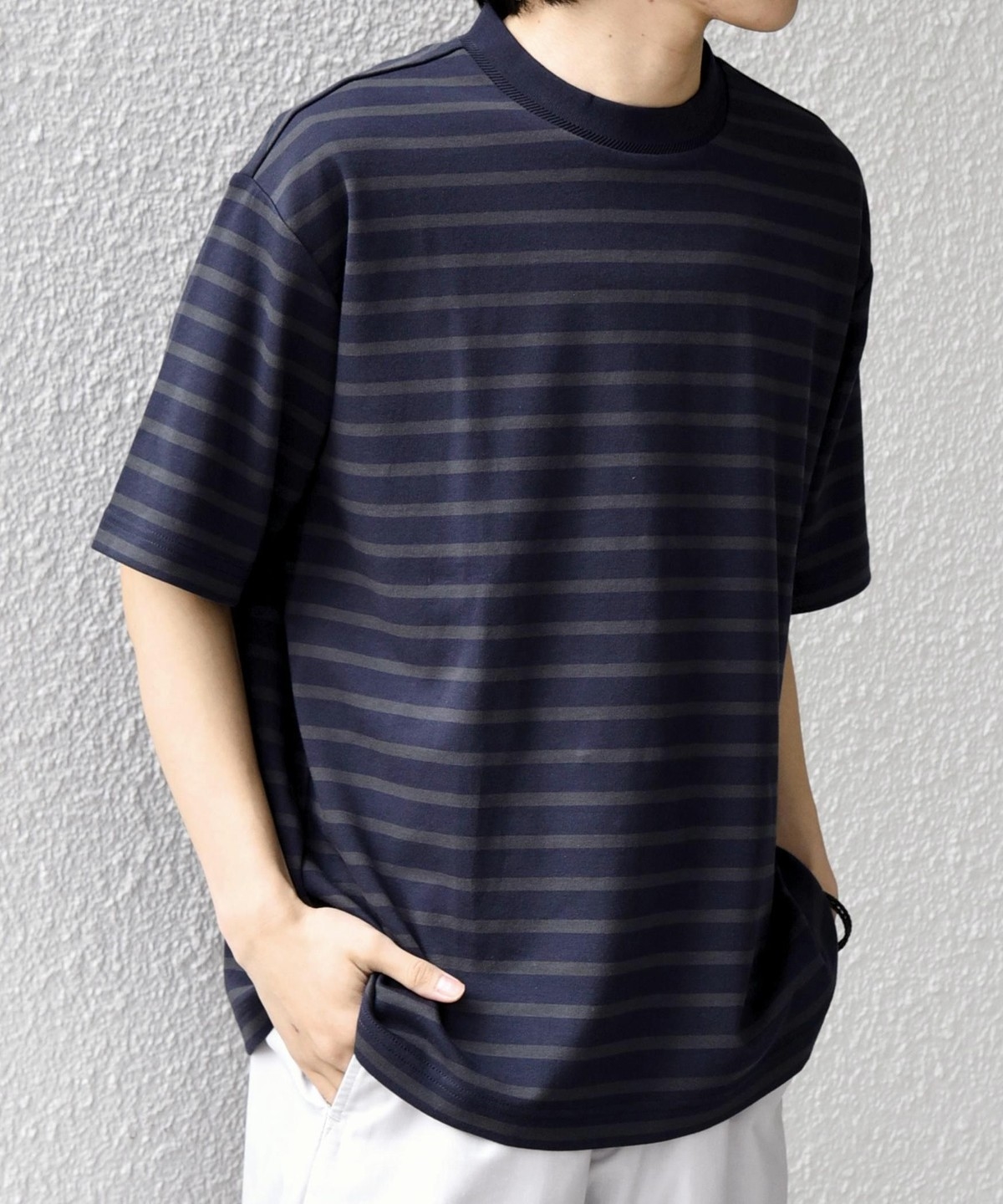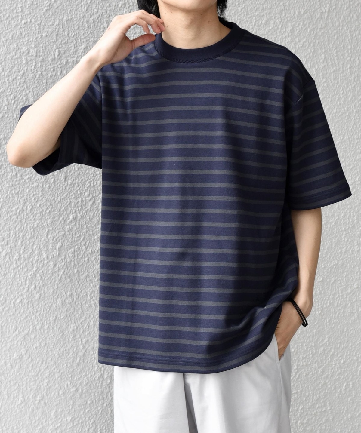 さりげない首元の編み柄がポイント!ベーシックなデザインのボーダーTシャツ