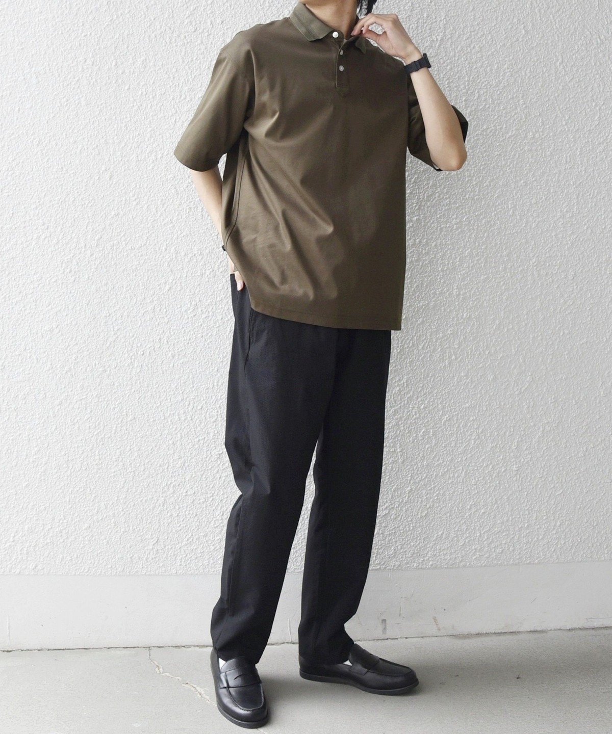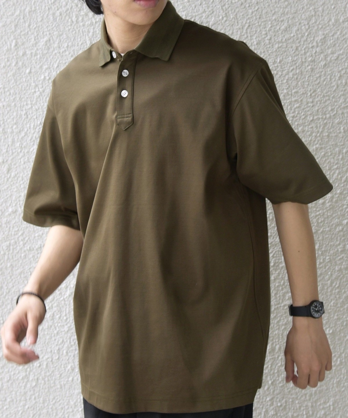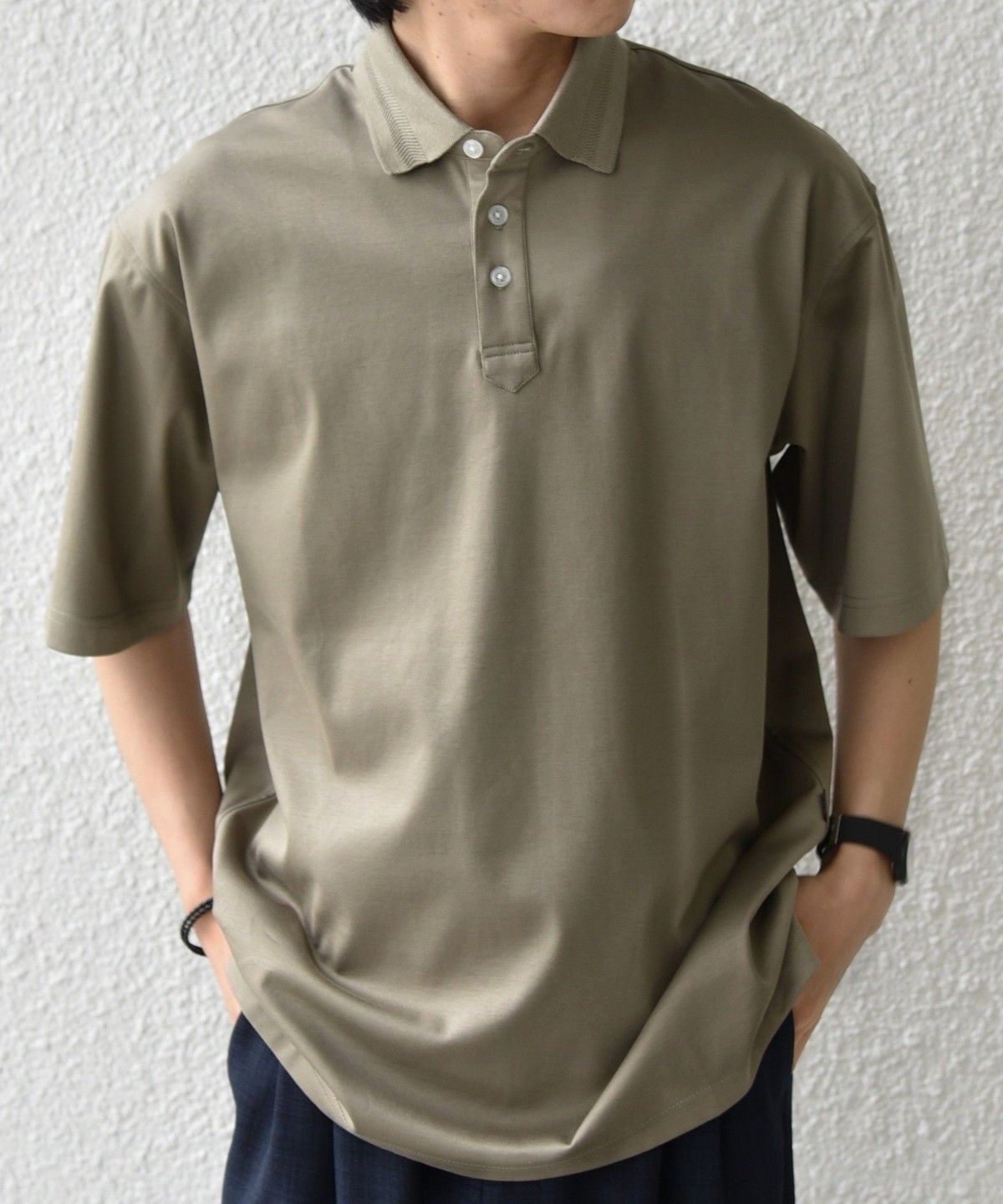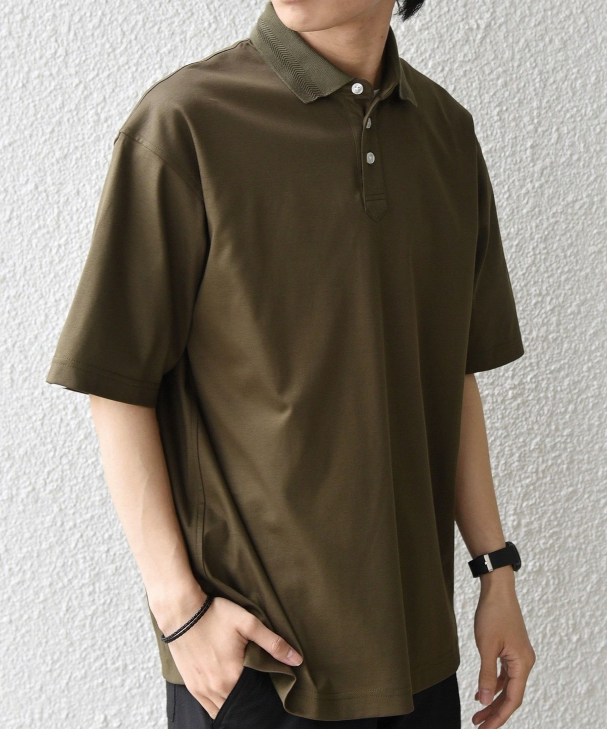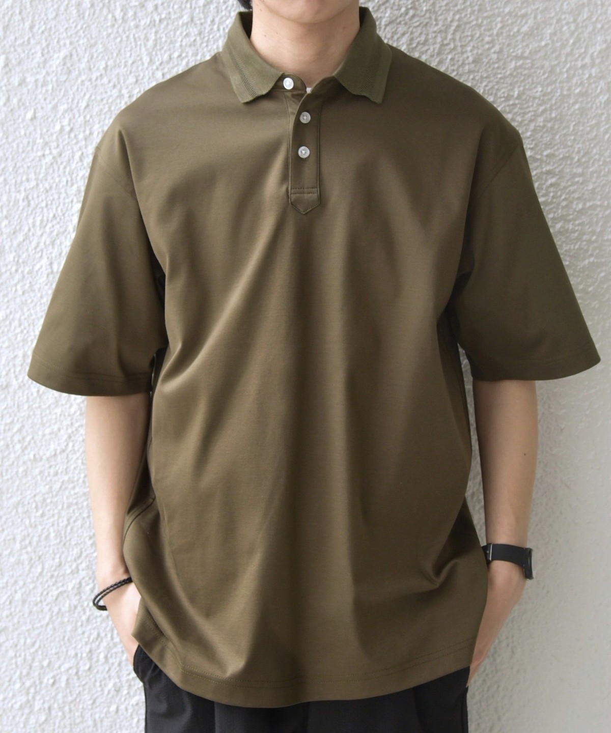 4. SHIPS any:〈接触冷感/遮熱/UVカット〉COOL TOUCH スムース デザイン リブ ポロシャツ◆ オリーブ