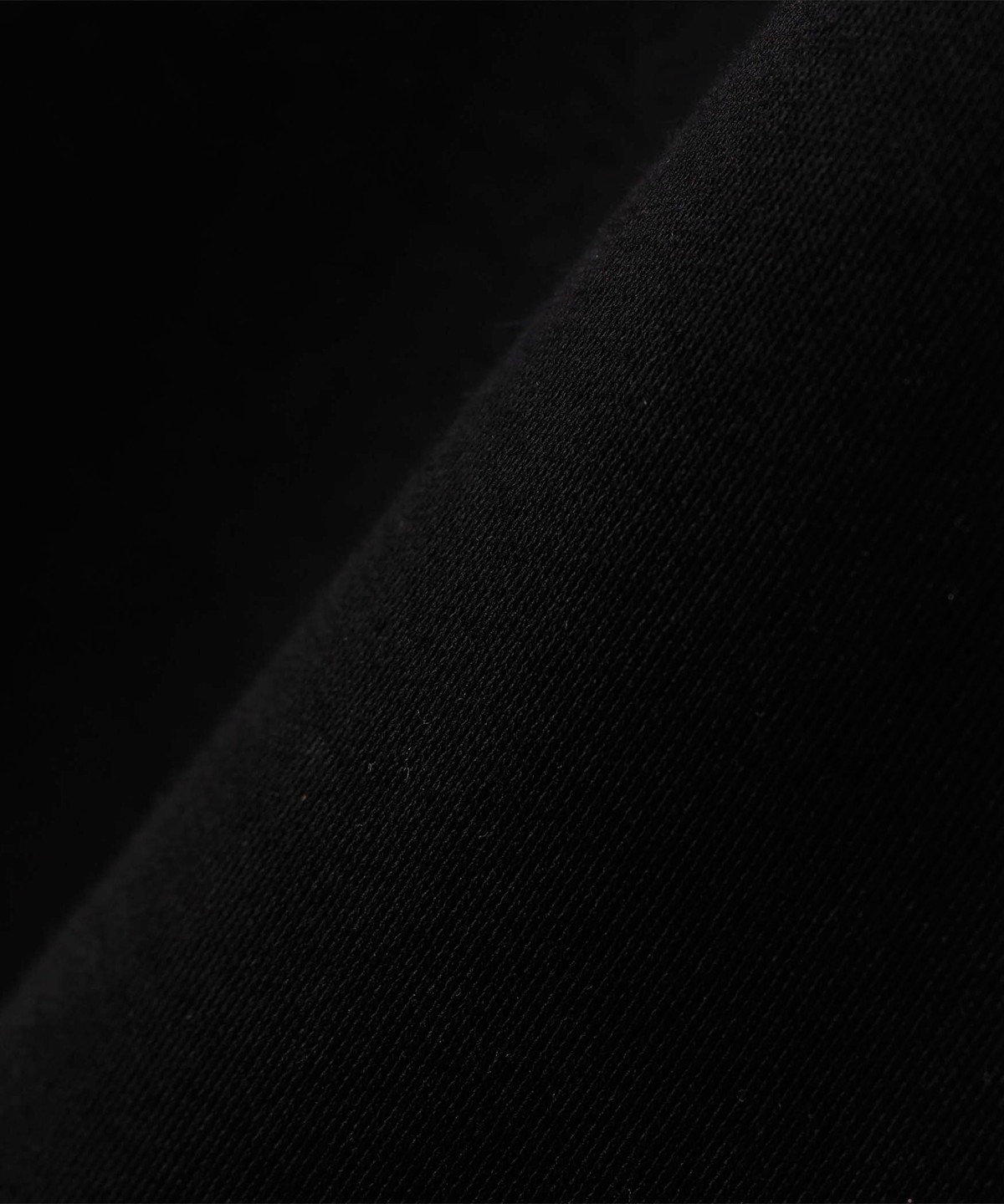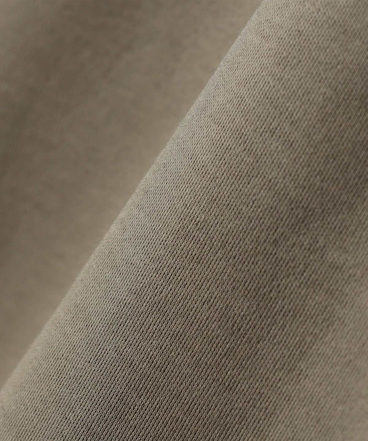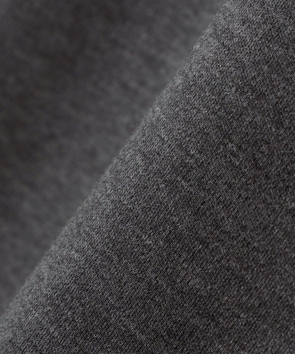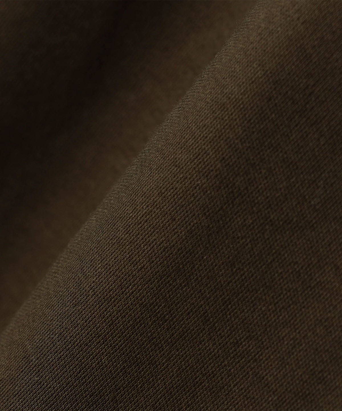 襟には編みで表現したラインディテール、脇部分にはブランドロゴのピスネームを配し、シンプルな中にさりげないアクセントをプラス。