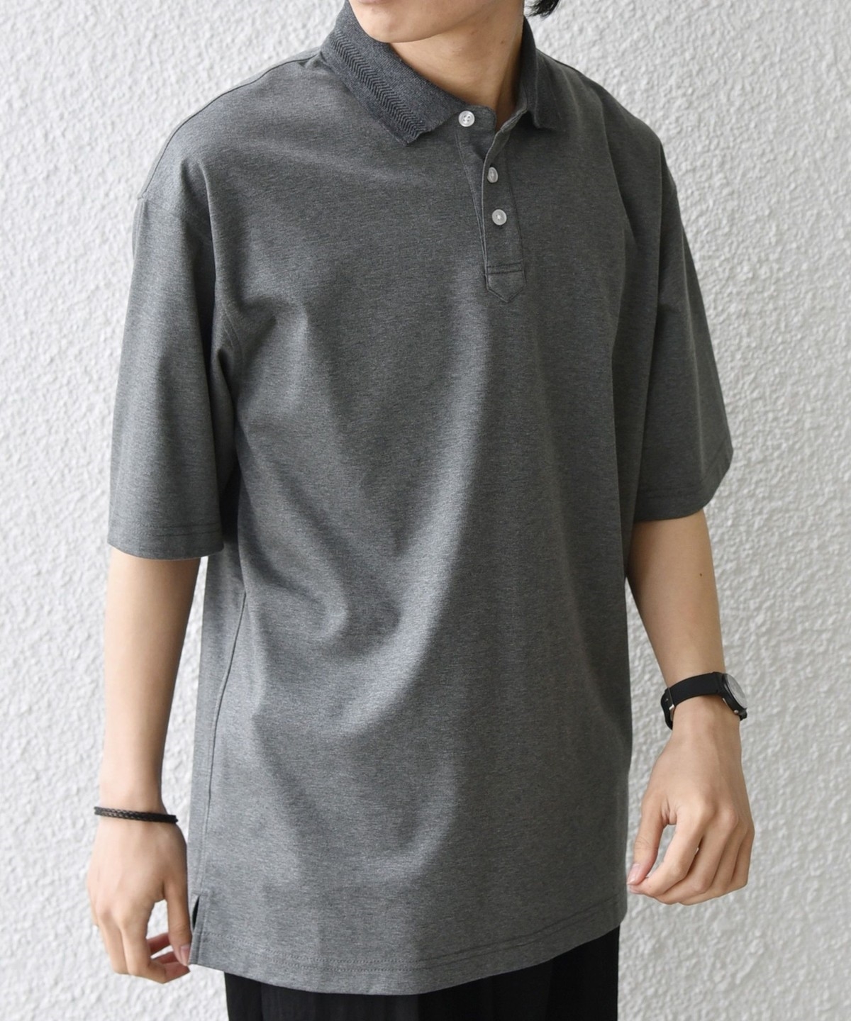 2. SHIPS any:〈接触冷感/遮熱/UVカット〉COOL TOUCH スムース デザイン リブ ポロシャツ◆ チャコールグレー