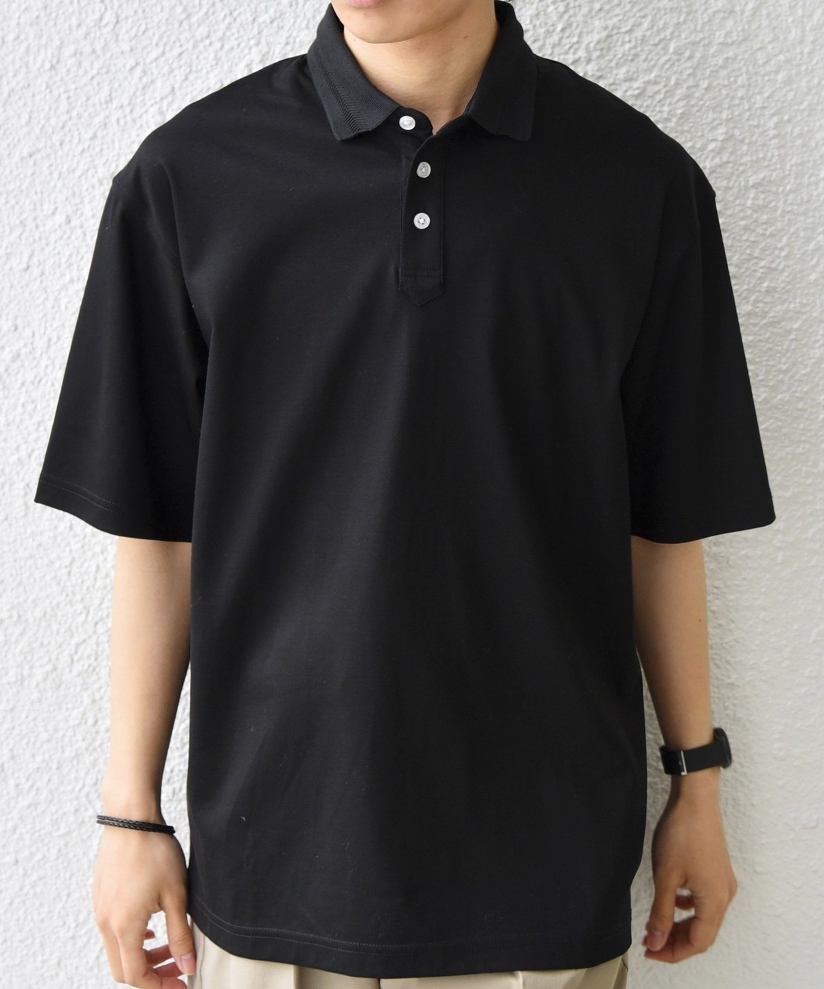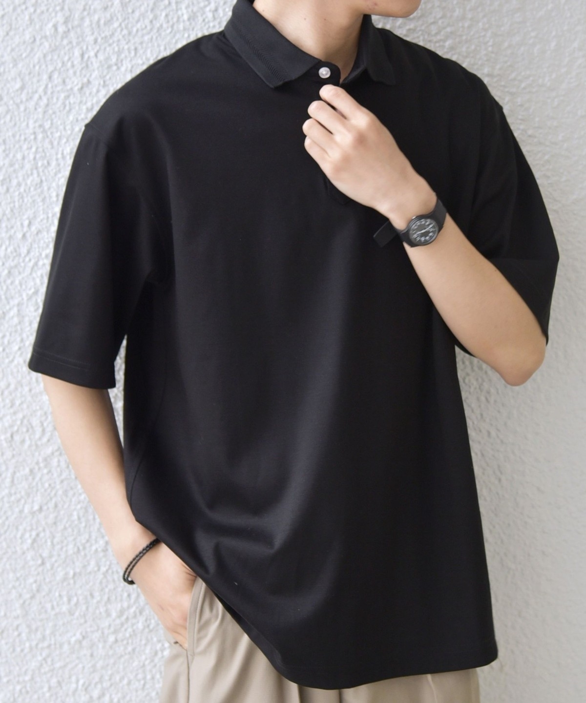1. SHIPS any:〈接触冷感/遮熱/UVカット〉COOL TOUCH スムース デザイン リブ ポロシャツ◆ ブラック
