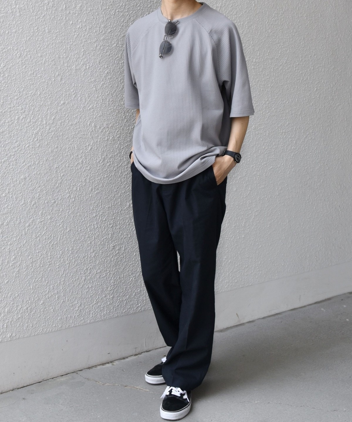 ややゆったりとしたシルエットがこなれた雰囲気を演出します。