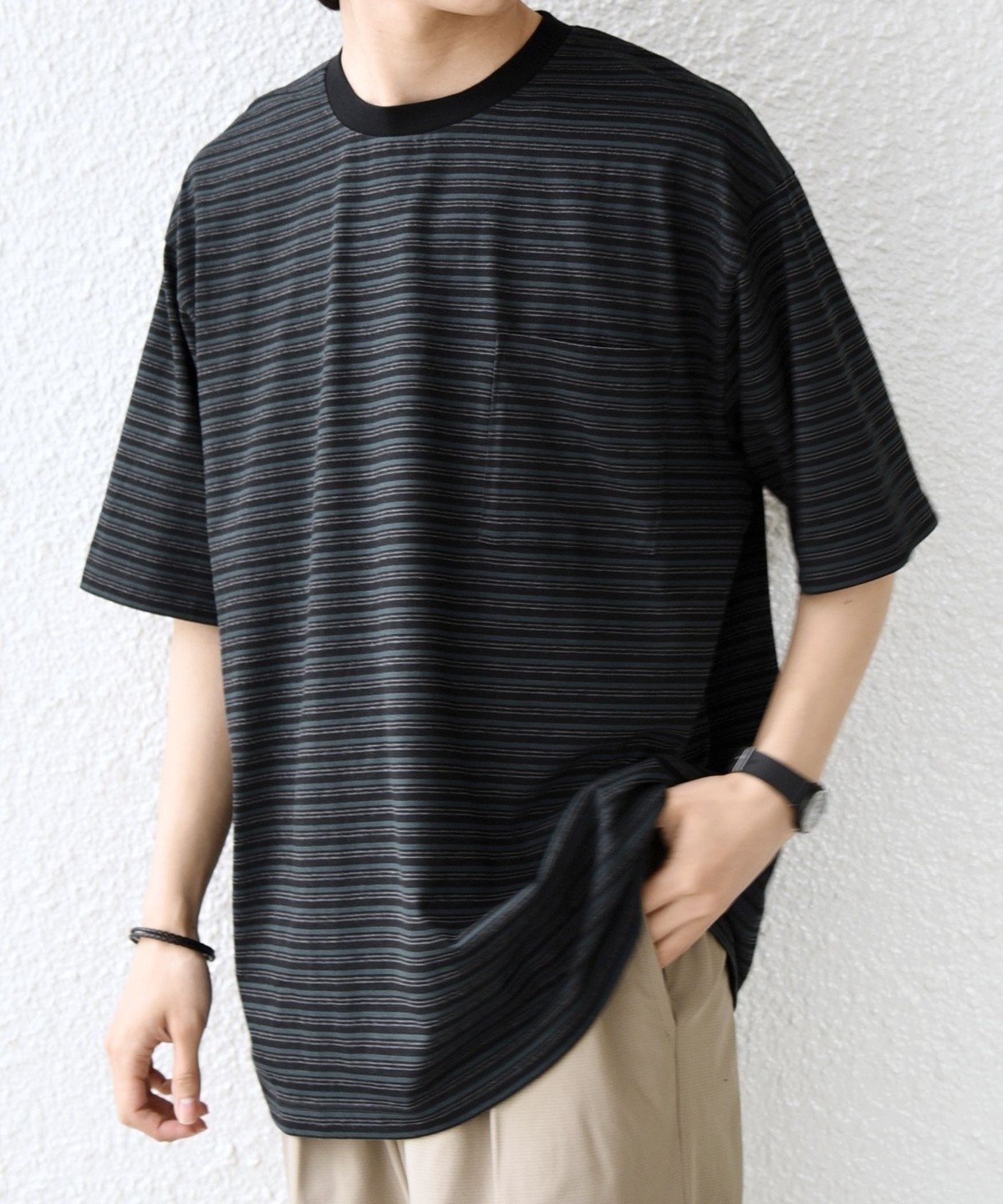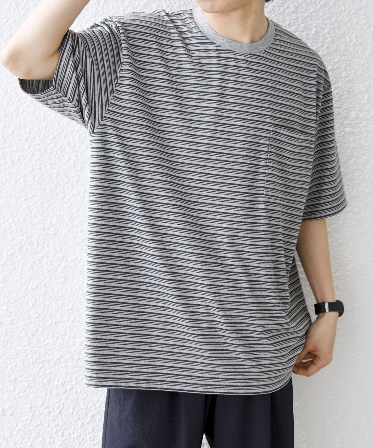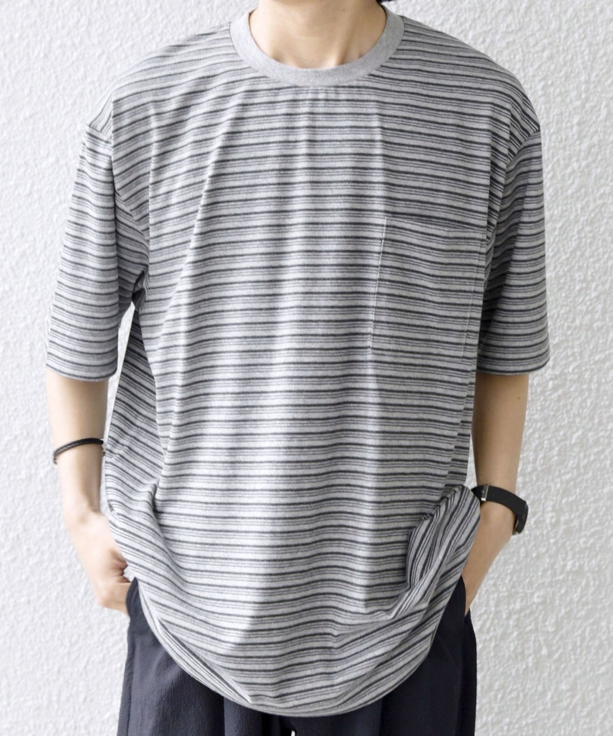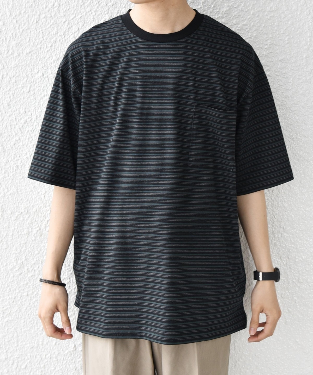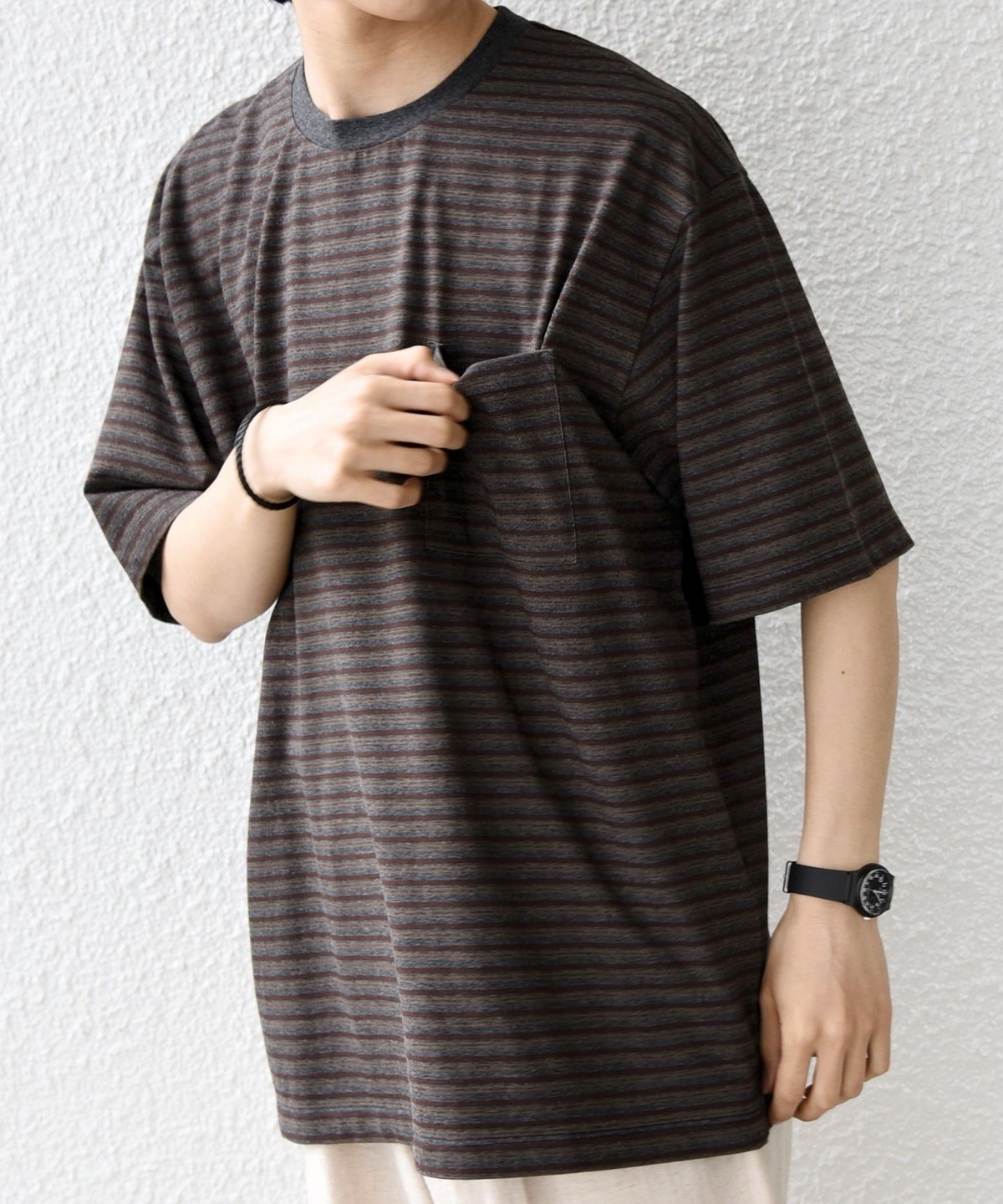 絶妙な配色とピッチのボーダーデザインが◎大人のためのポケットボーダーTシャツ