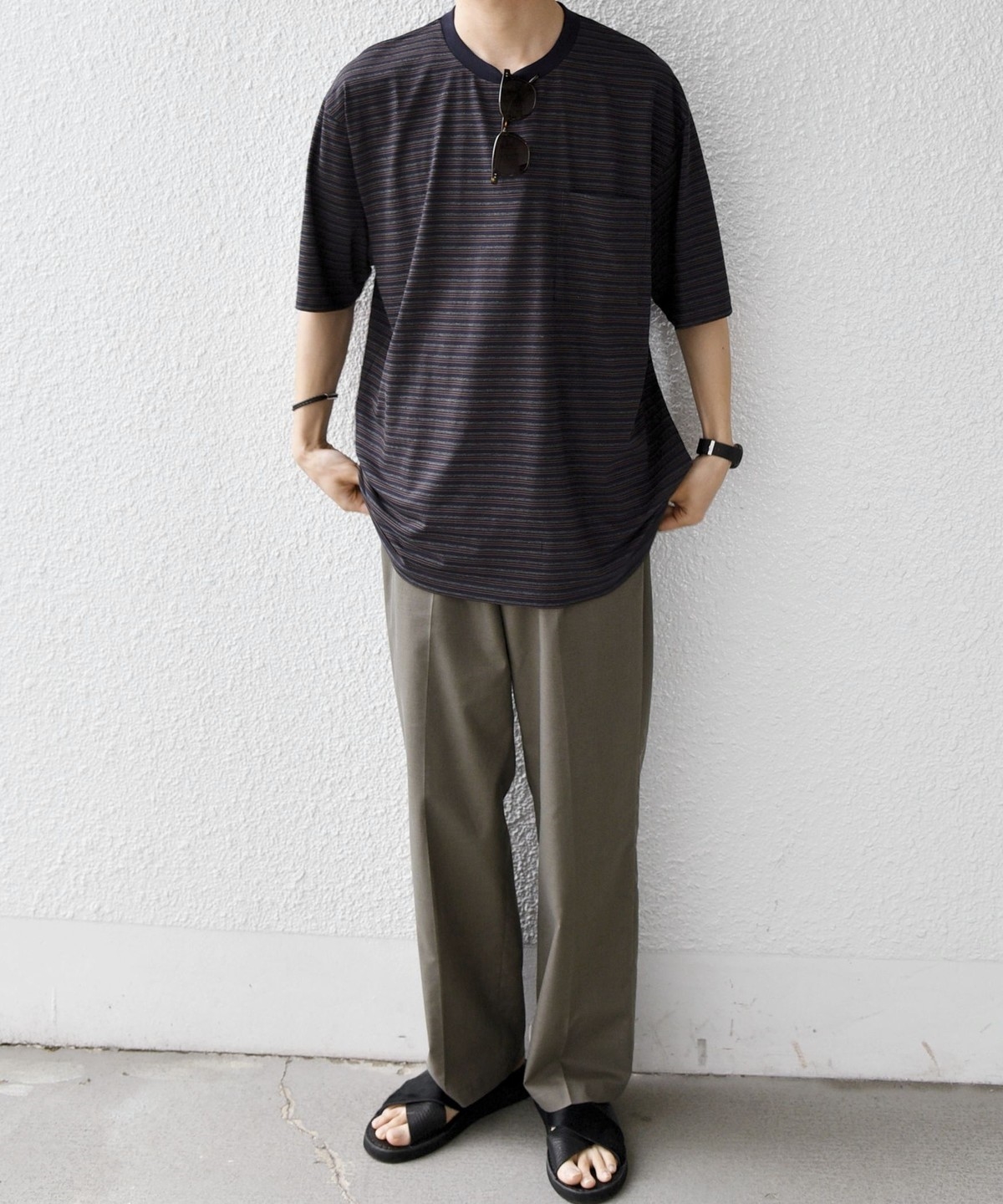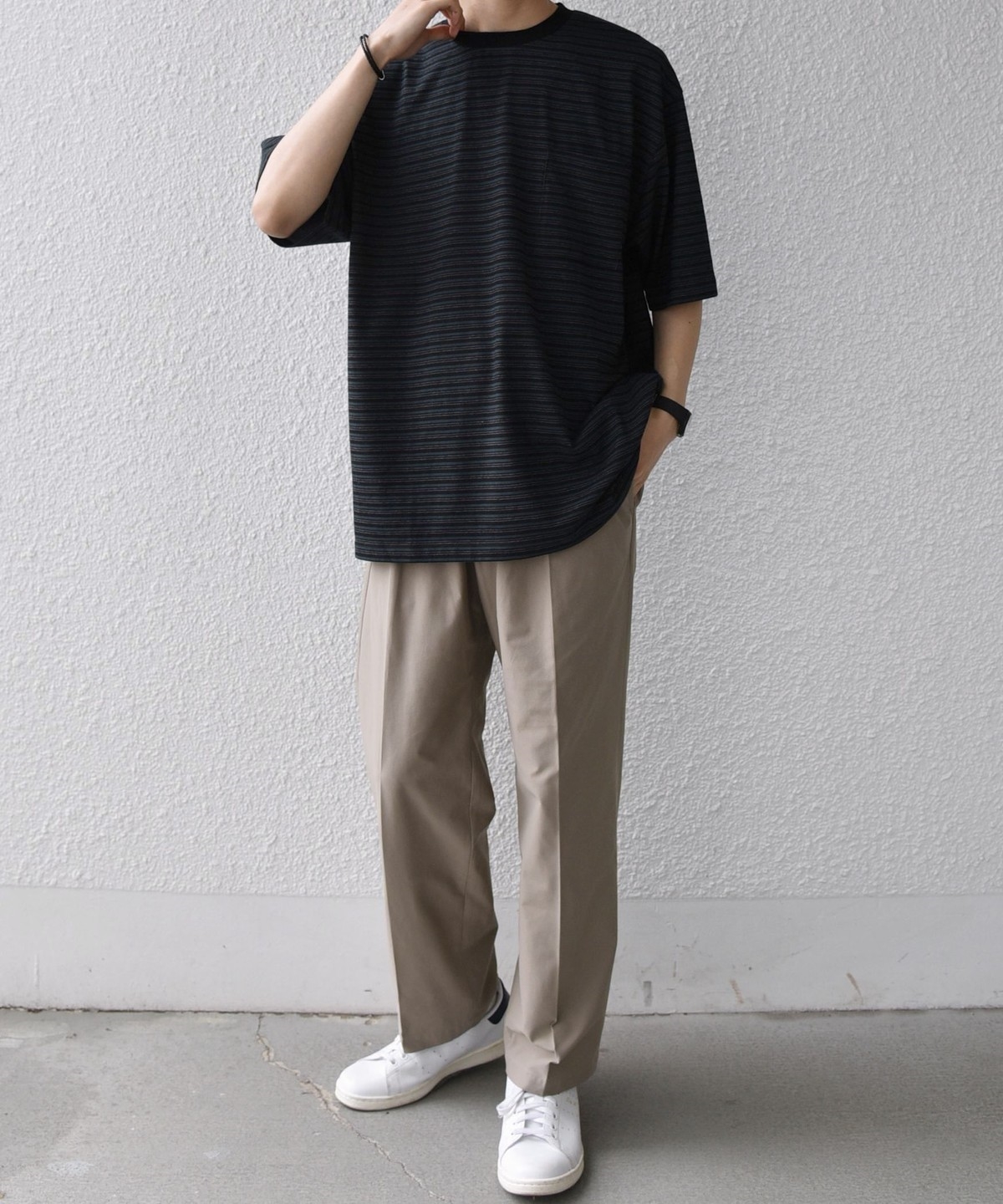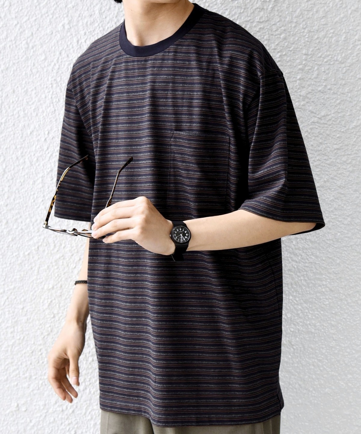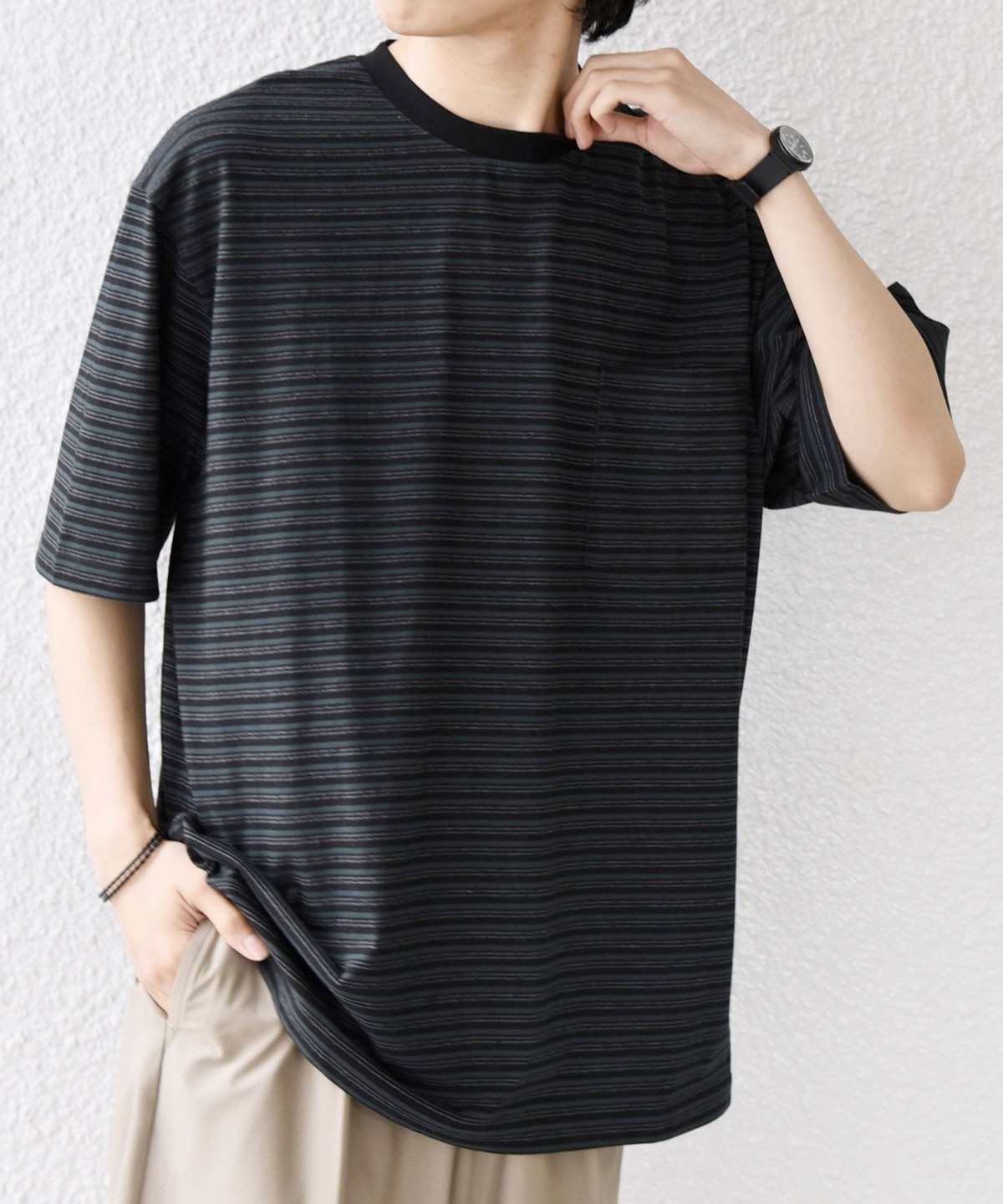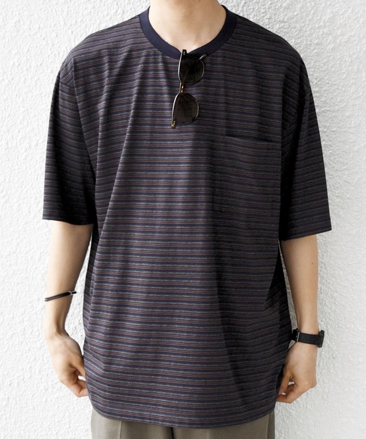 絶妙な配色とピッチのボーダーデザインが◎大人のためのポケットボーダーTシャツ