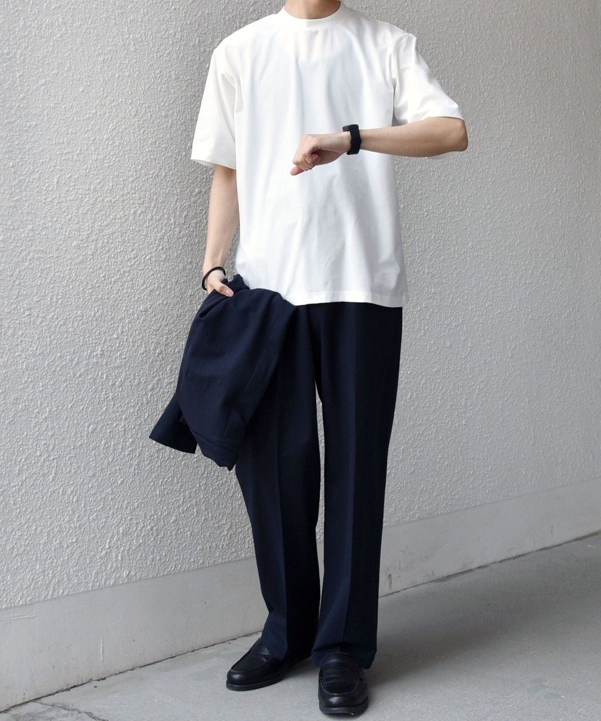 ビジネスやカジュアルシーンでのジャケットのインナーとして最適なTシャツ。