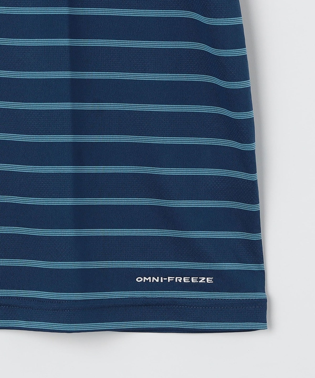 肌面に施された青いサークルプリントが汗に反応し、ひんやり感が持続するCOLUMBIA独自の冷却機能「オムニフリーズゼロ」を搭載。