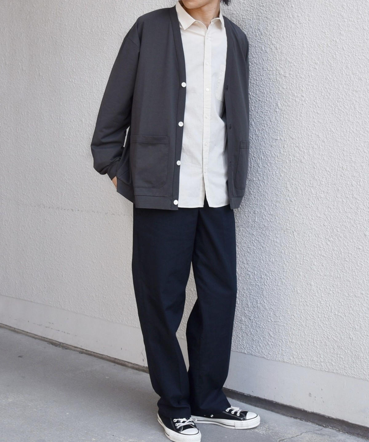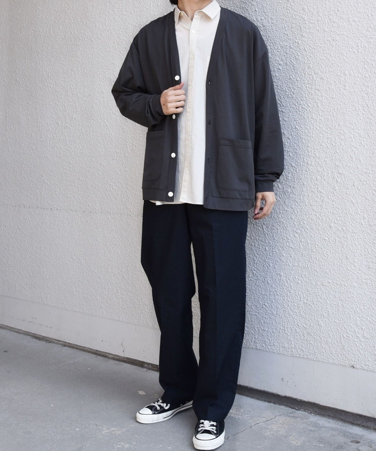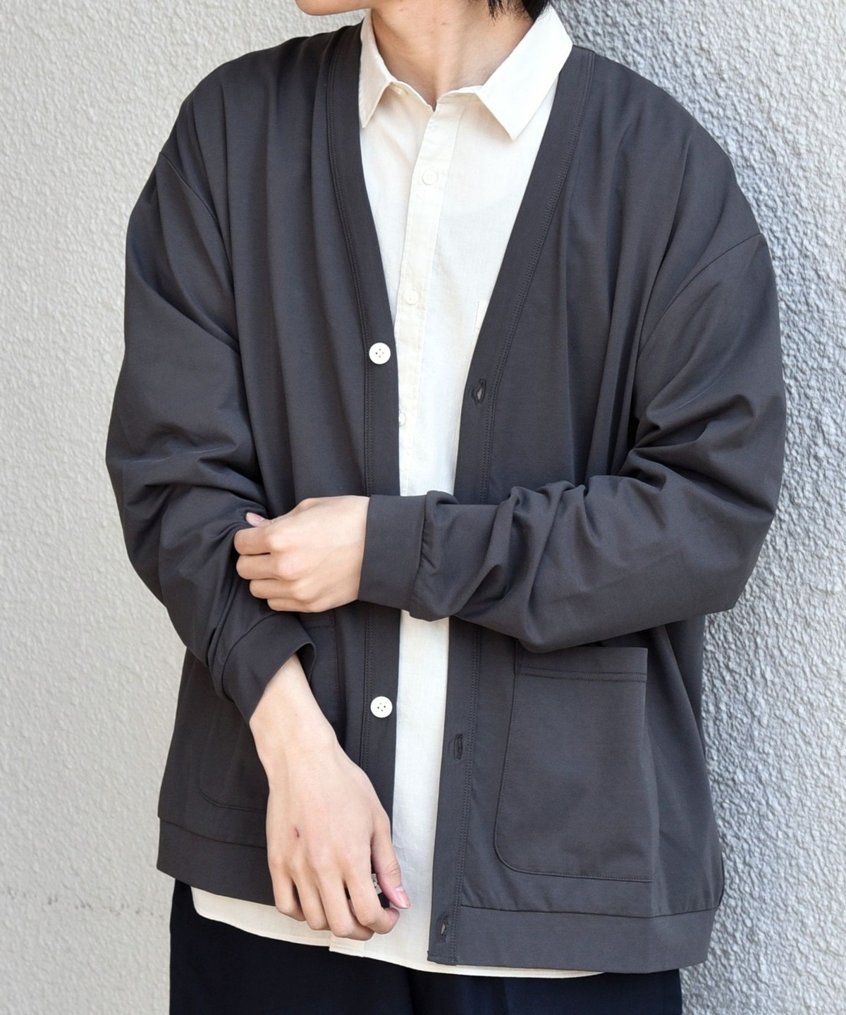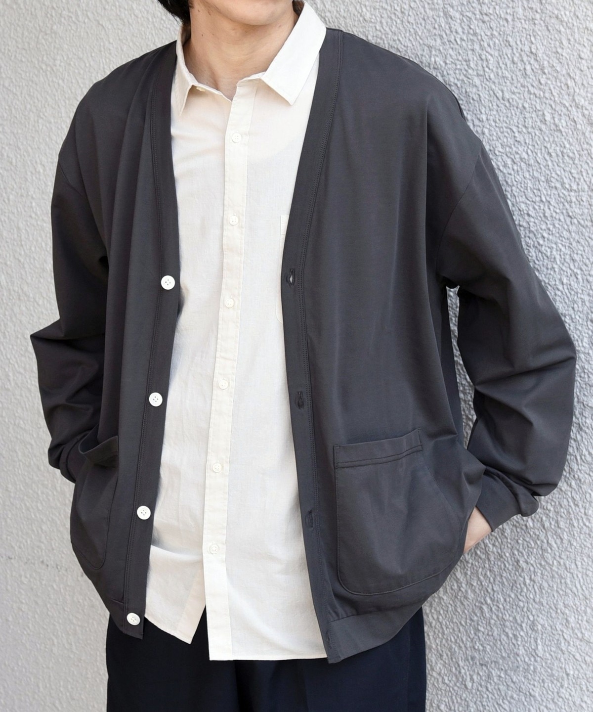 程よくゆとりを持たせたリラックスシルエットのカーディガン。
