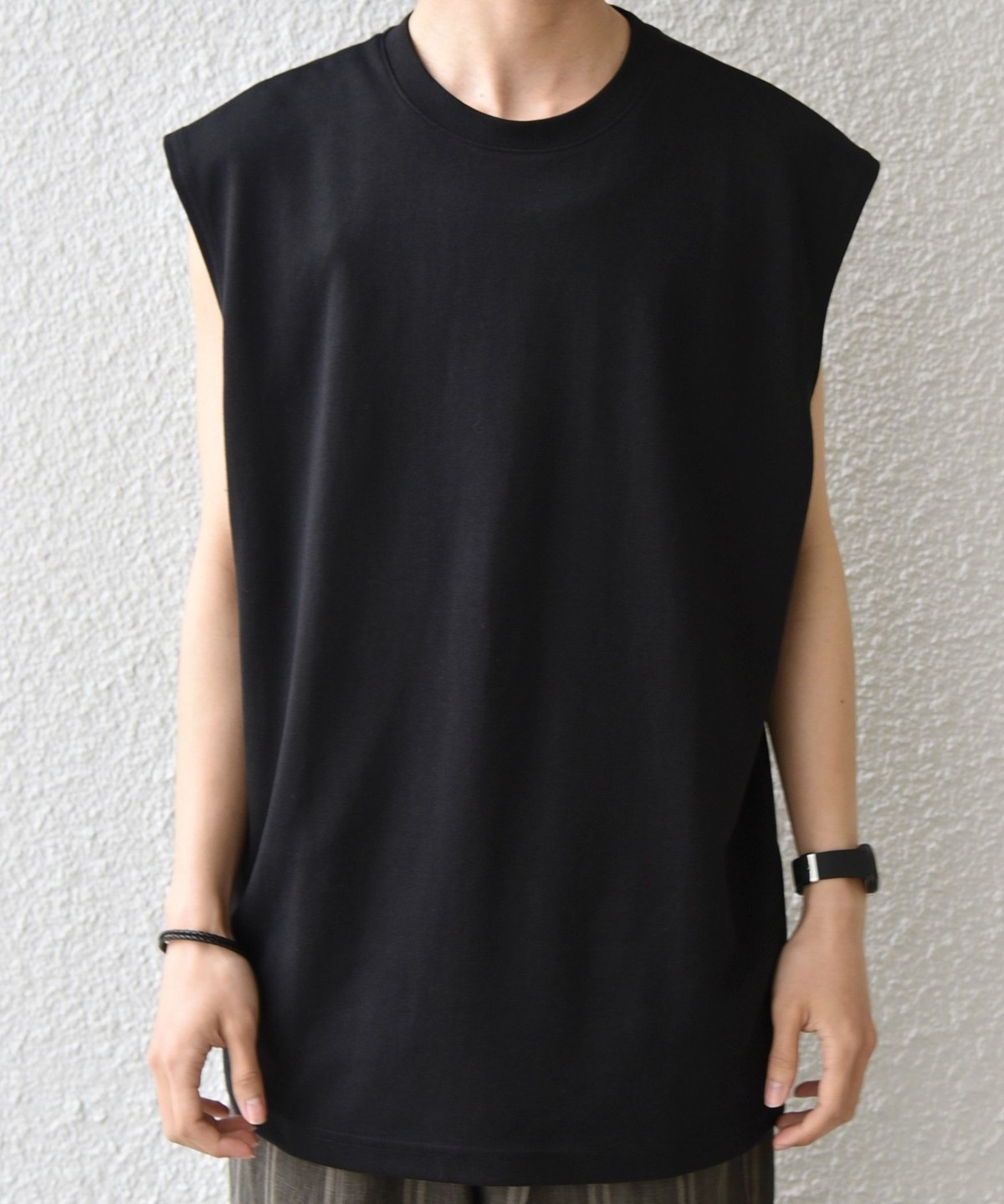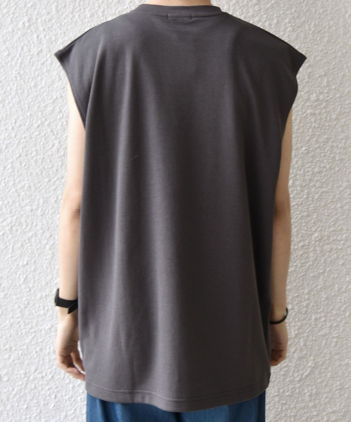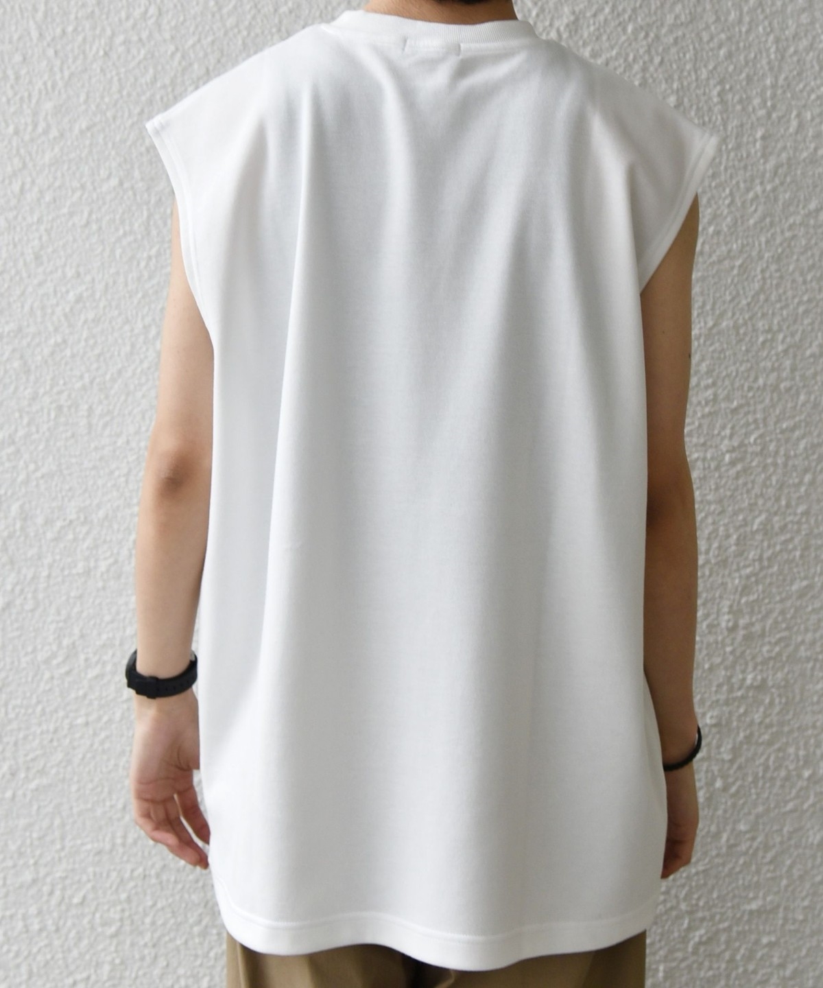 程よくゆとりを持たせたリラックスフィットのノースリーブデザイン。