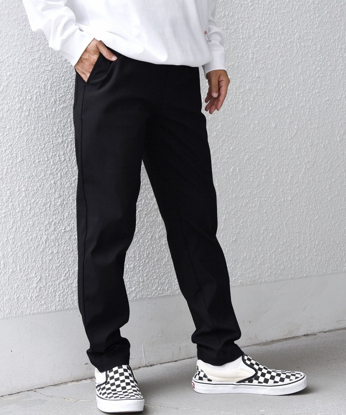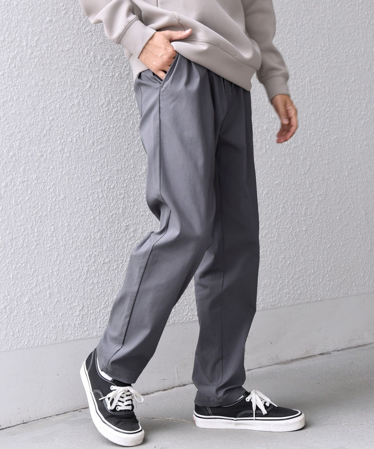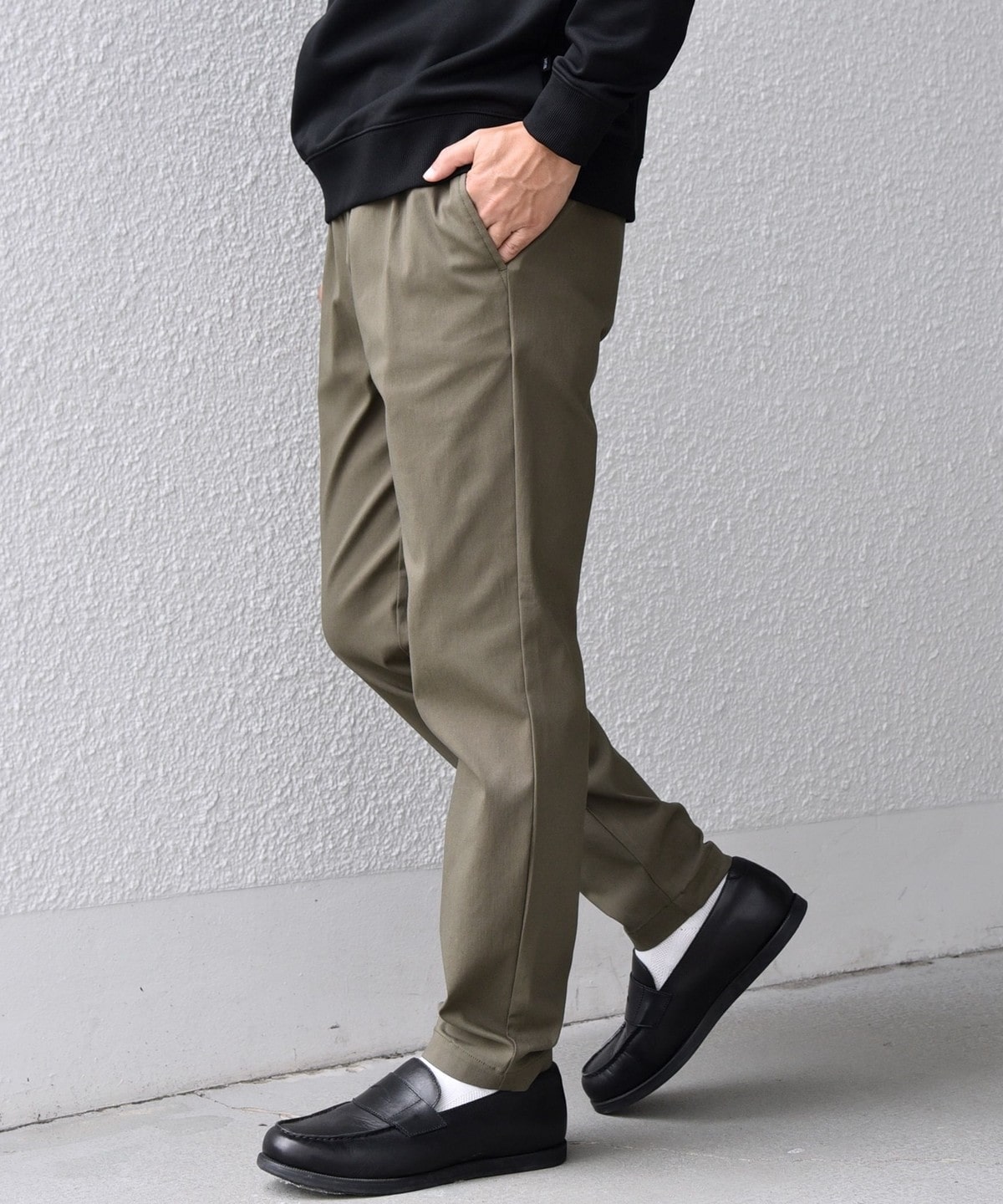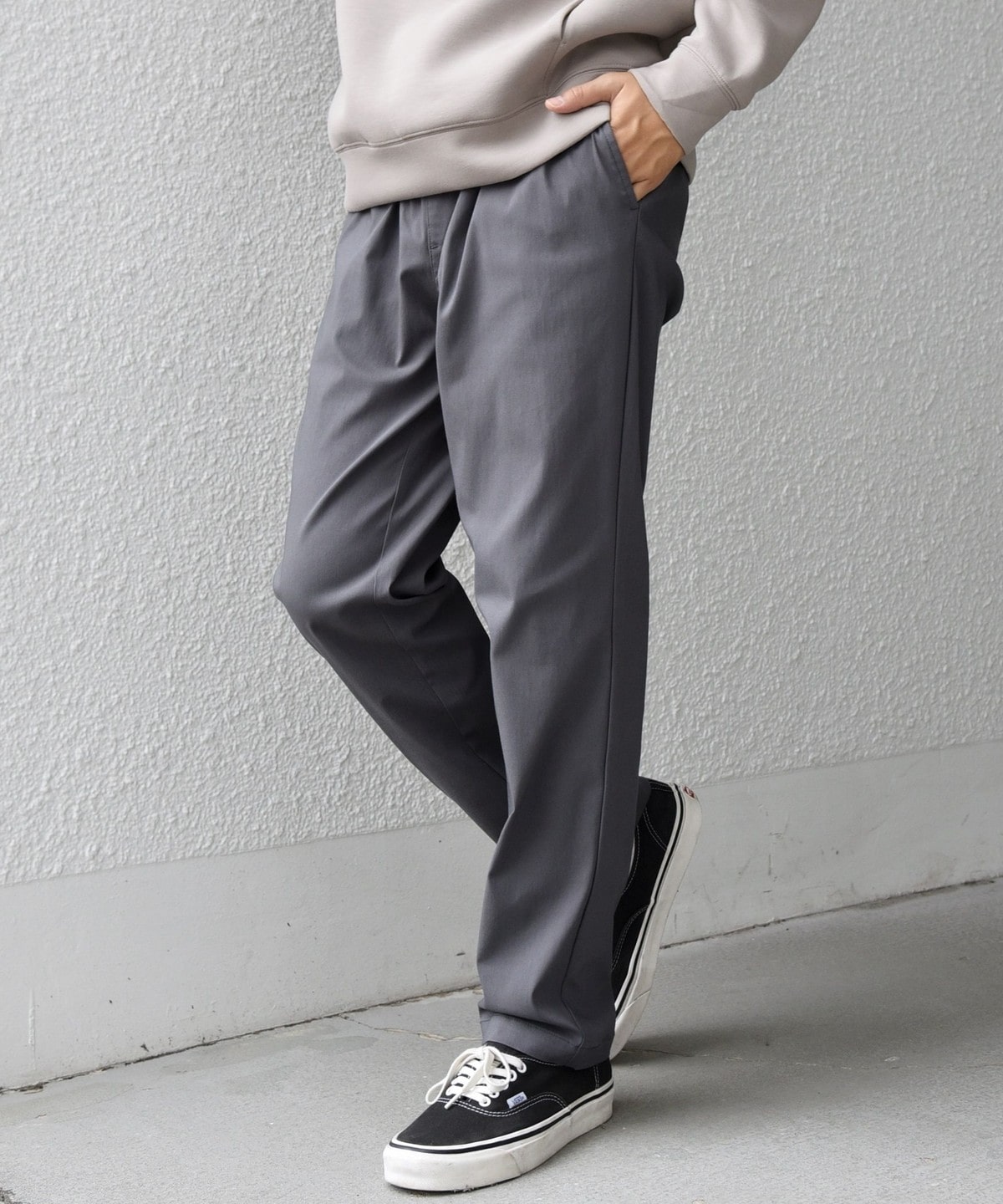 スッキリとしたシルエットながら動きやすいストレッチイージーパンツ