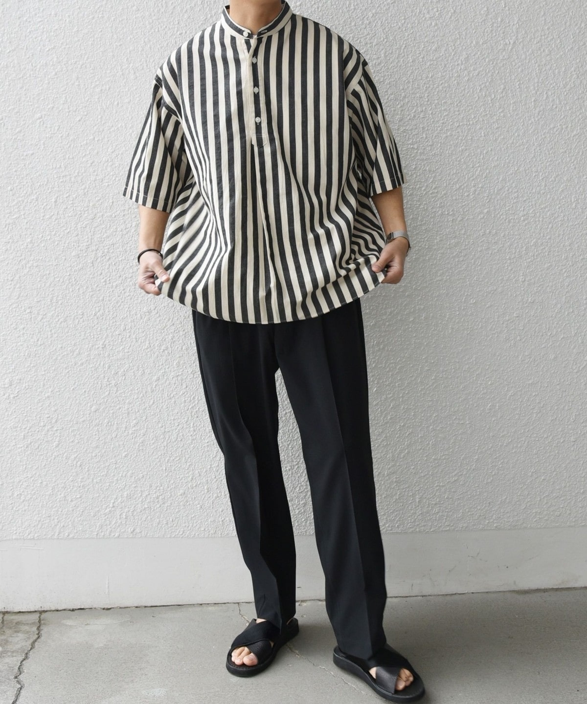 SHIPS any: ピュアリネン バンド スキッパー ハーフスリーブ プルオーバー シャツ 25SS◇