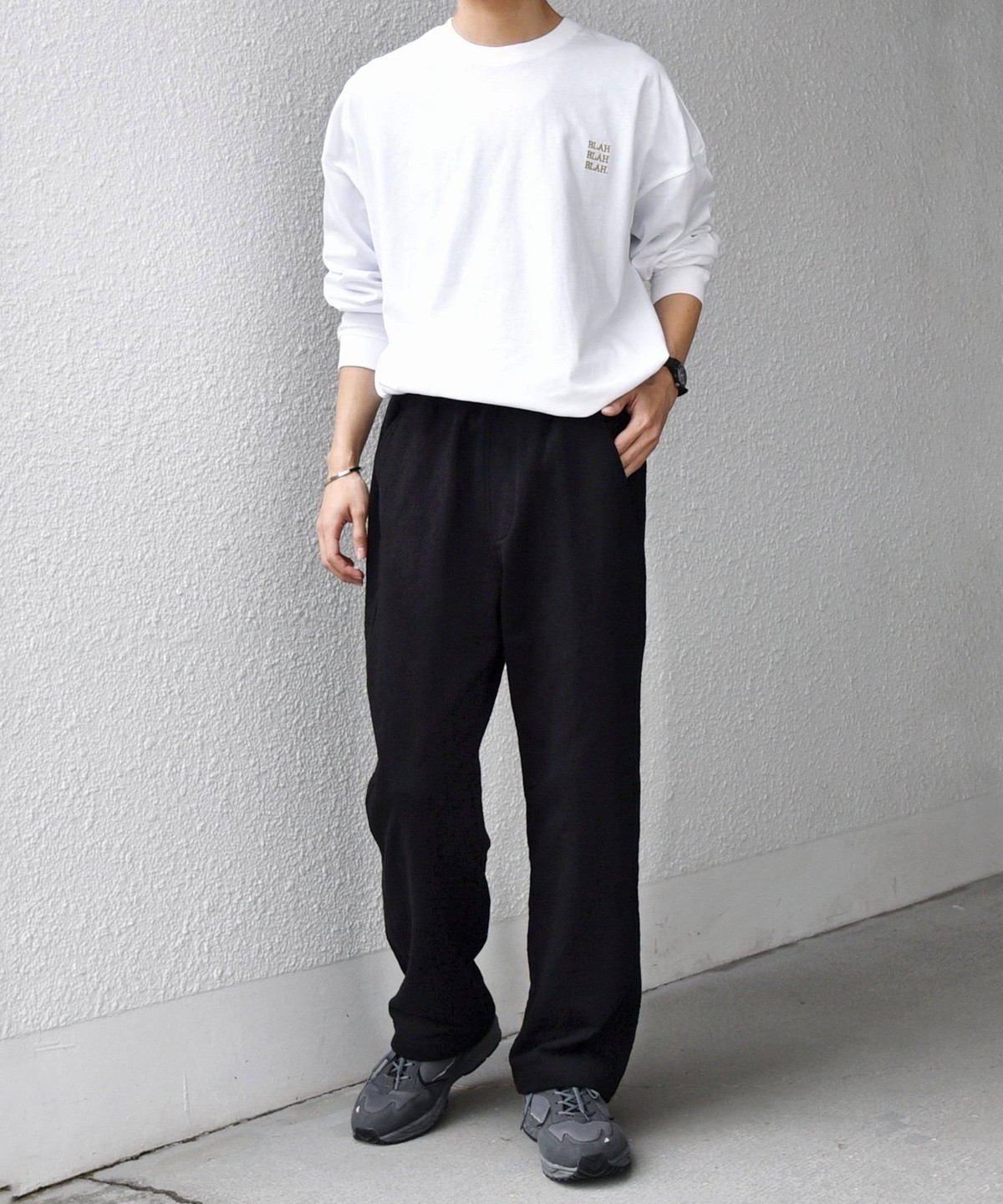裾はリブやシャーリングを施さず、すっきりとしたラインに仕上げることで、きれいめな印象を演出。