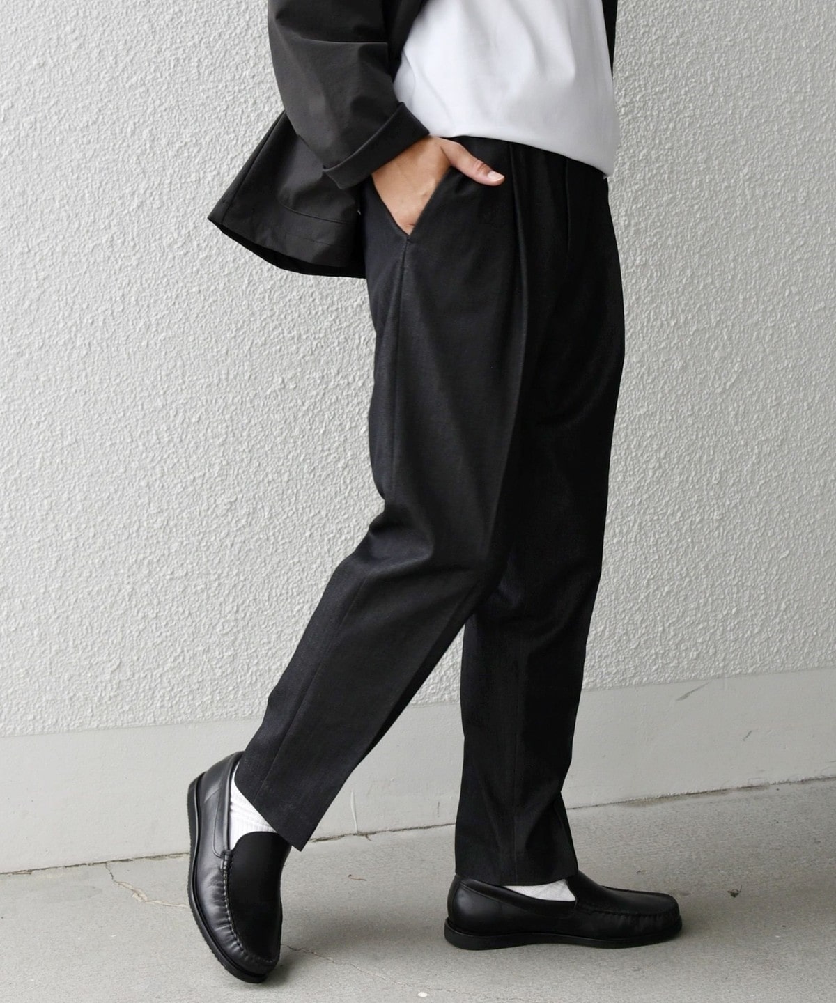 シルエットは、すっきりとした1タックのテーパードシルエット。