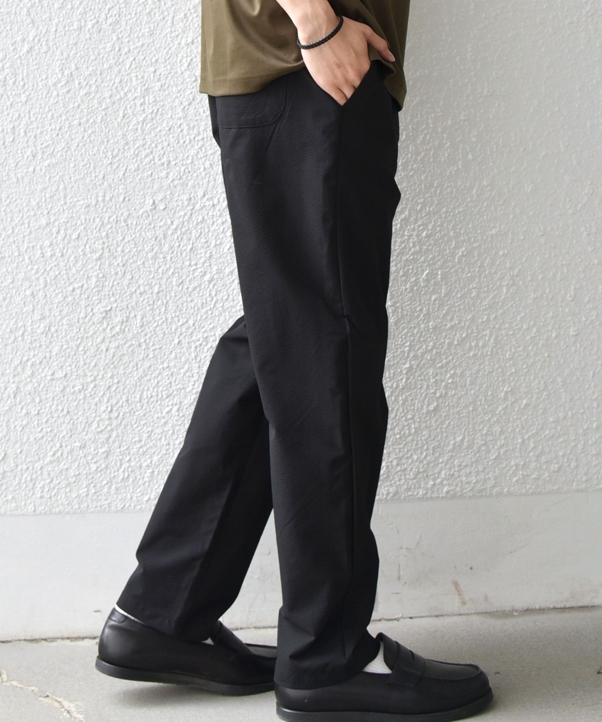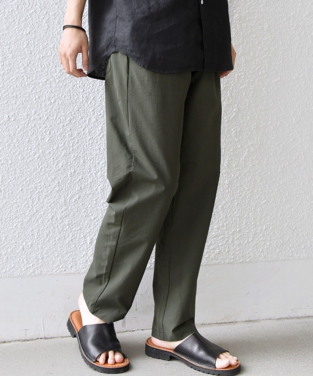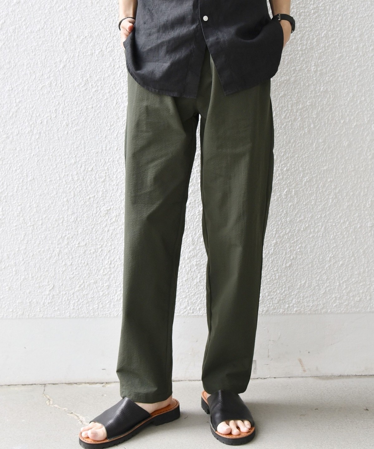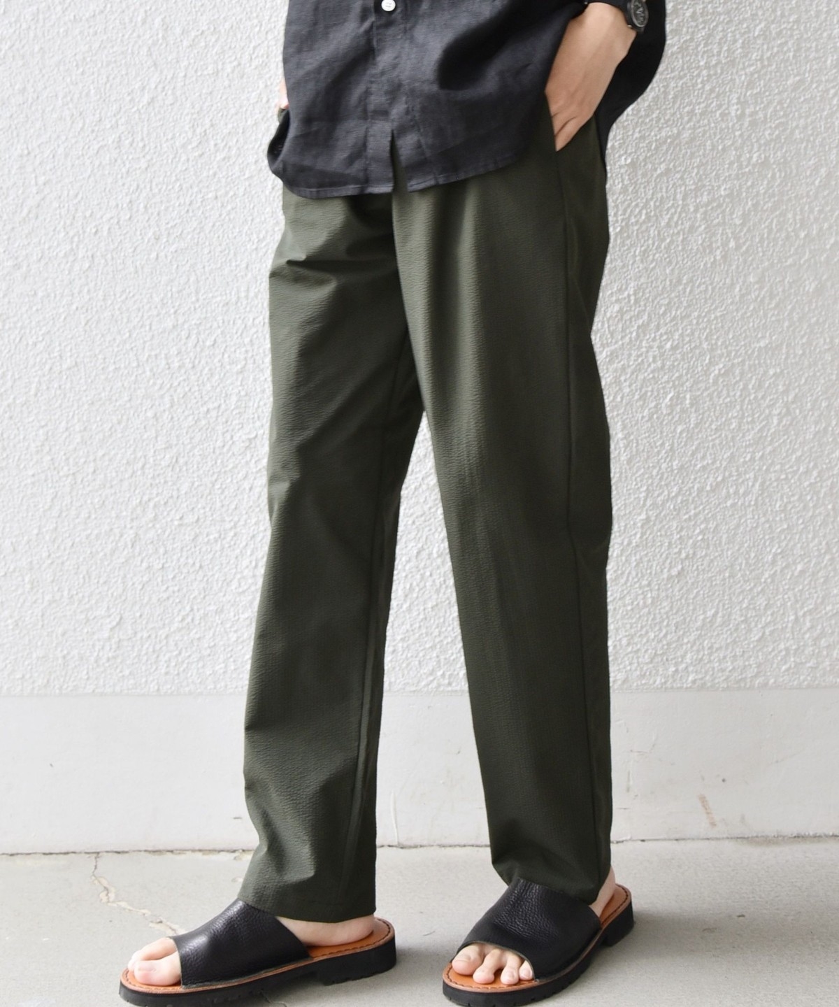 ストレッチ性のあるサッカー素材を使用した、春夏にピッタリな汎用性の高いイージーパンツ