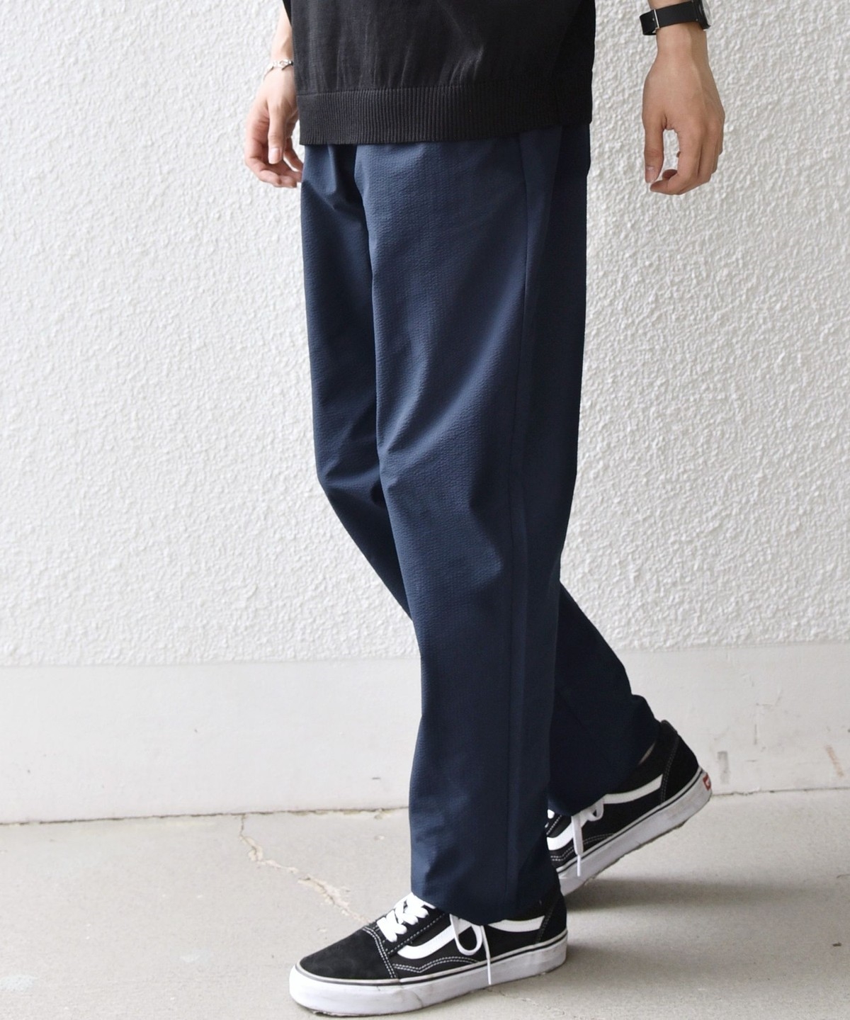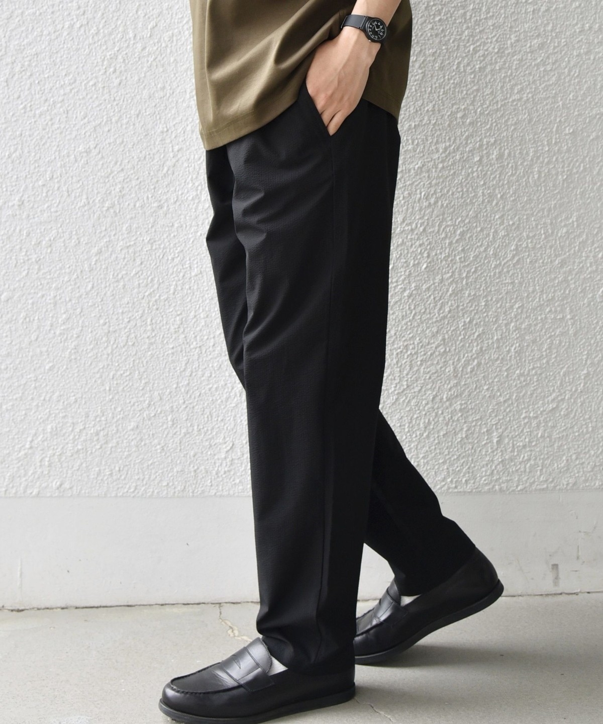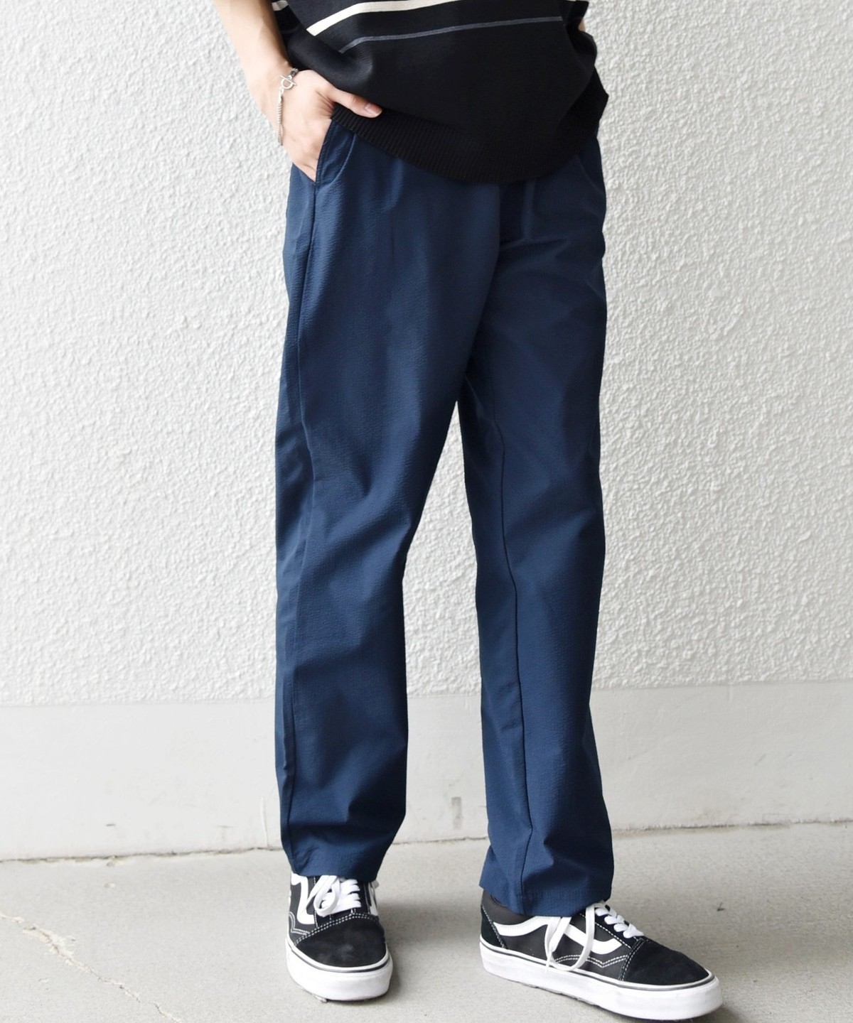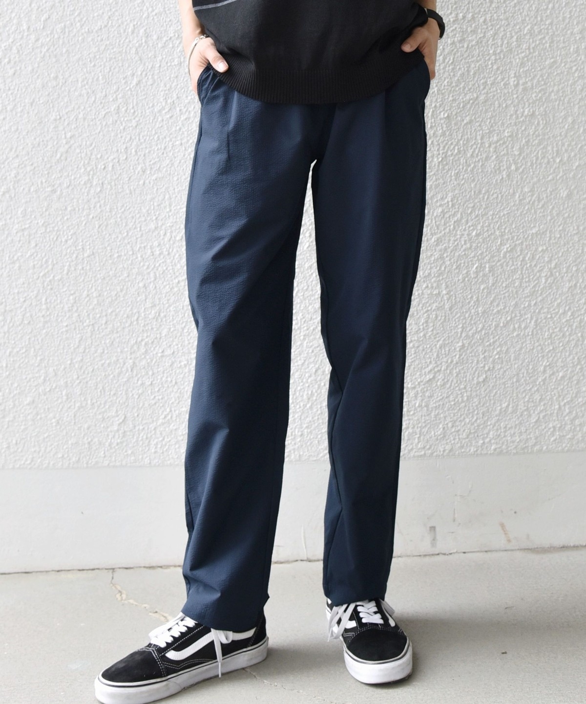 ストレッチ性のあるサッカー素材を使用した、春夏にピッタリな汎用性の高いイージーパンツ