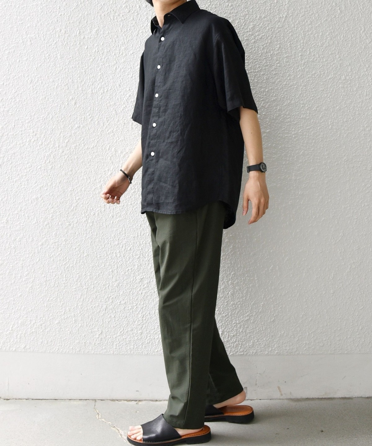 程よいゆとりを持たせ、裾にかけて綺麗にテーパードさせたシルエットのパンツ。