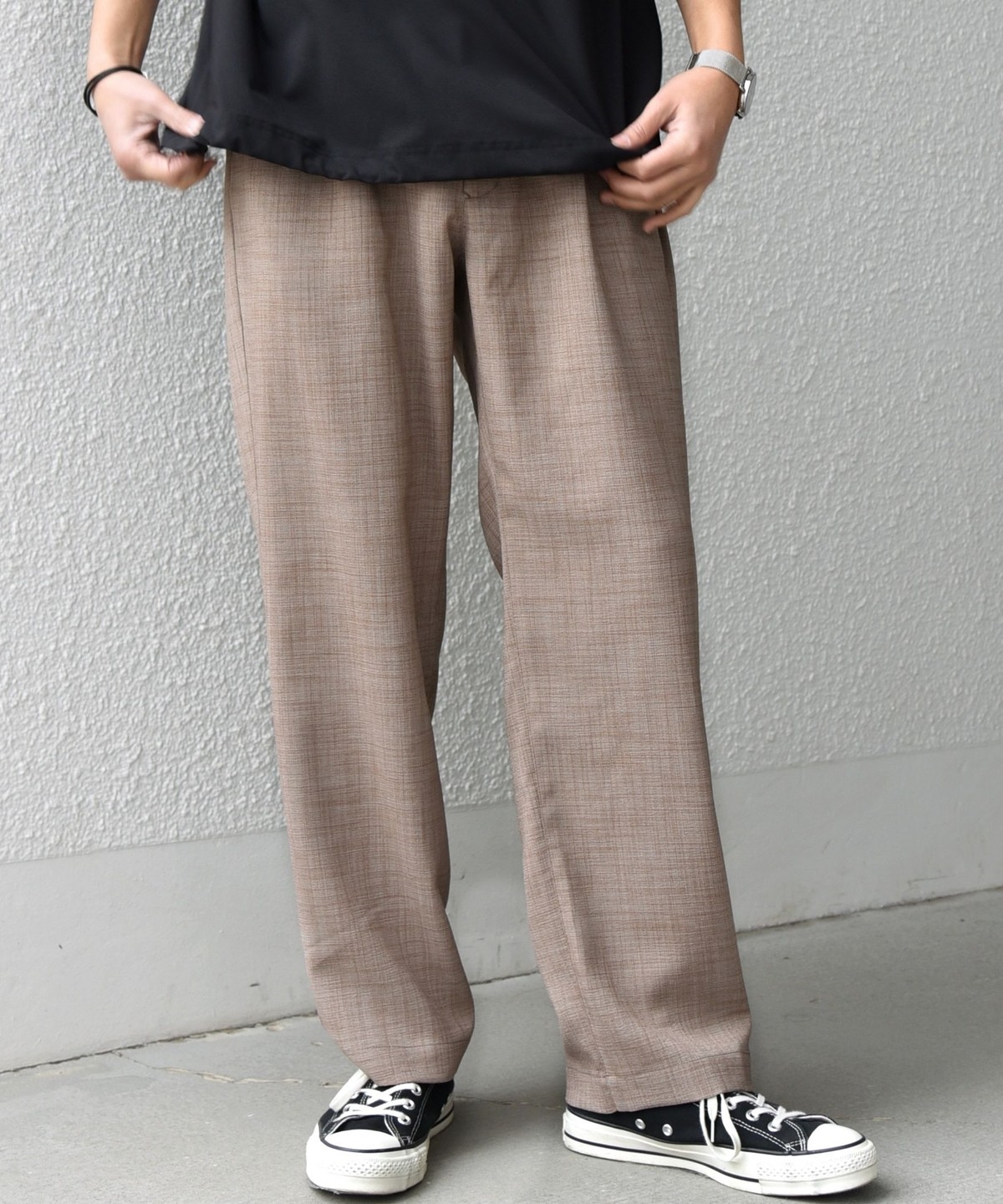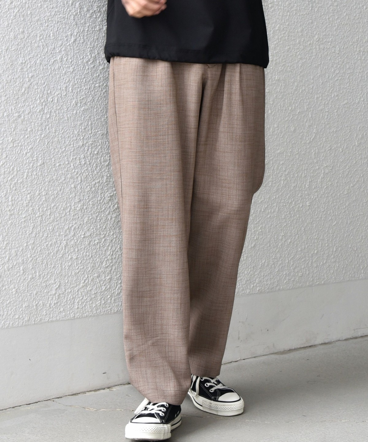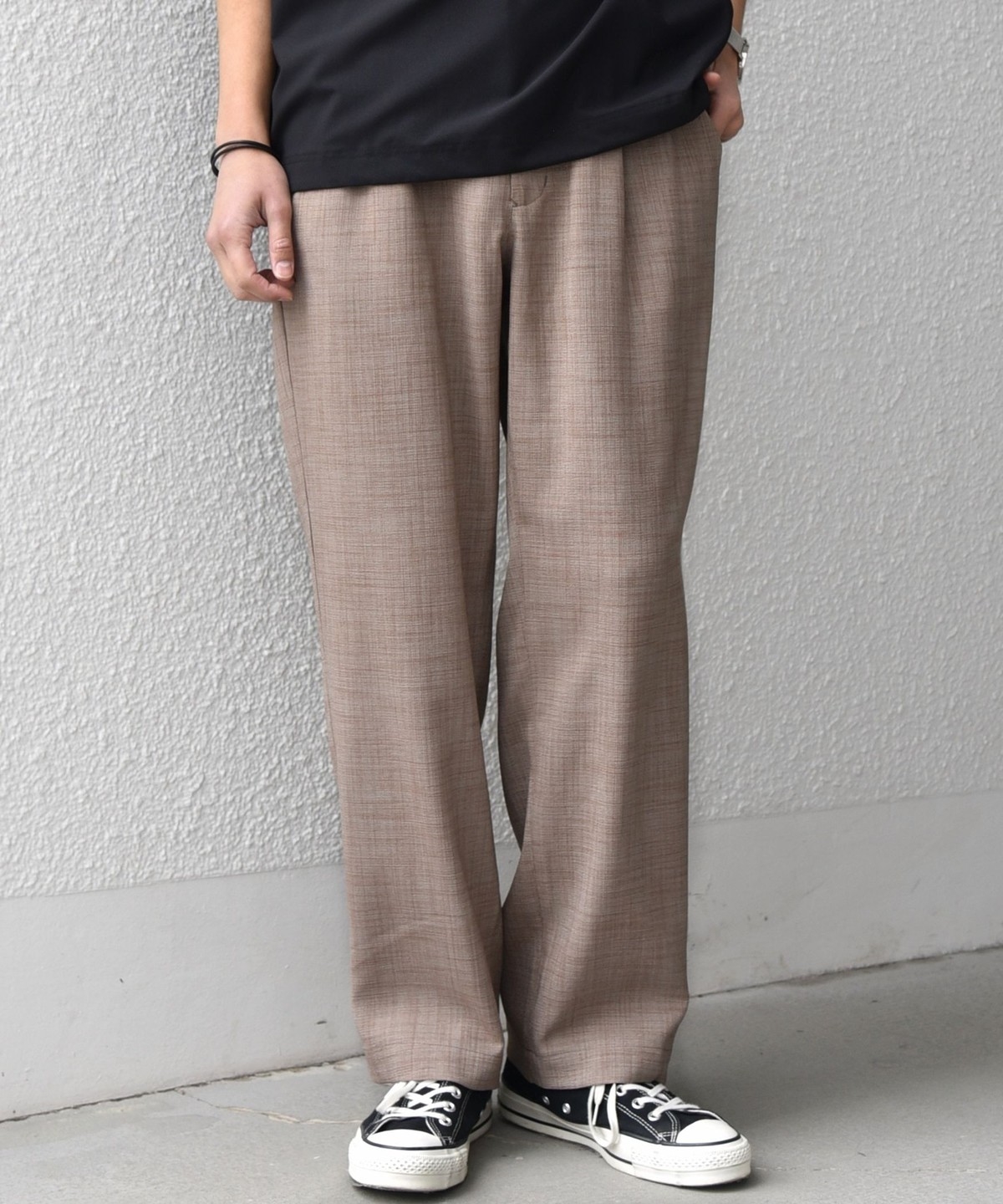 フロントにタックを入れ、こなれた雰囲気もある快適な穿き心地のパンツ。