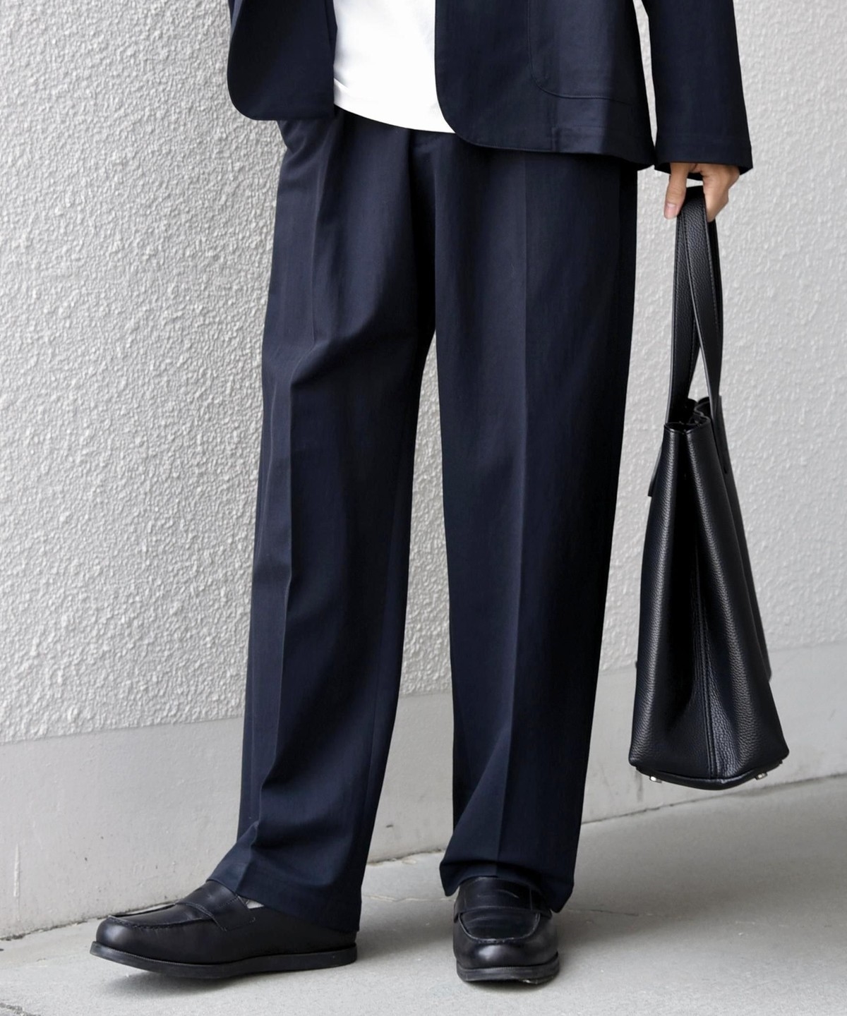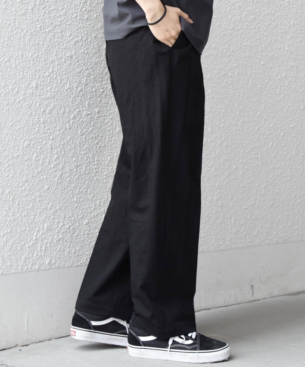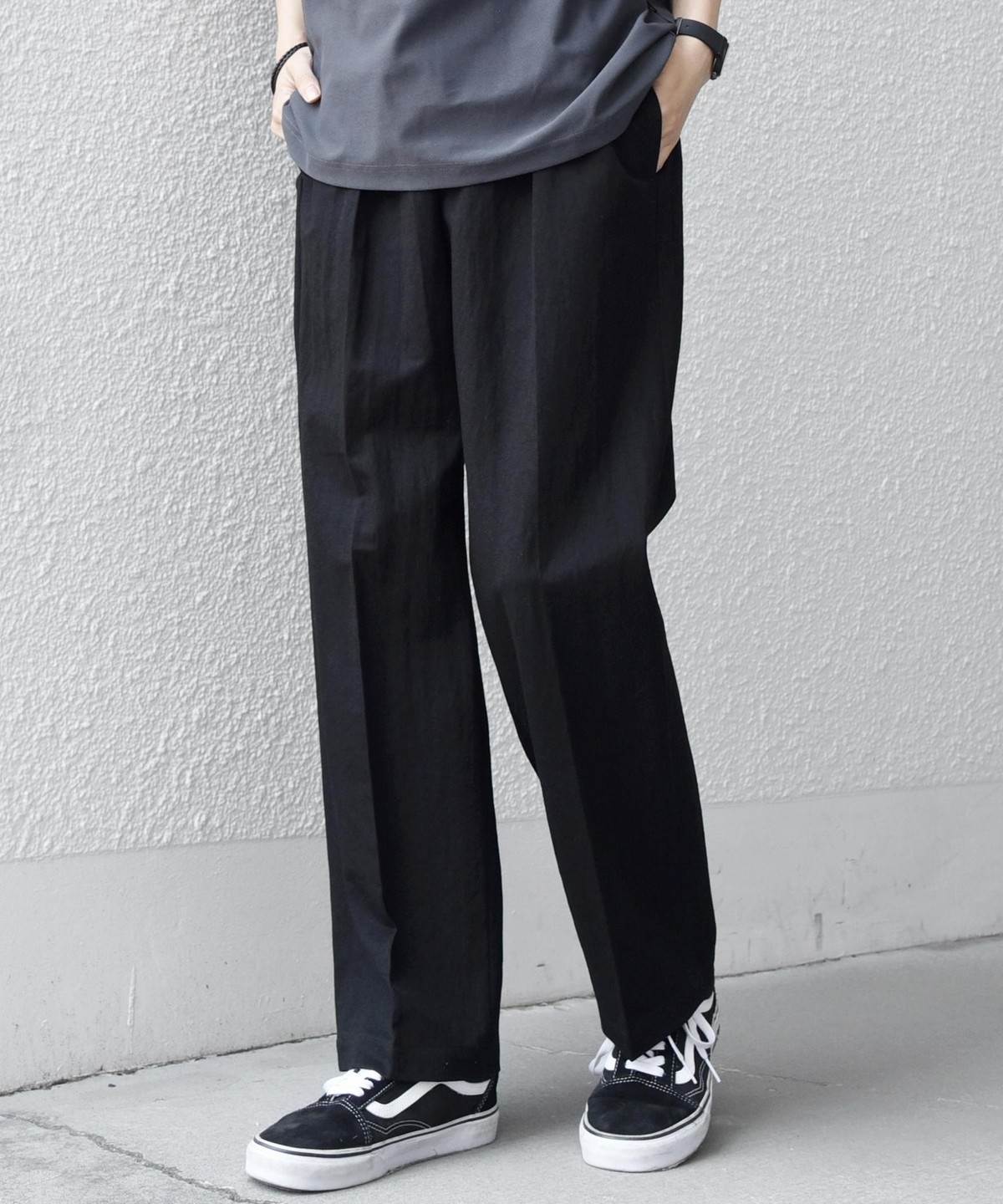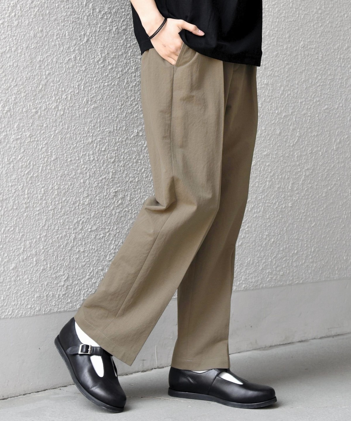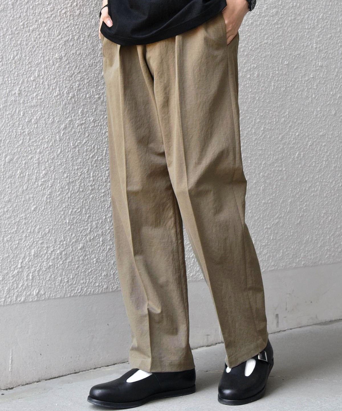 フロントにはクリースを施し、イージーパンツのリラックス感がありながらも程よくきちんとした印象に。