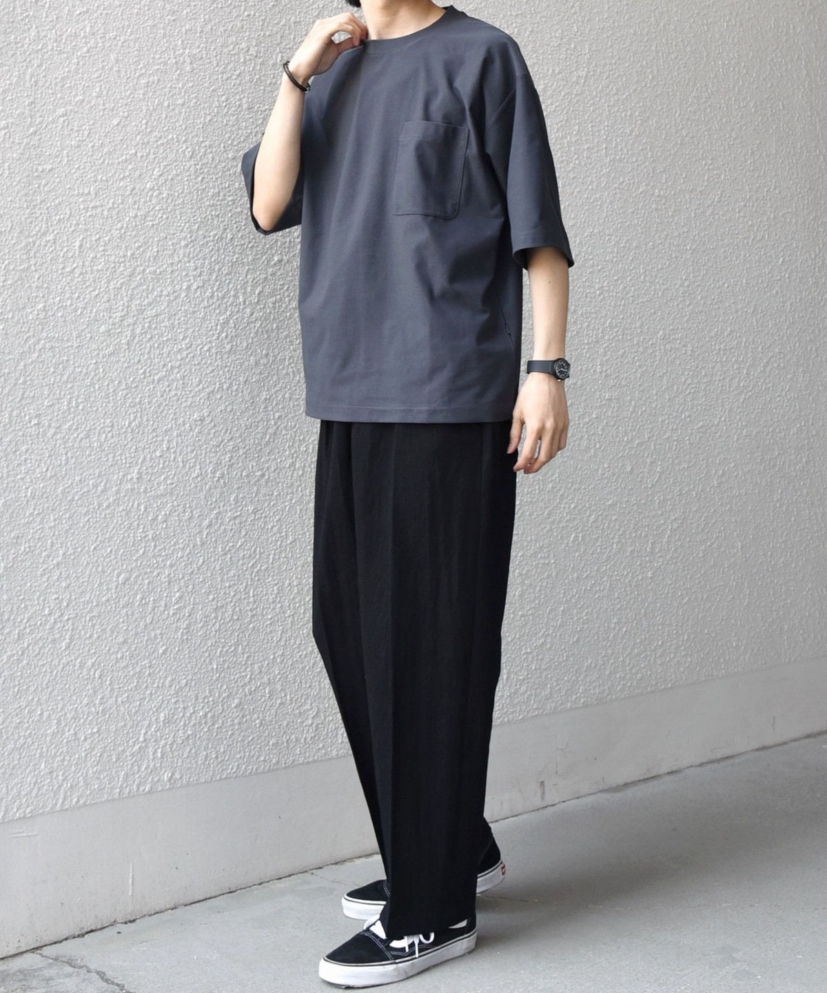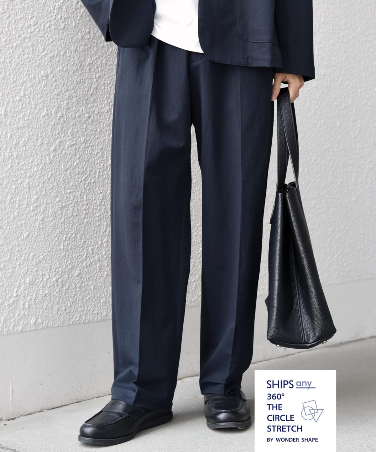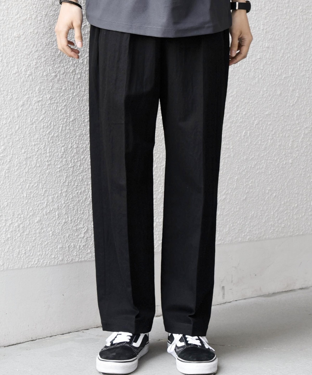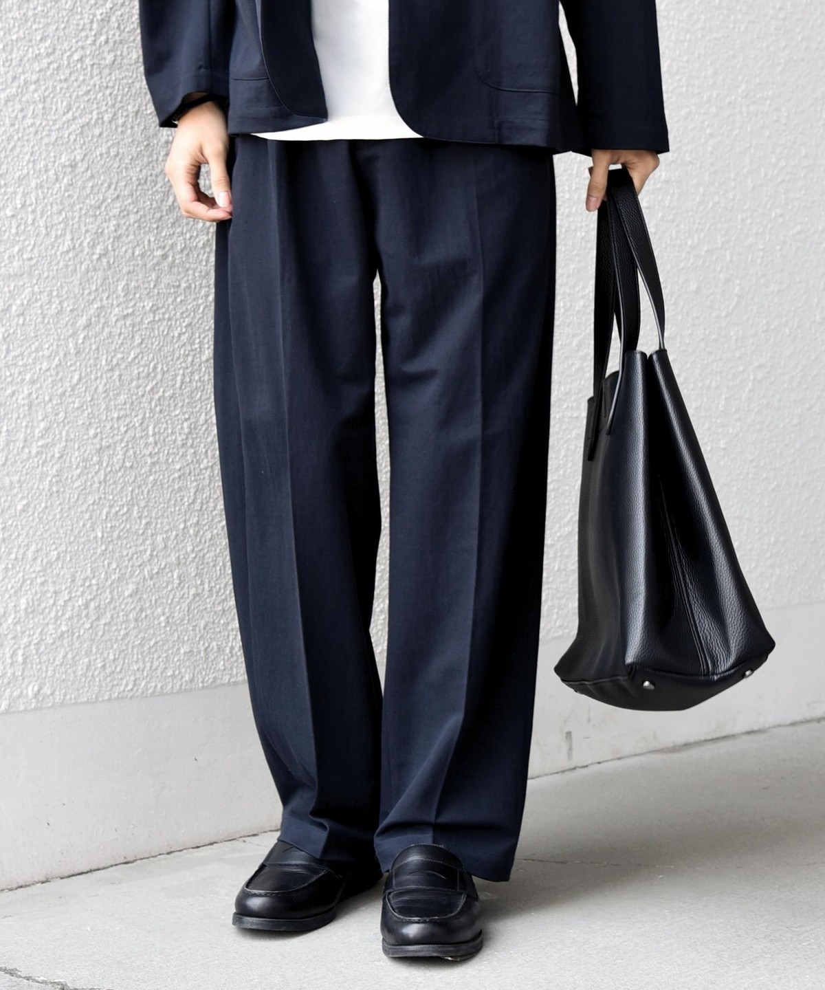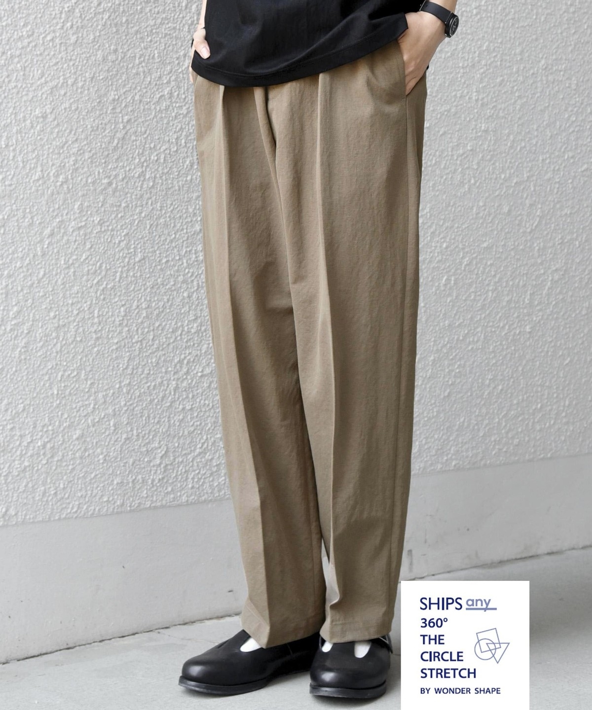 フロントにはクリースを施し、イージーパンツのリラックス感がありながらも程よくきちんとした印象に。
