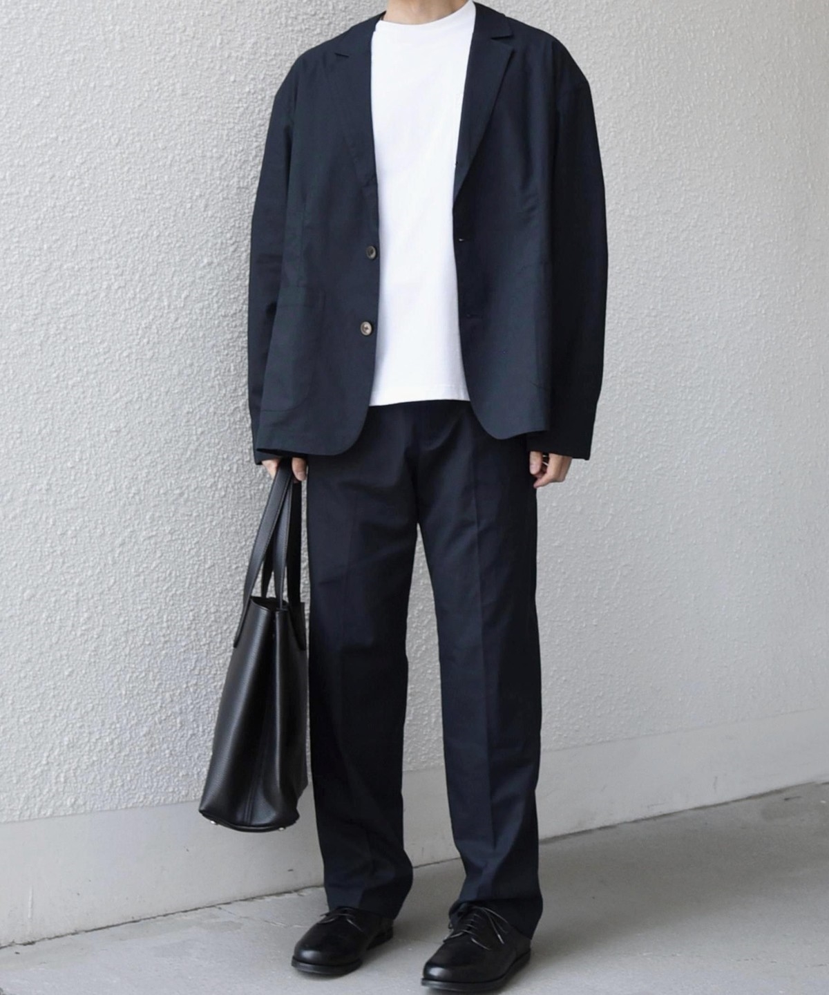 リラックス感がありながらも、ビジネスからカジュアルまで幅広く対応する汎用性の高い一着です。