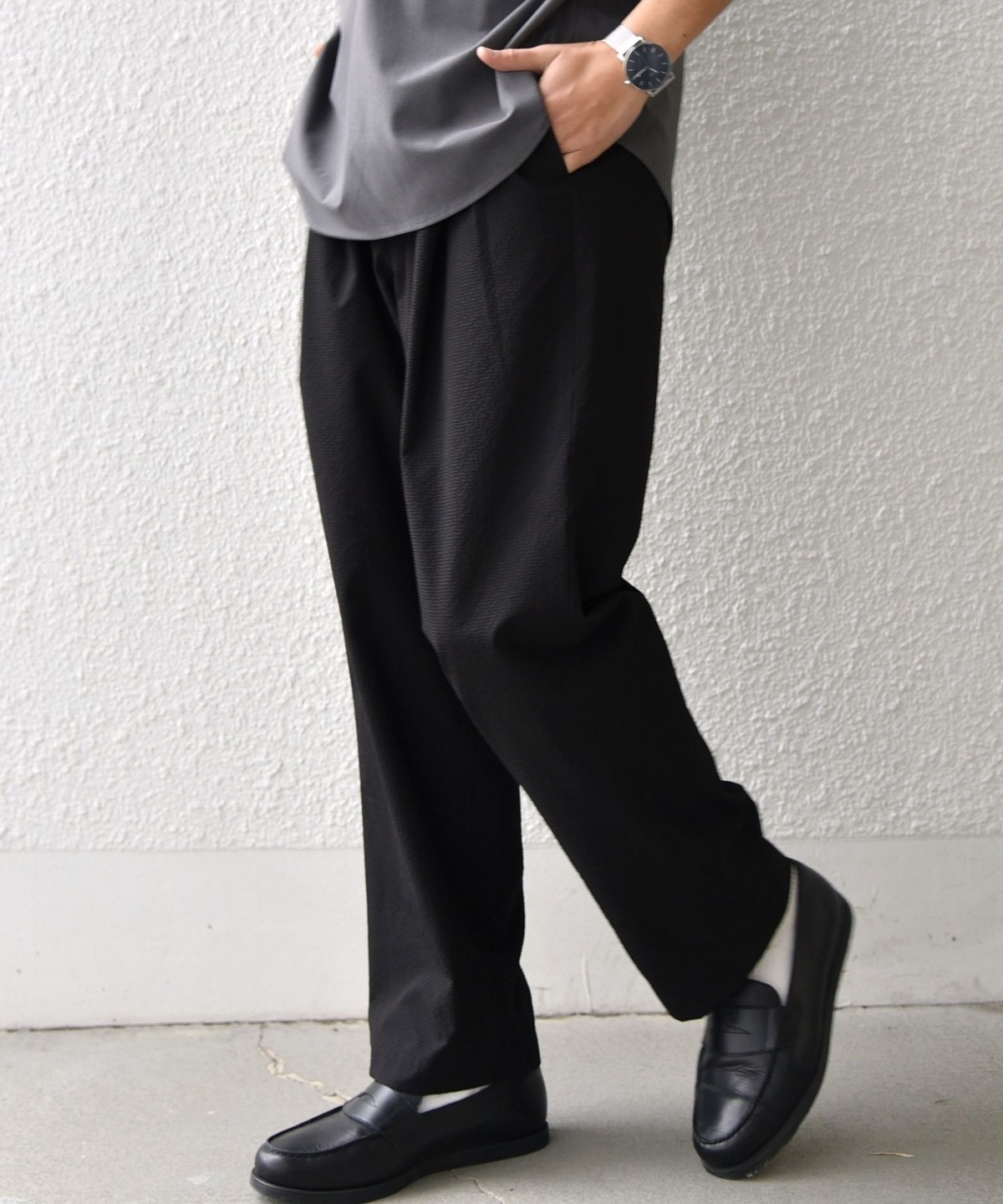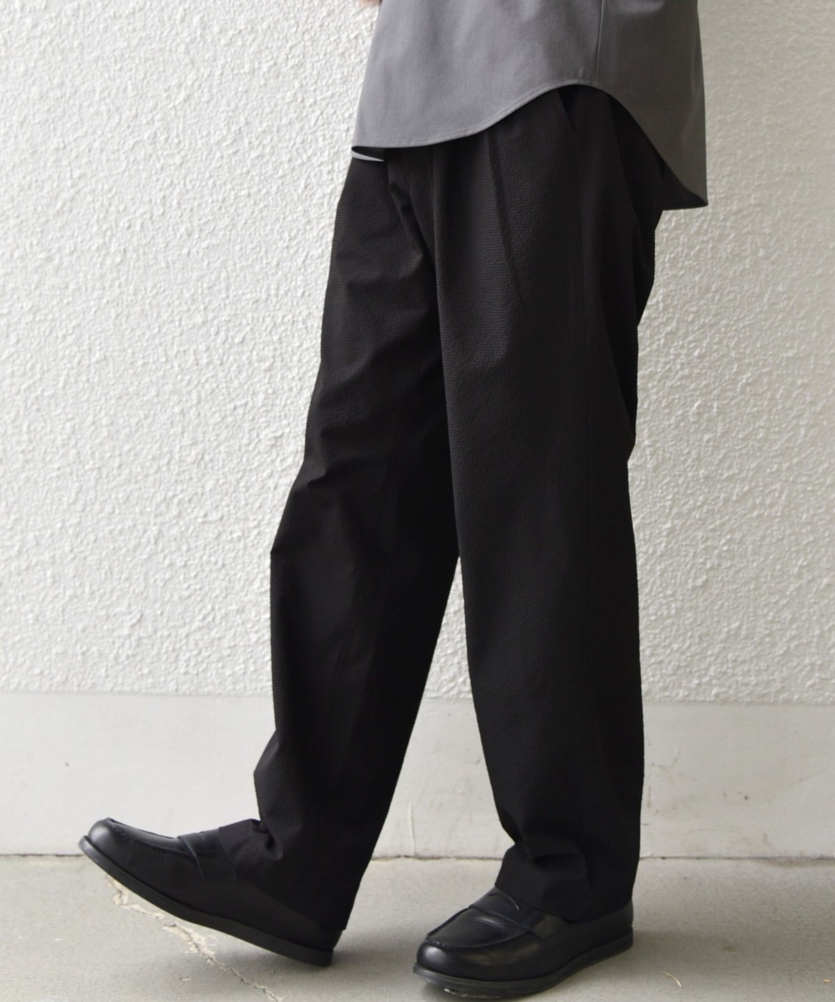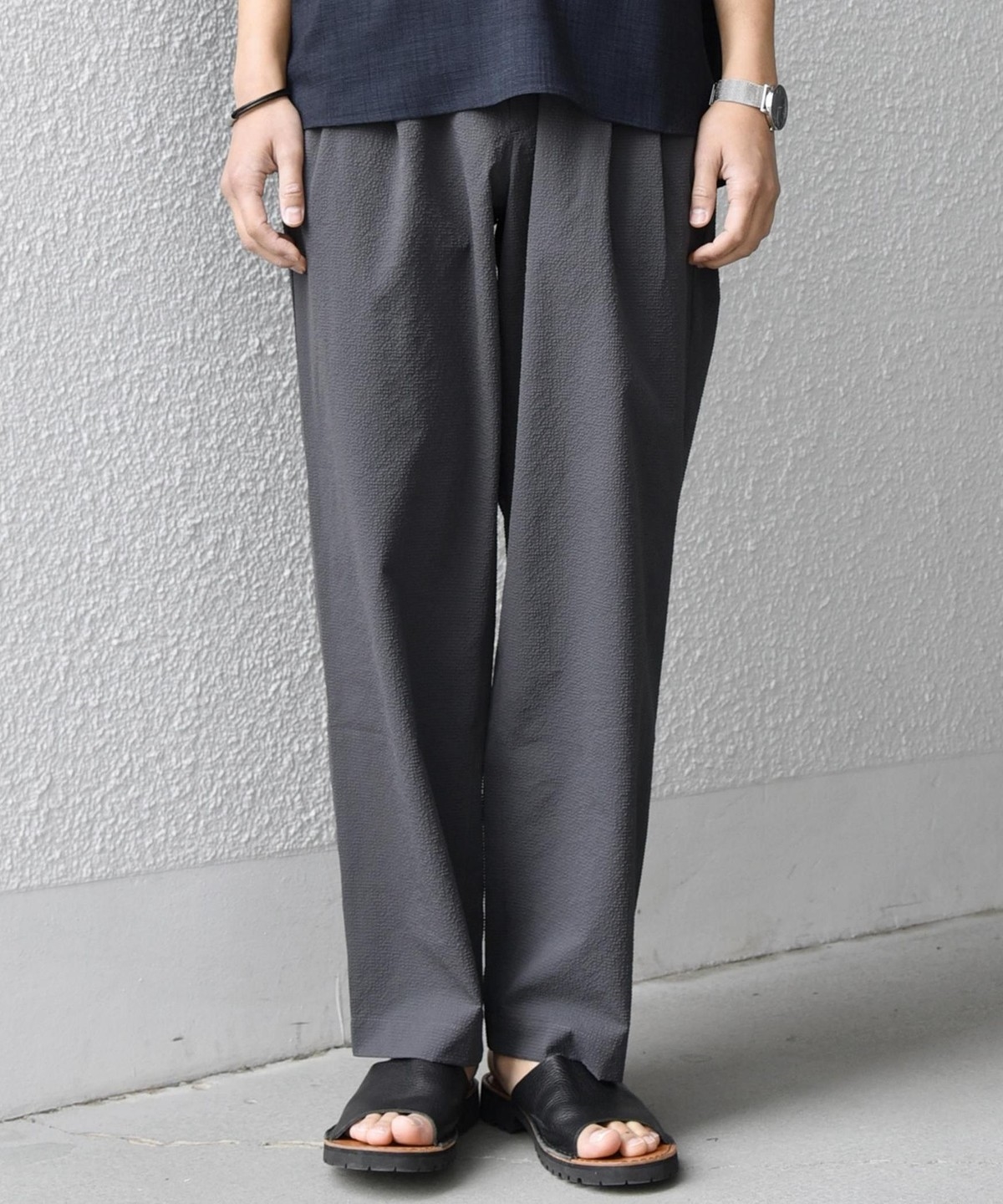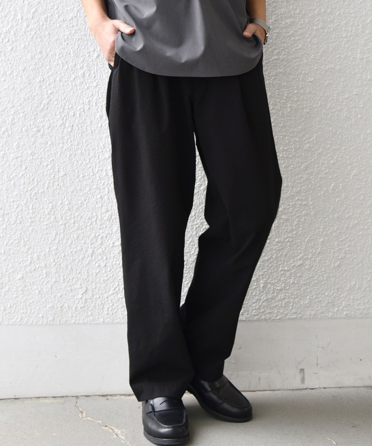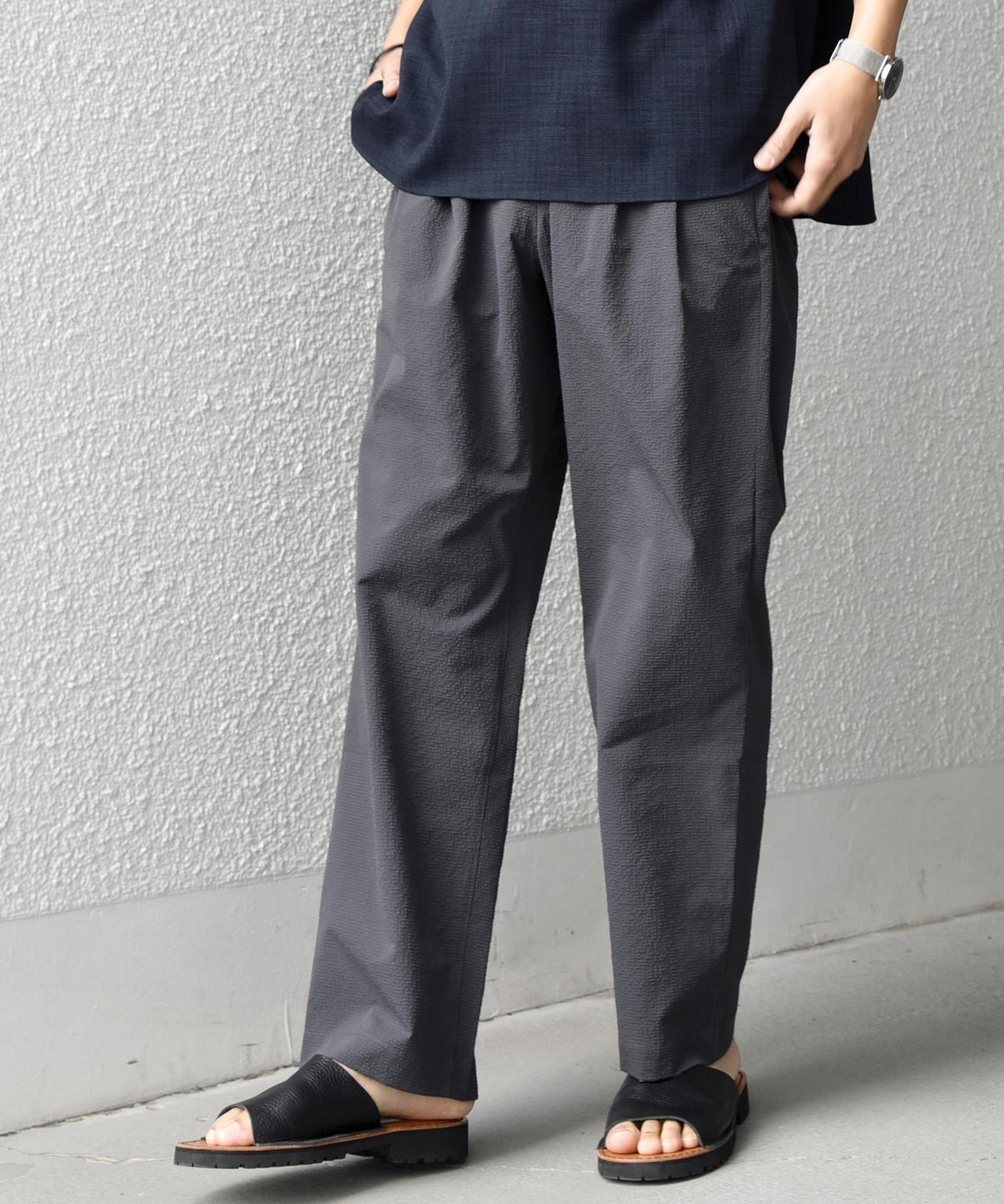 1. SHIPS any:〈撥水/軽量/ストレッチ〉SOLOTEX(R) シアサッカー セミワイド イージーパンツ(セットアップ対応)26SS◆ チャコールグレー
