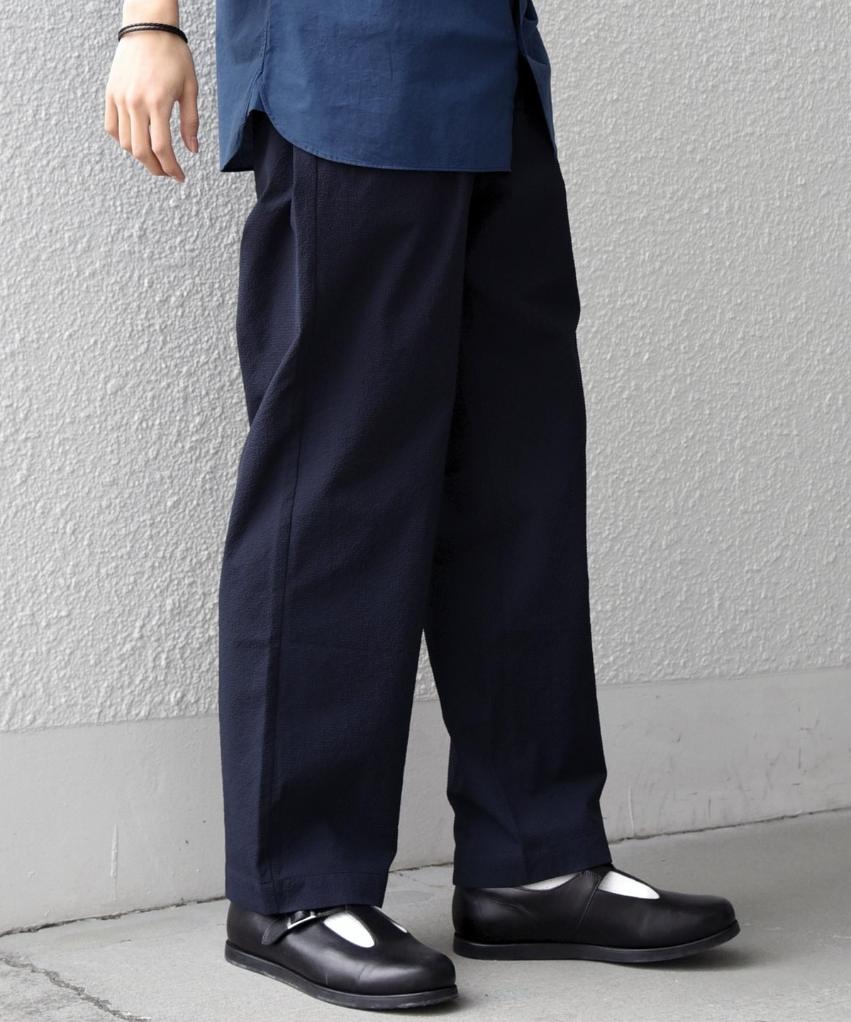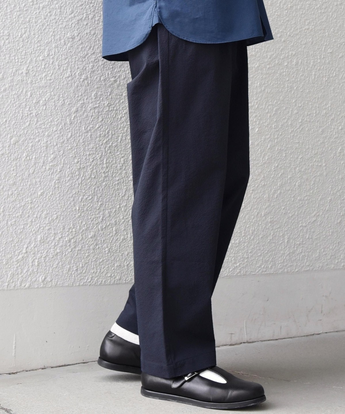 5. SHIPS any:〈撥水/軽量/ストレッチ〉SOLOTEX(R) シアサッカー セミワイド イージーパンツ(セットアップ対応)26SS◆ ダークブルー