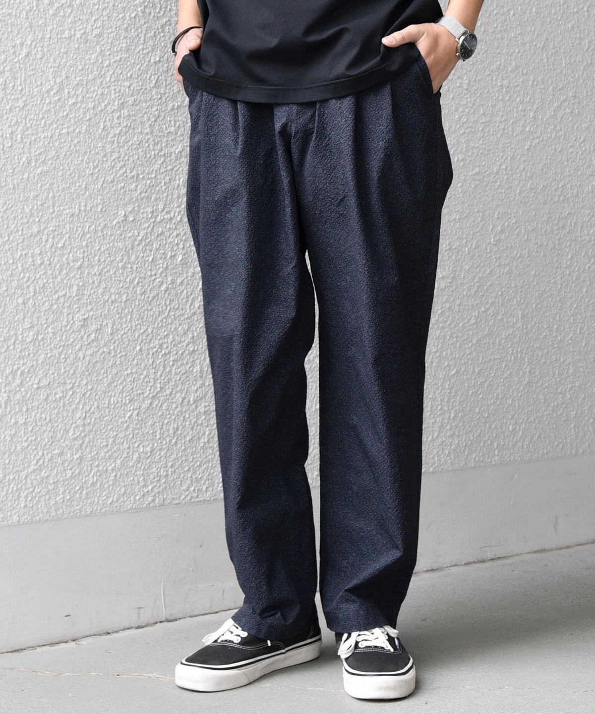 定番の2タックスラックスデザインの、セミワイドイージーパンツ。