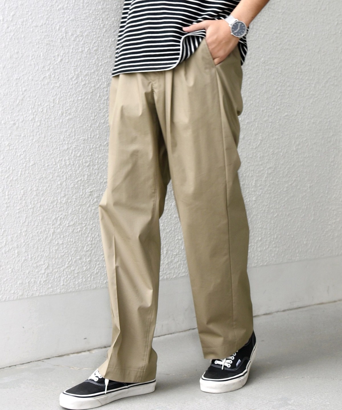 2タックスラックスデザインのリラックス感があるワイドイージーパンツ。