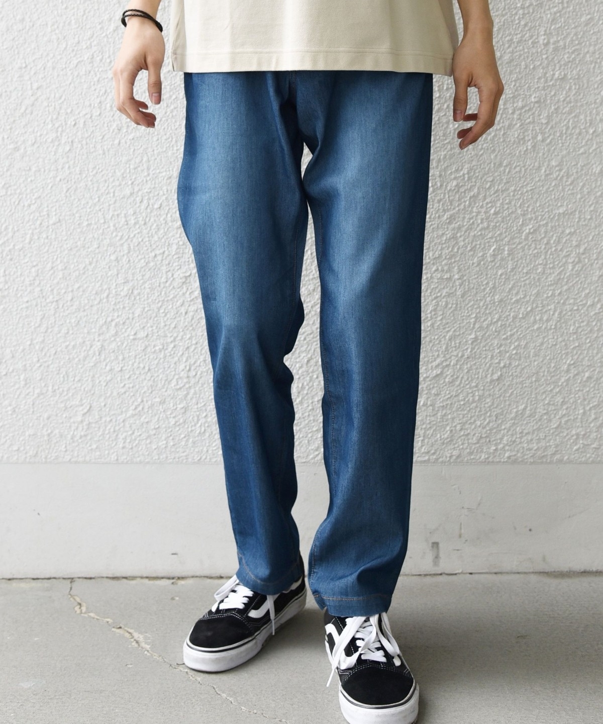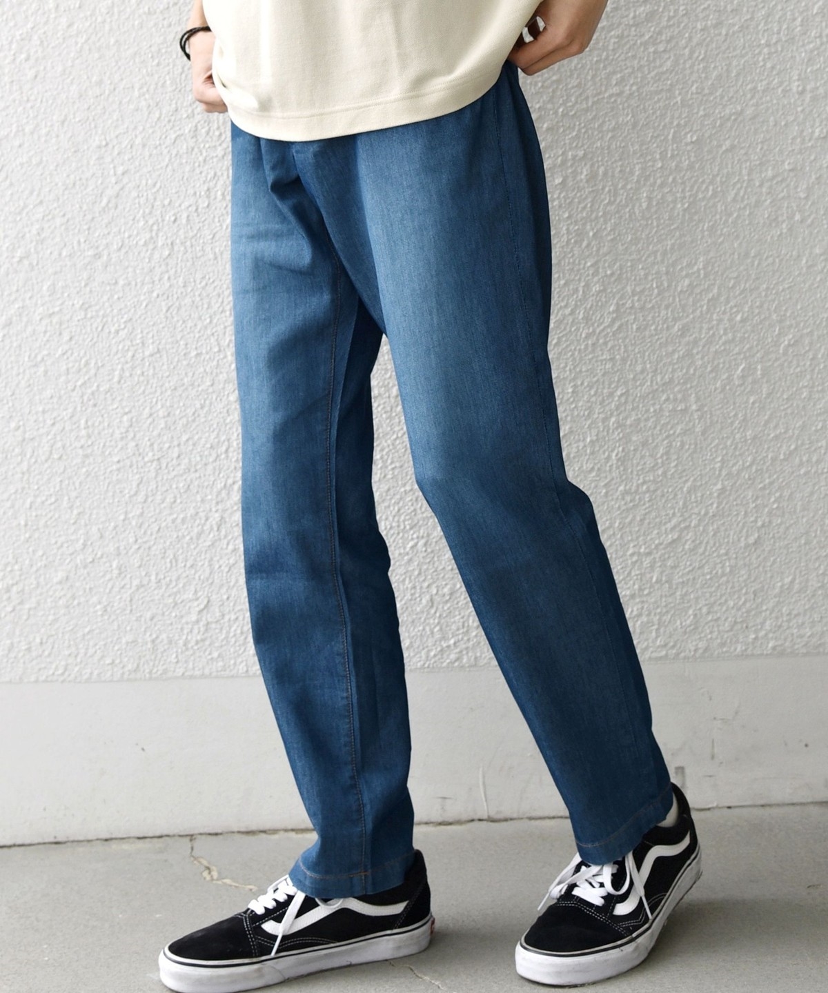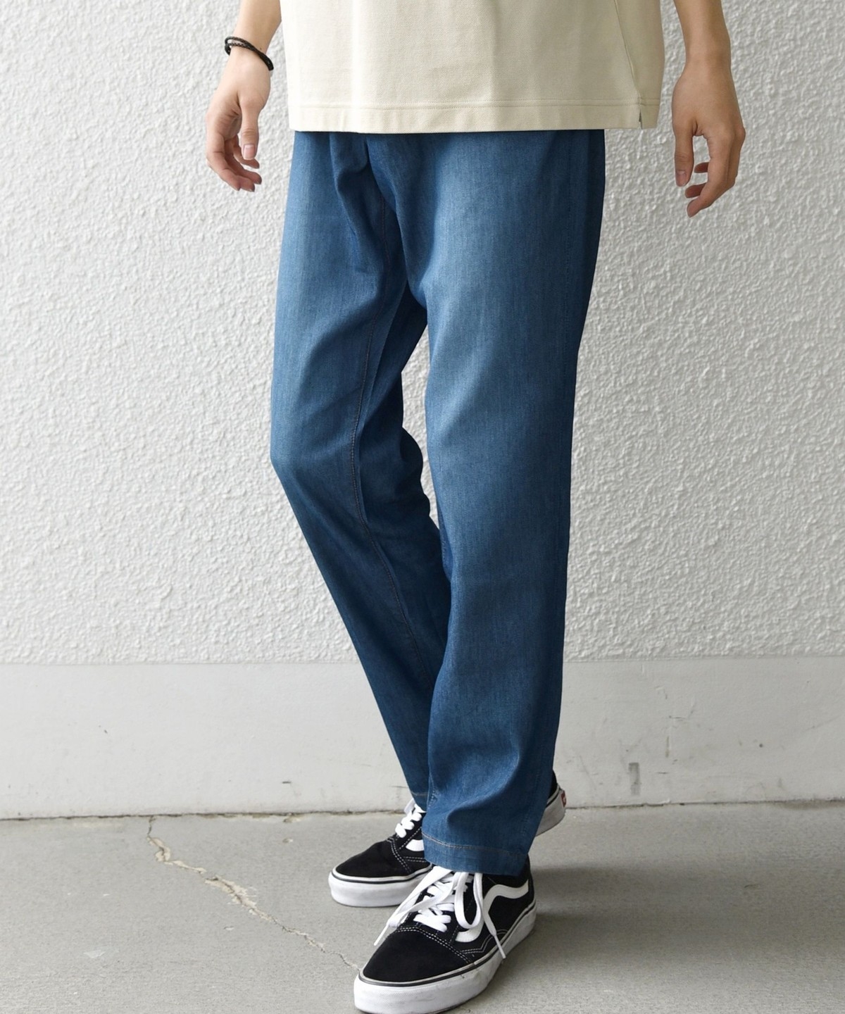 見た目はしっかりデニムながら、春夏シーズンも快適に穿けるパンツ。