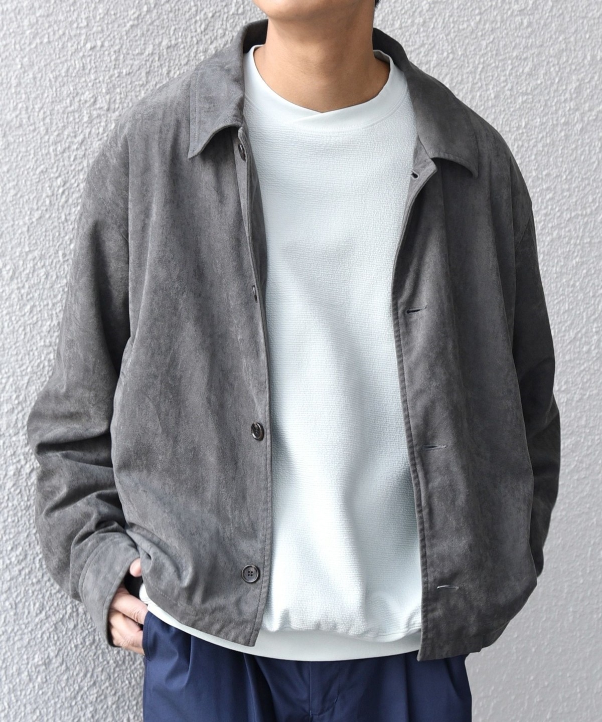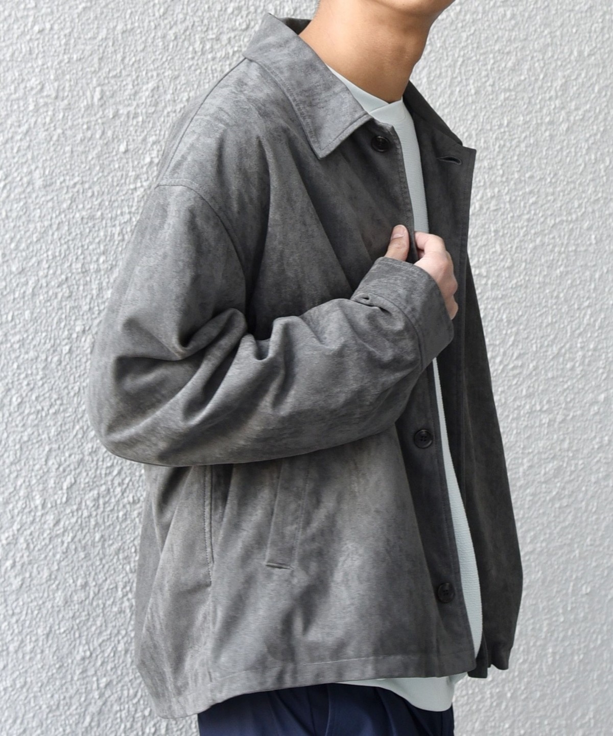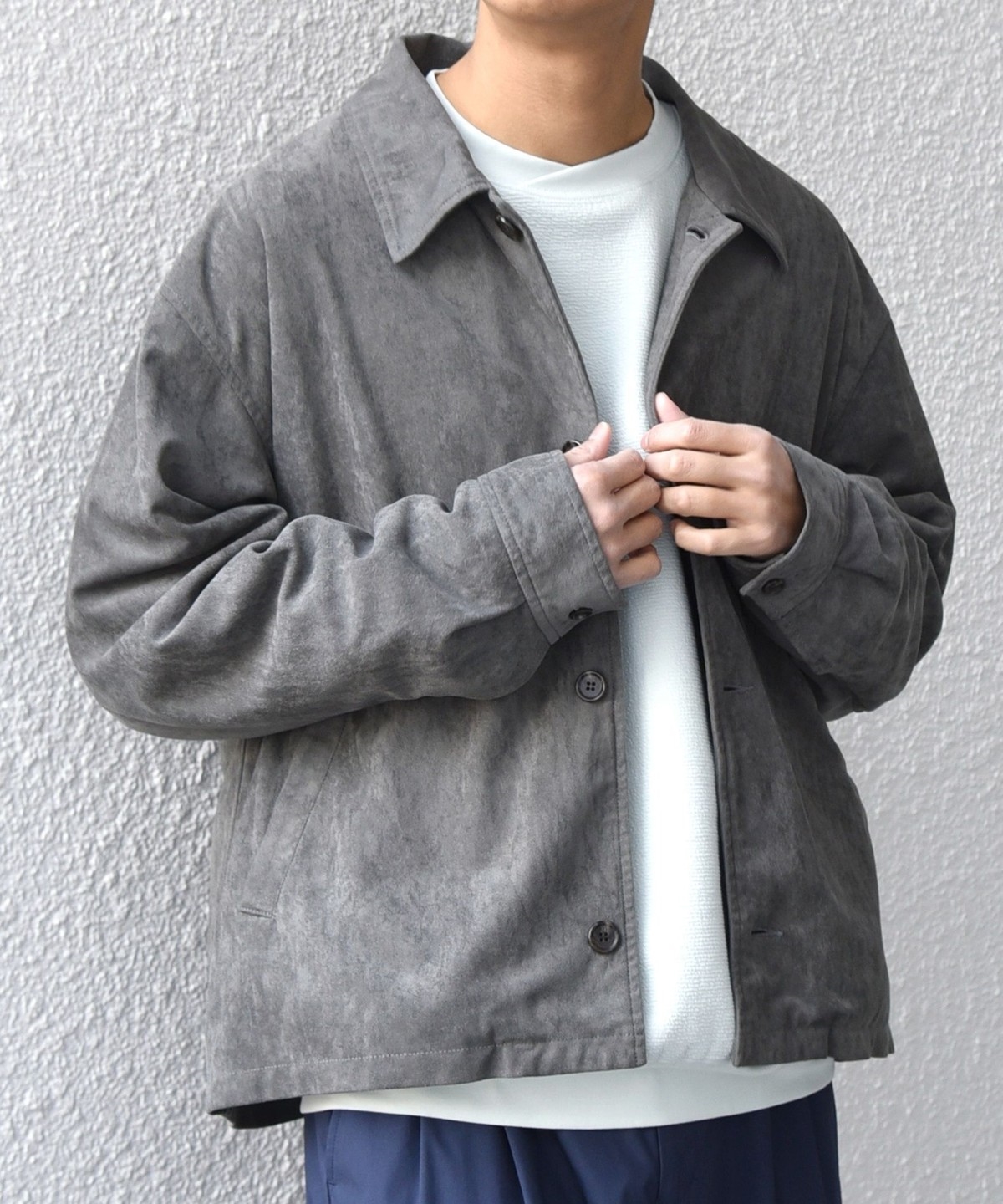 ふっくら柔らかな触り心地のピーチスキンを使用した、ボックスシルエットのボタンブルゾン