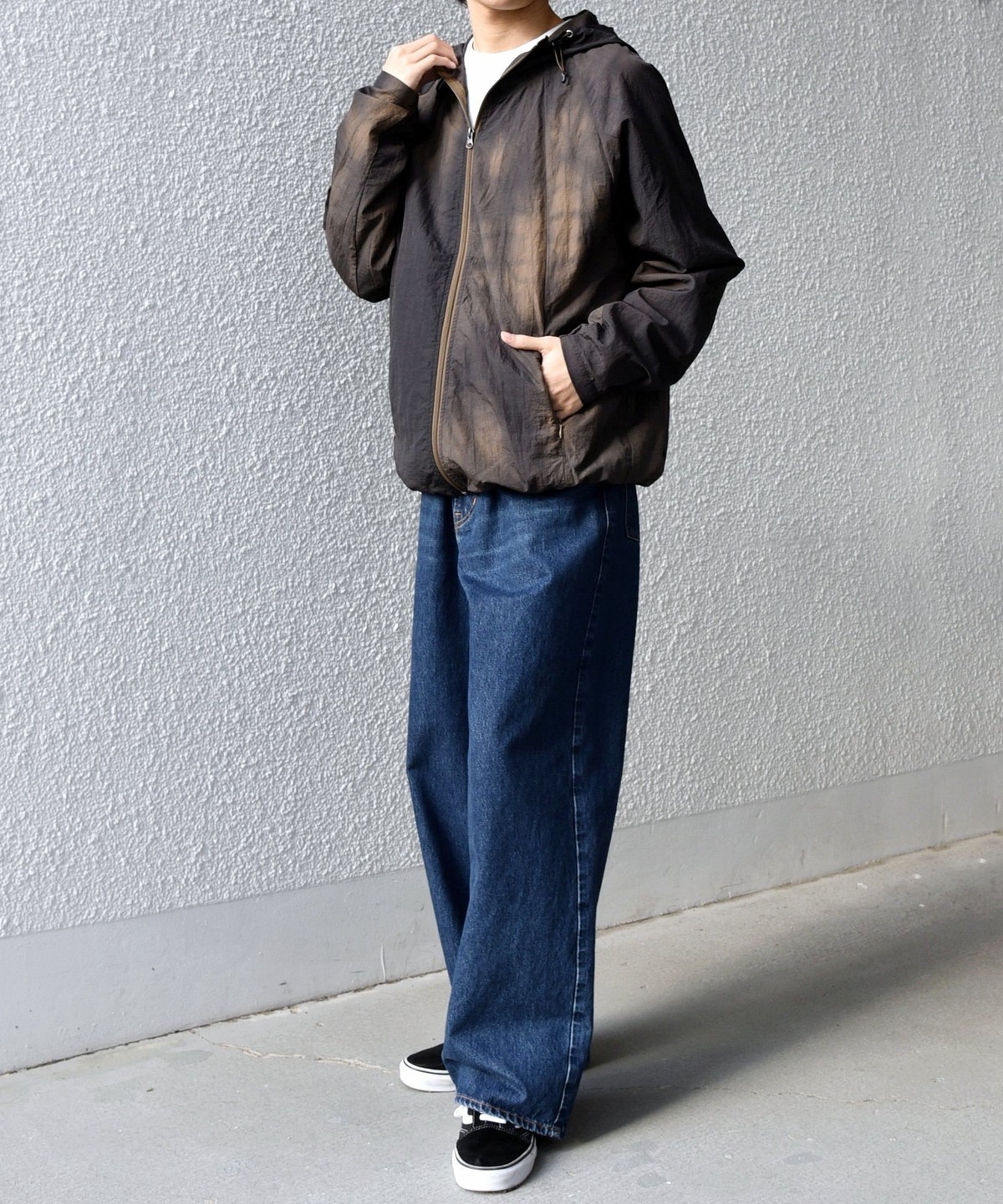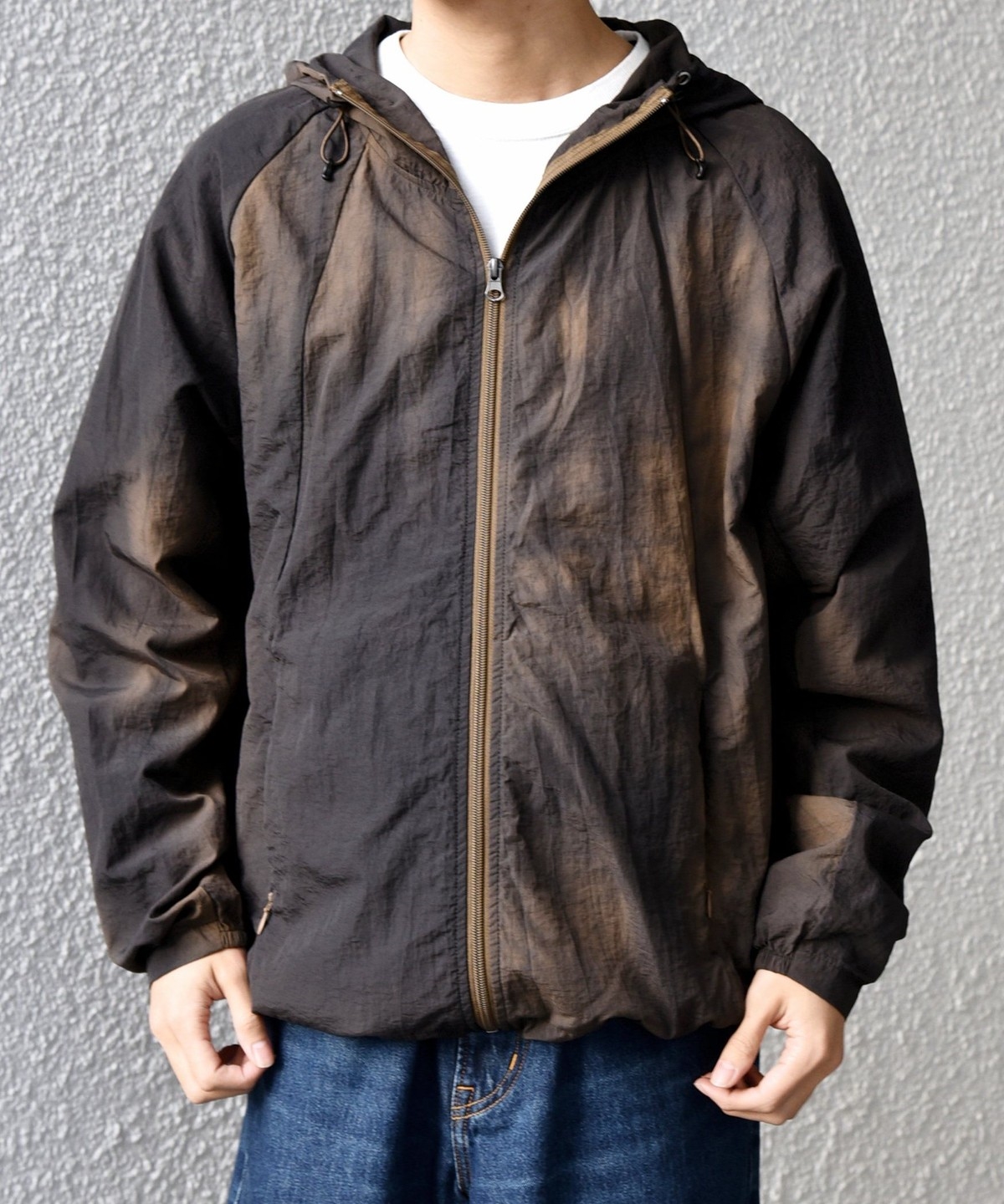 軽やかなナイロン素材で仕立てた、都会的な雰囲気のタイダイ柄ジップパーカー