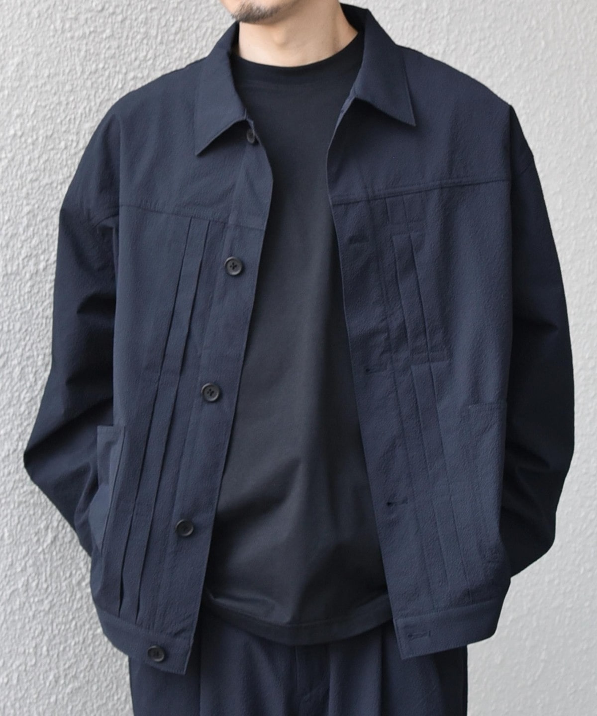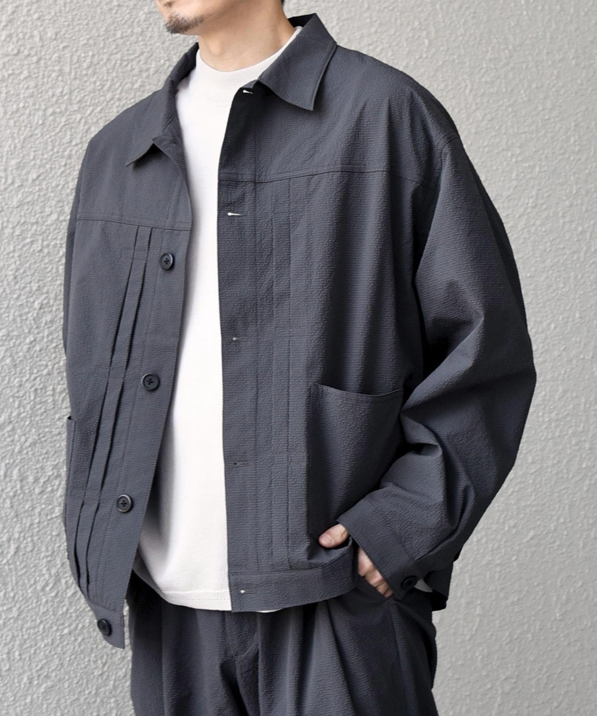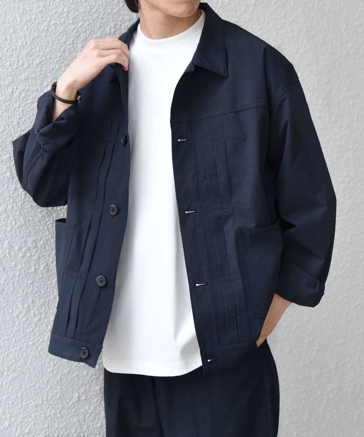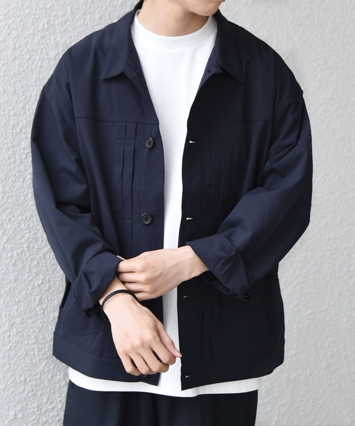シアサッカー素材ですので軽量で肌離れが良く、少し暑い時期にもライトジャケットとしても重宝すること間違いなし!