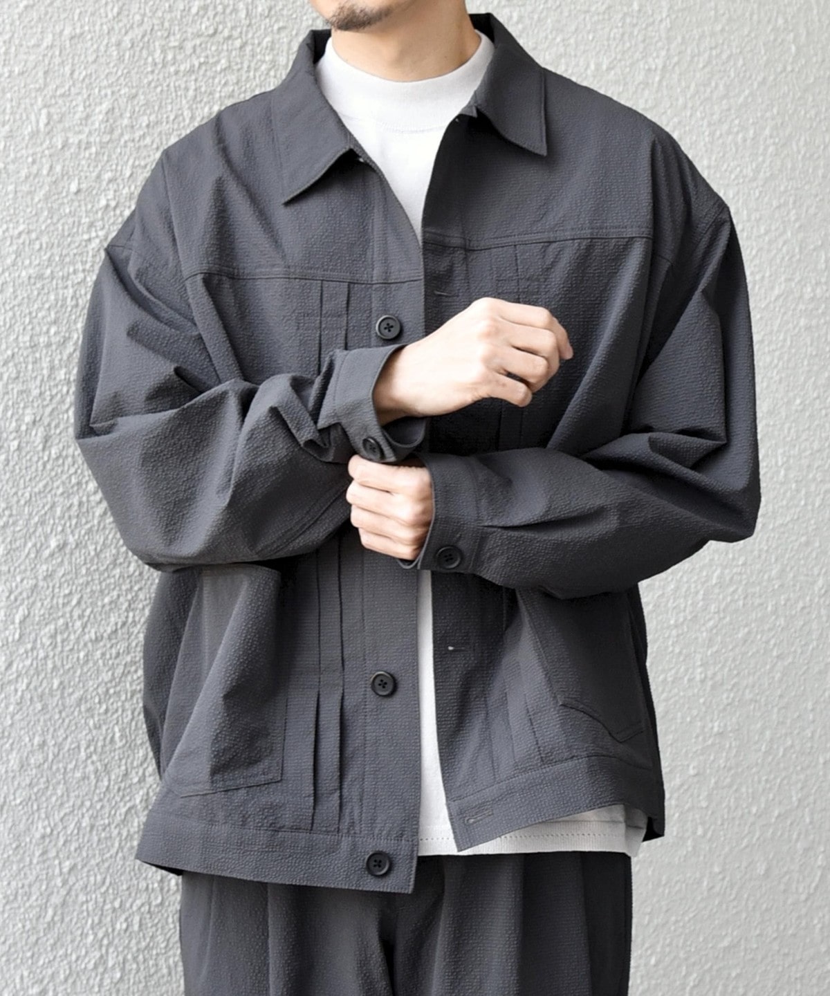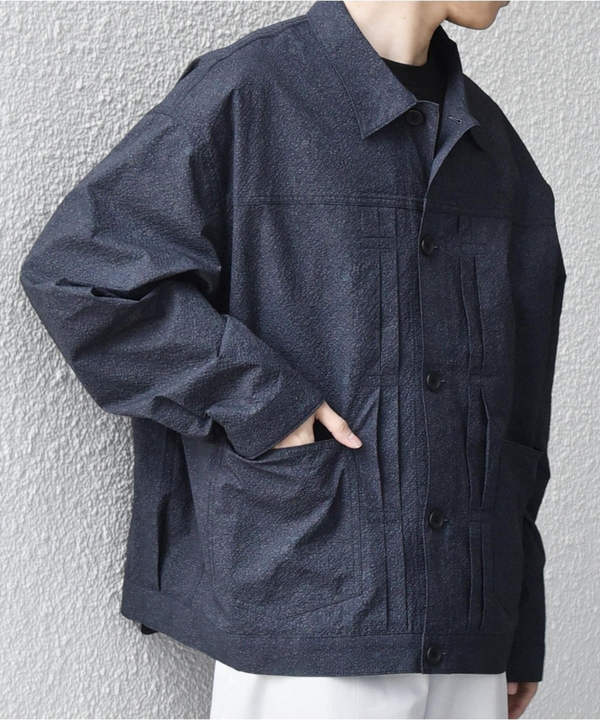 軽量シアサッカー素材なので、アウターとして持ち運びにも◎