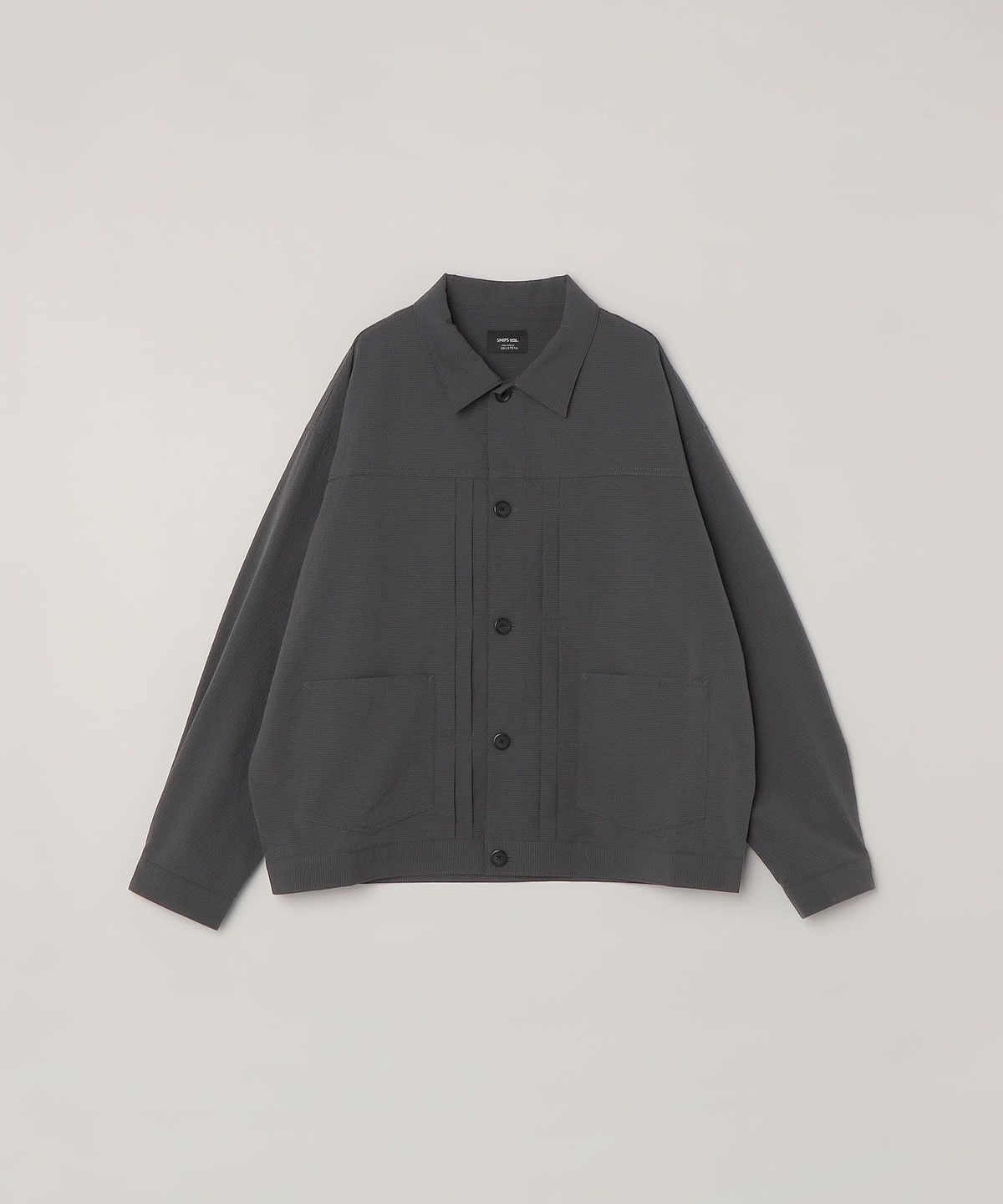 セットアップでも着用可能◎使い勝手がよく春夏に重宝する、Gジャン型のショートブルゾン【素材特性】高反発ストレッチ素材である