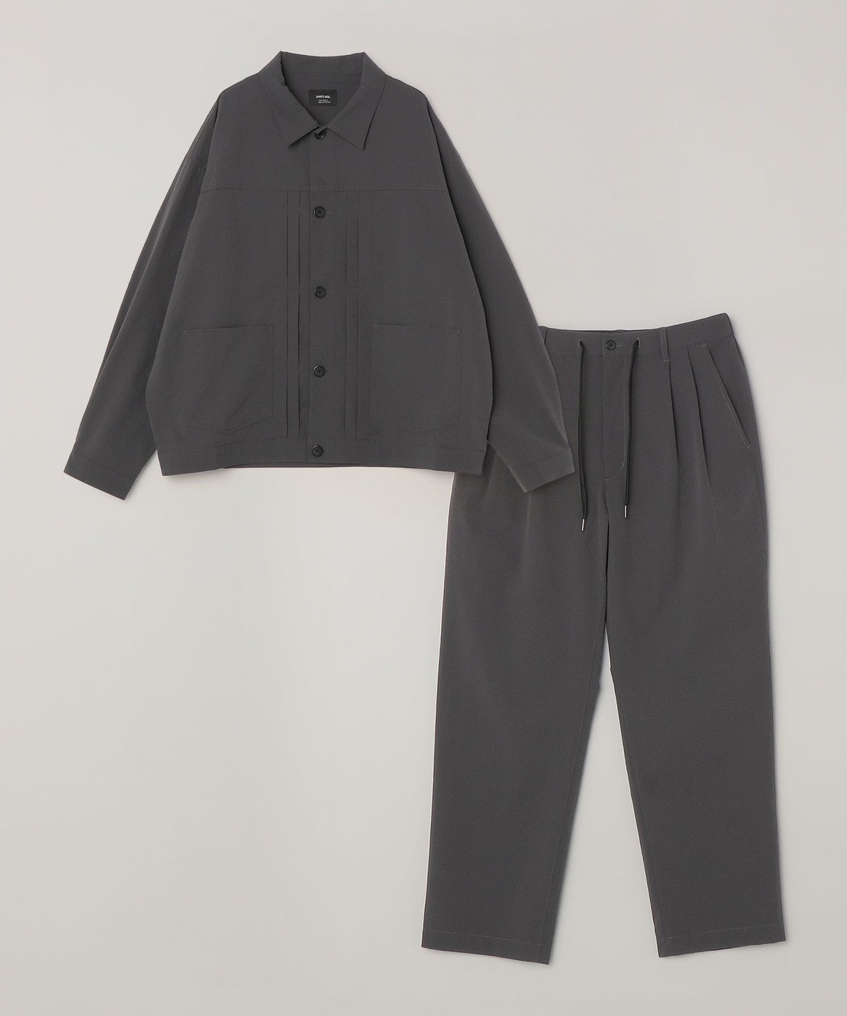 他にも同素材のパンツアイテムも展開しているので、お好みでセットアップスタイルも!
