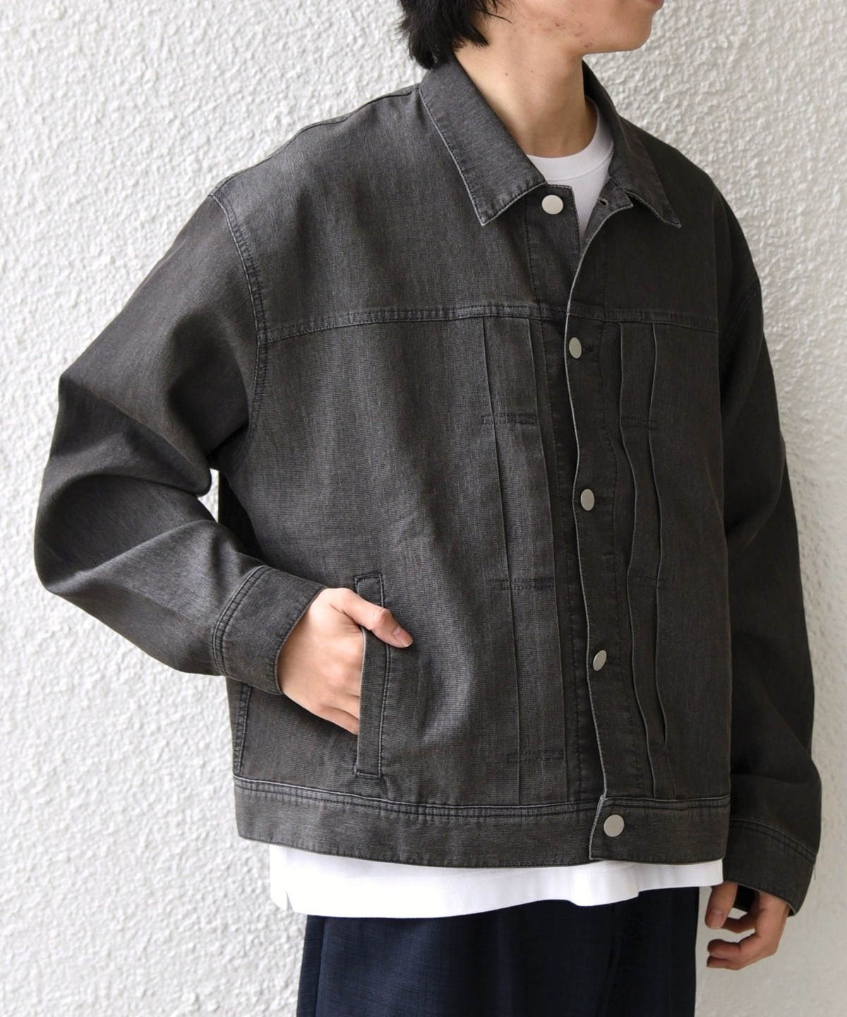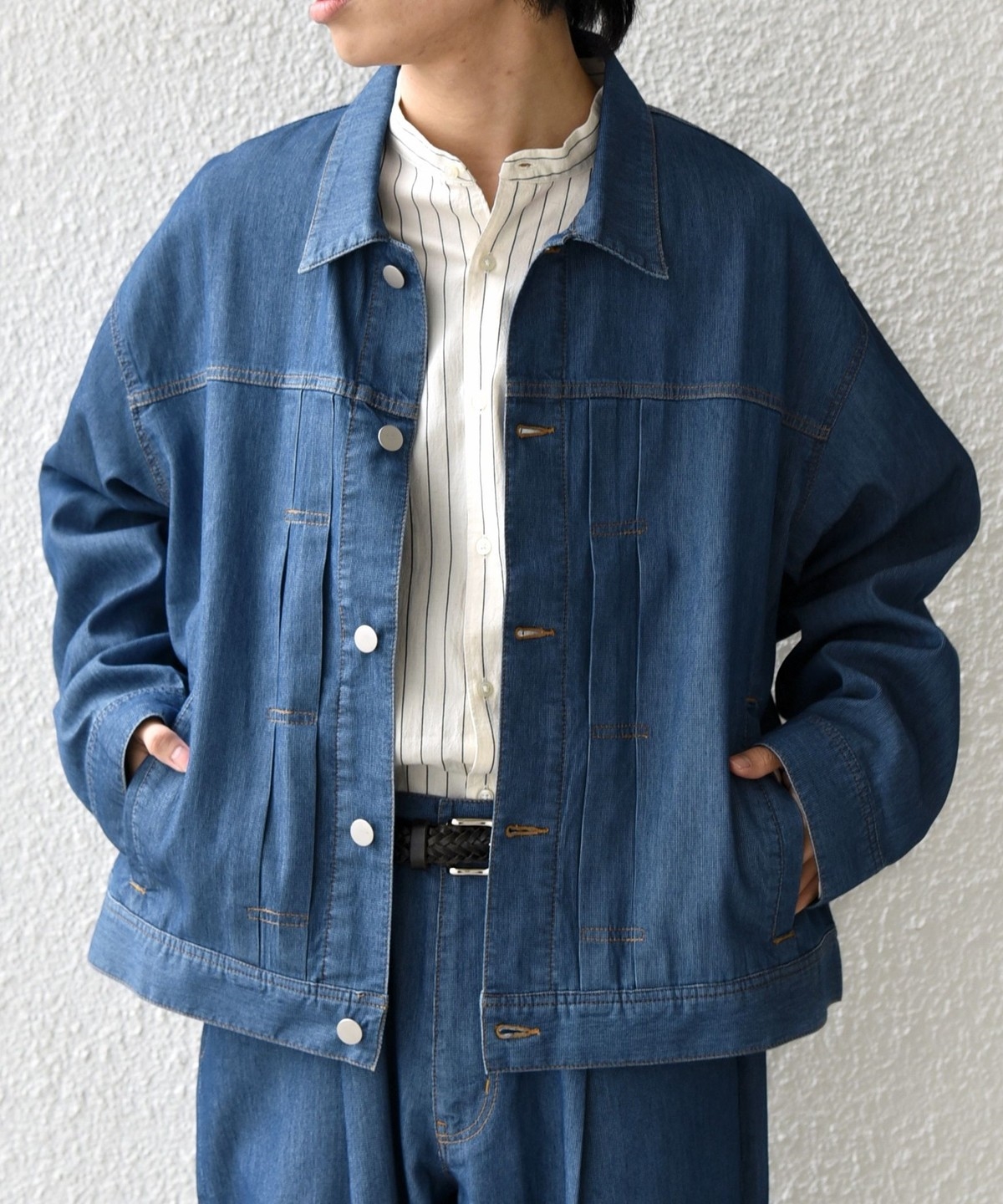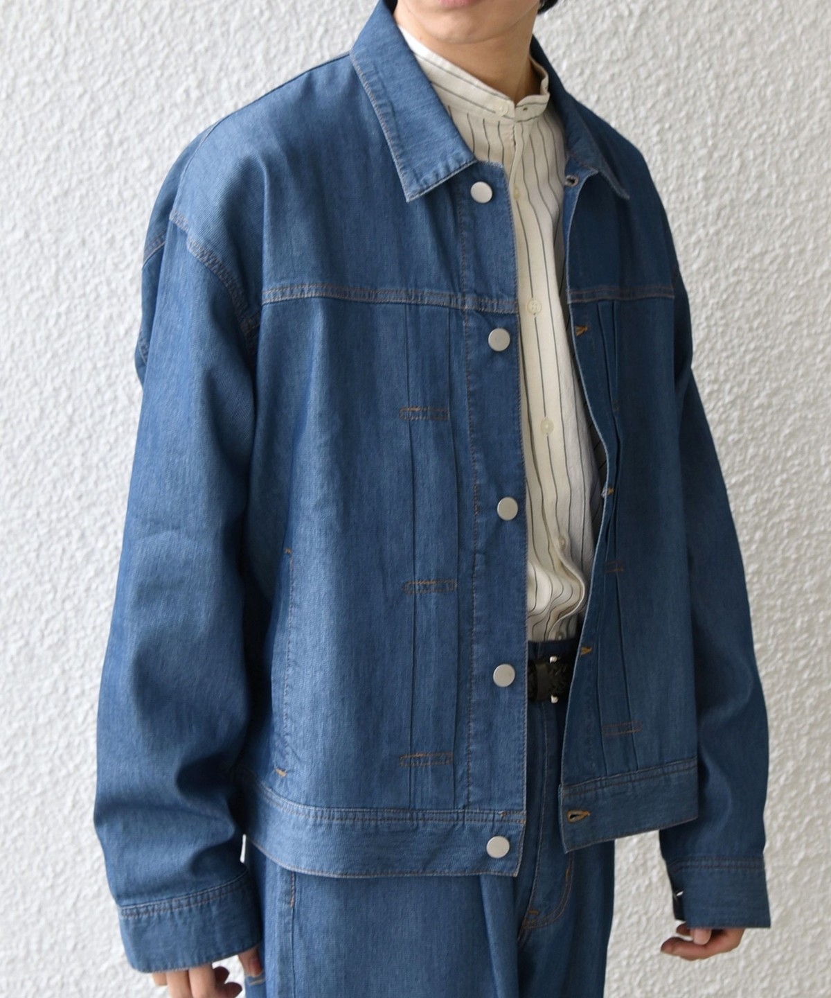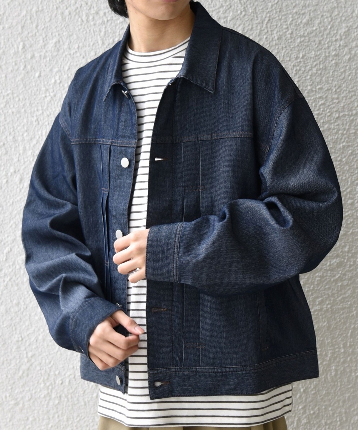 薄手&軽量なメッシュデニム素材を使用した、リラックスシルエットのライトジャケット