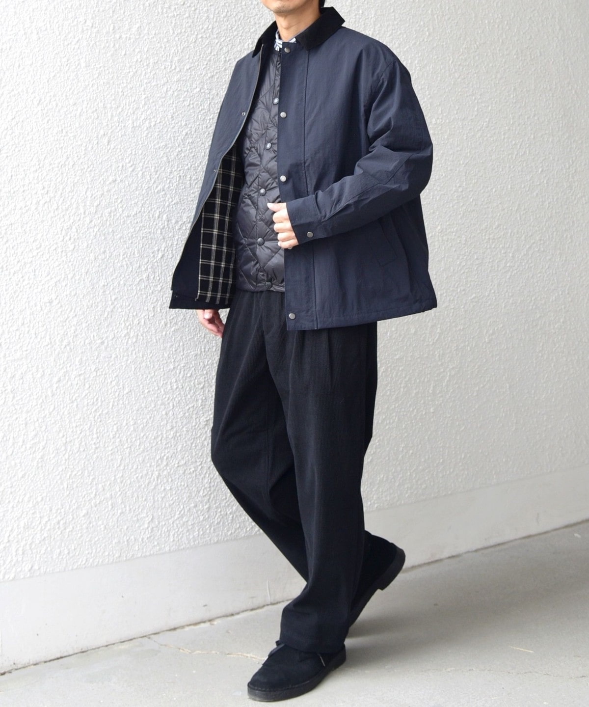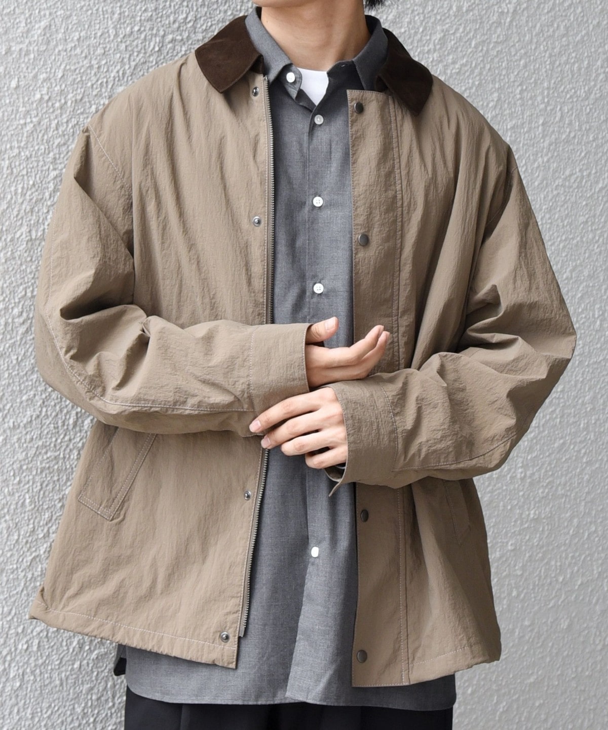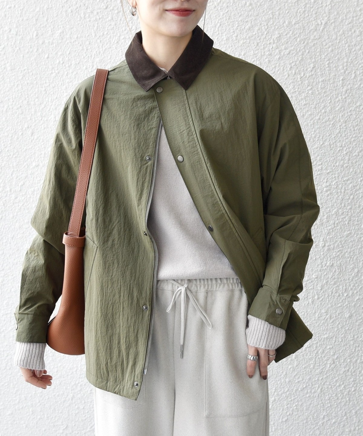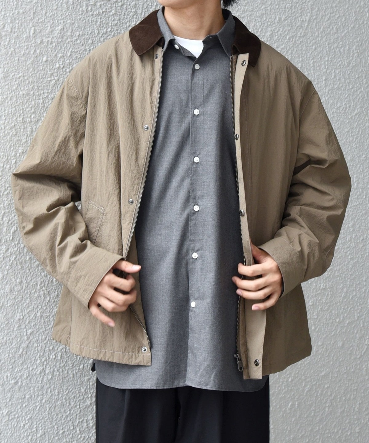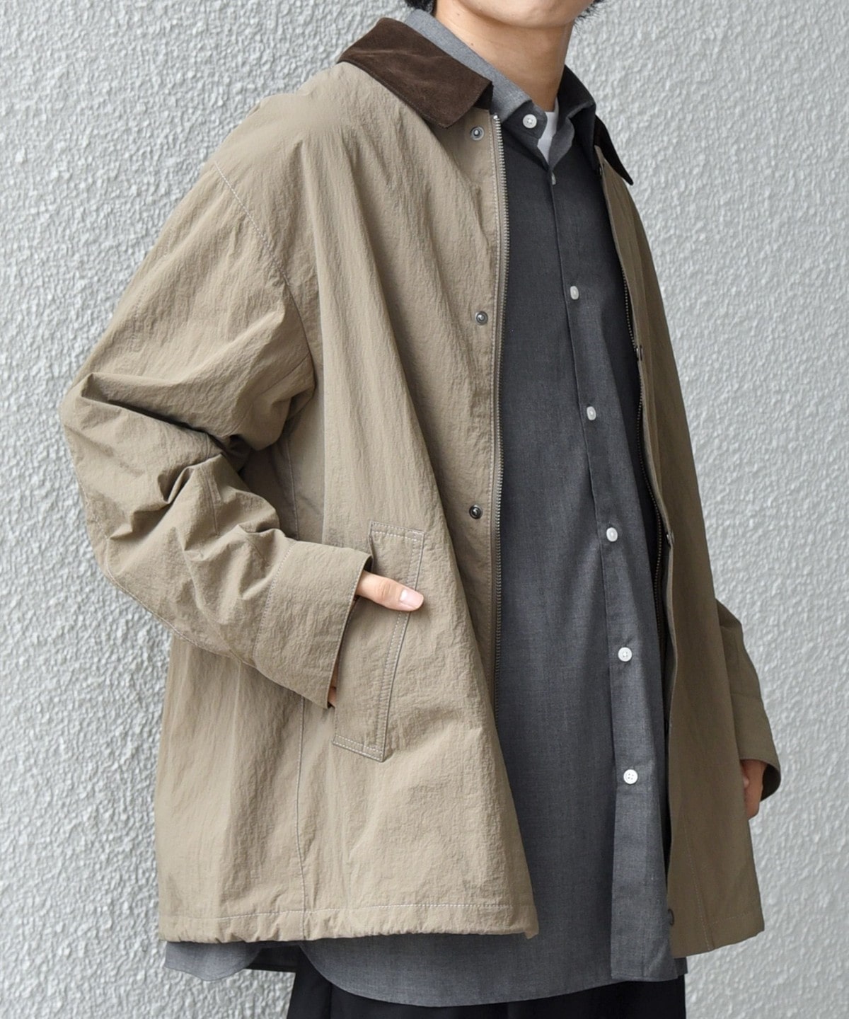 表地にタスランナイロン、衿部分にコーデュロイを組み合わせたコンビネーション素材。
