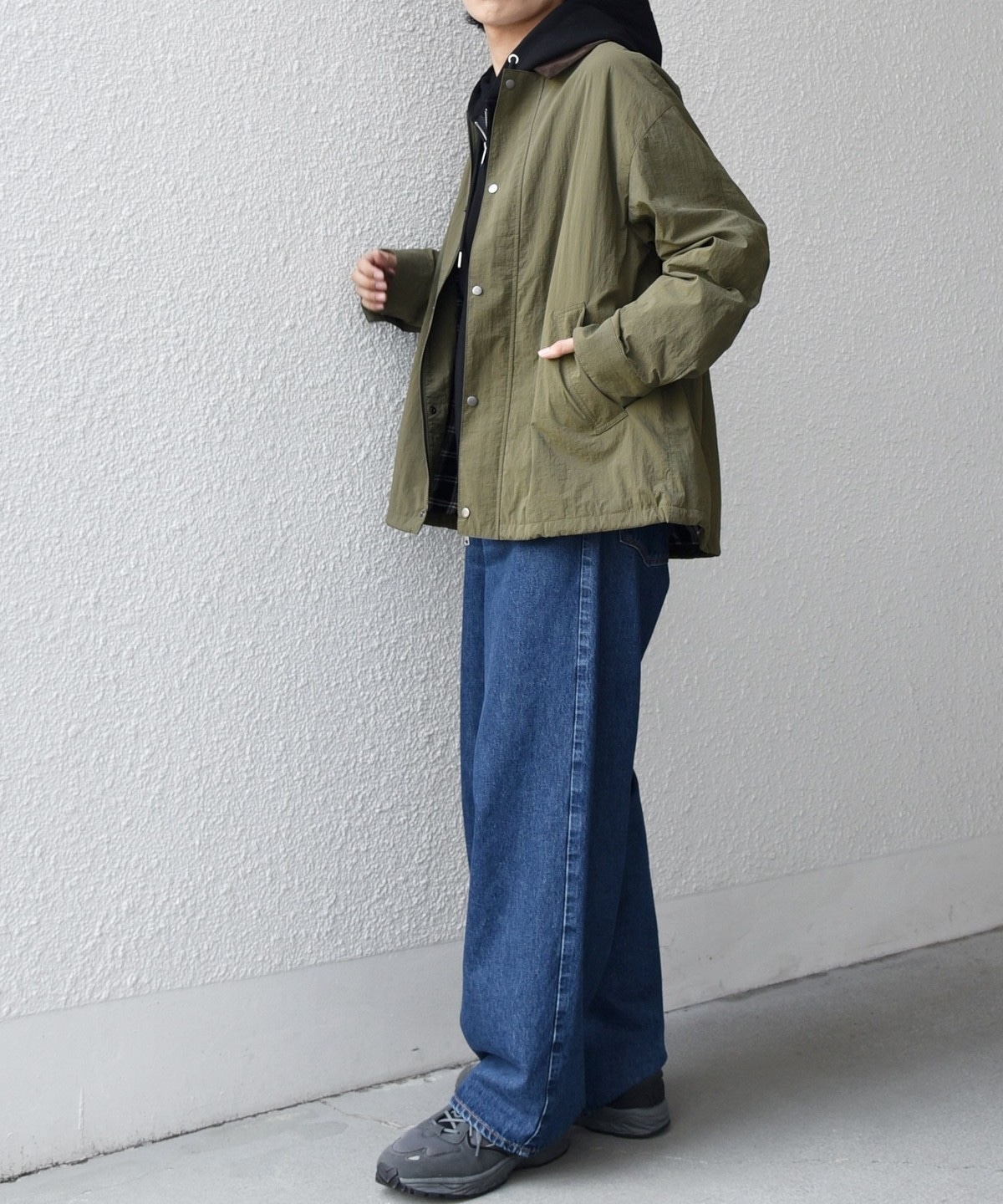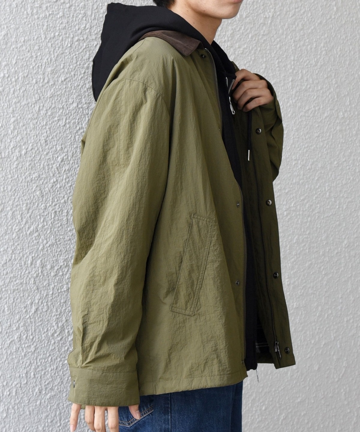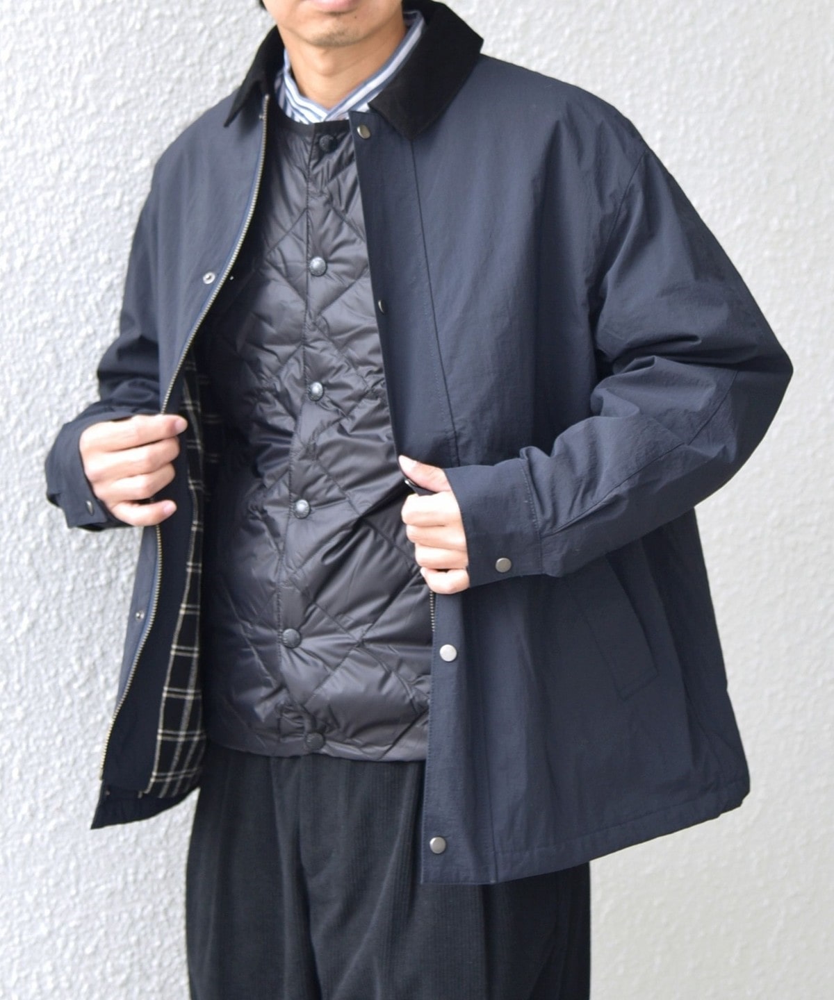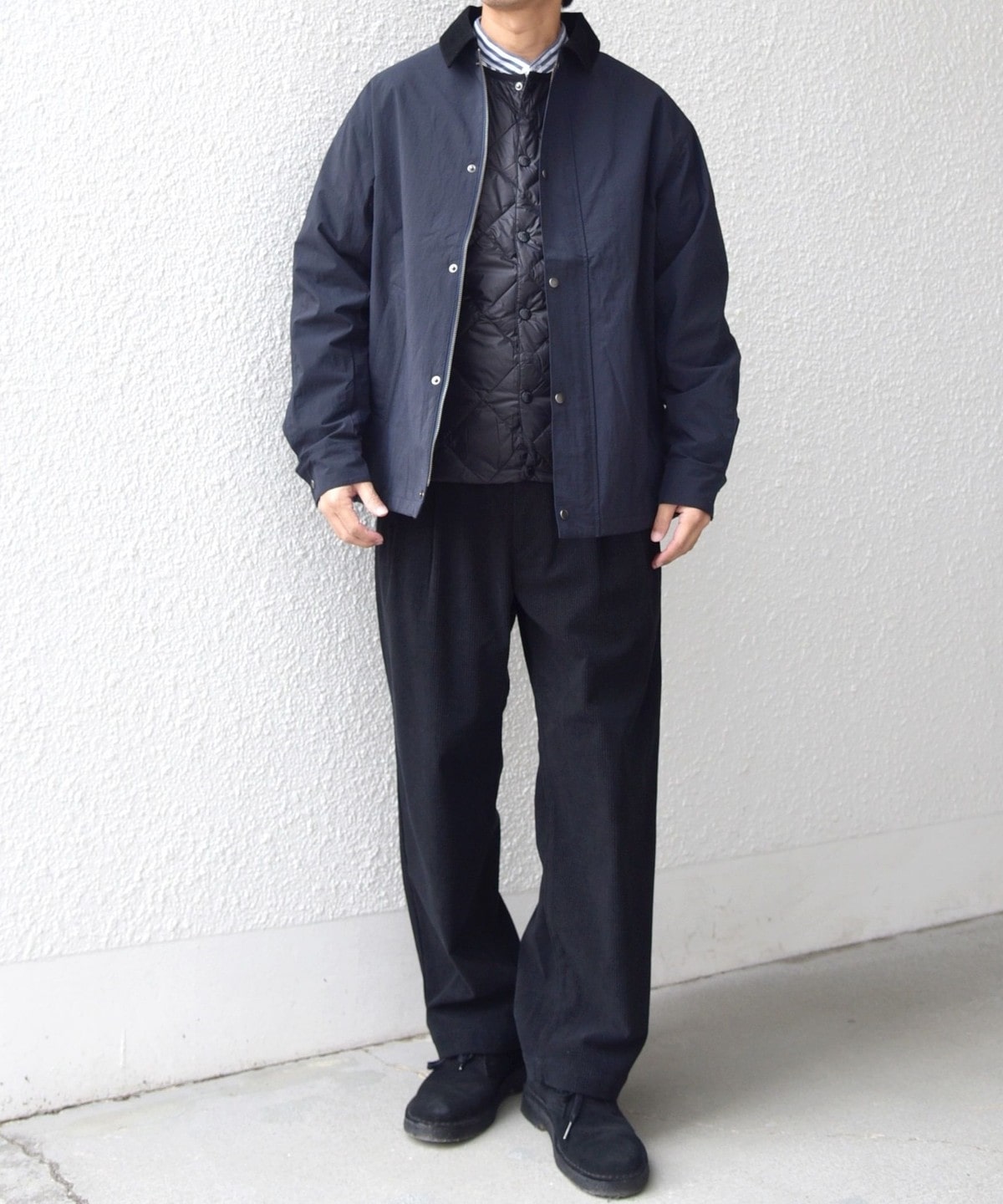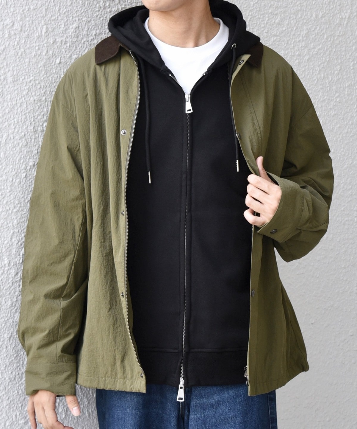 表地にタスランナイロン、衿部分にコーデュロイを組み合わせたコンビネーション素材。