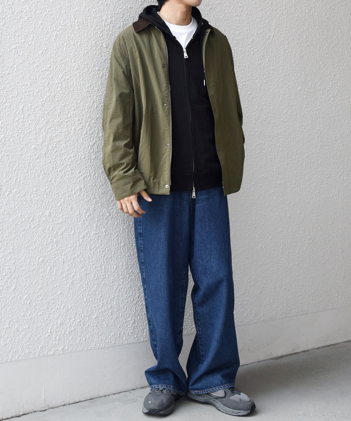 ハンティングジャケットをベースにしつつ、デザインはシンプルにまとめ、シルエットで今っぽさをプラスしました。
