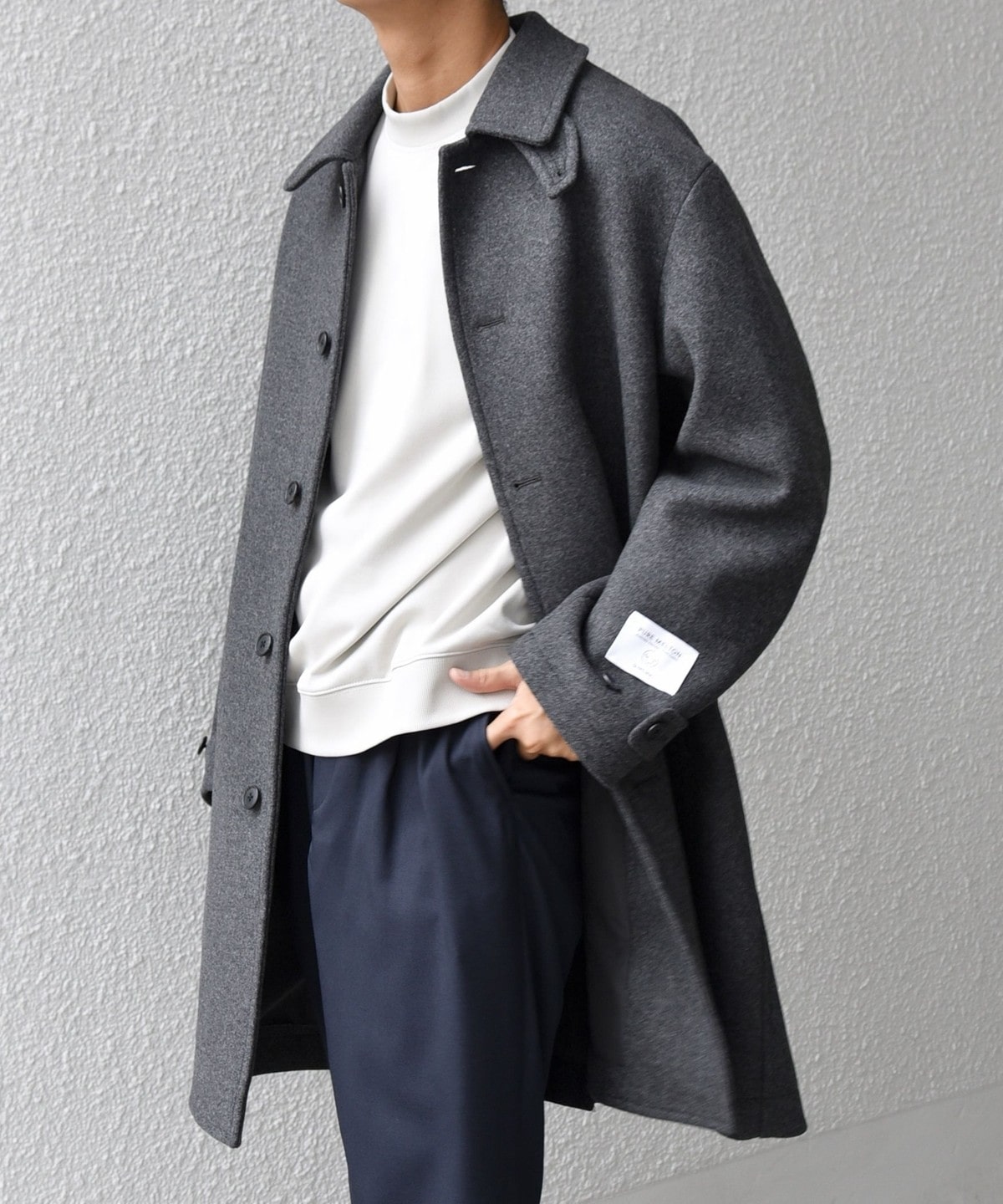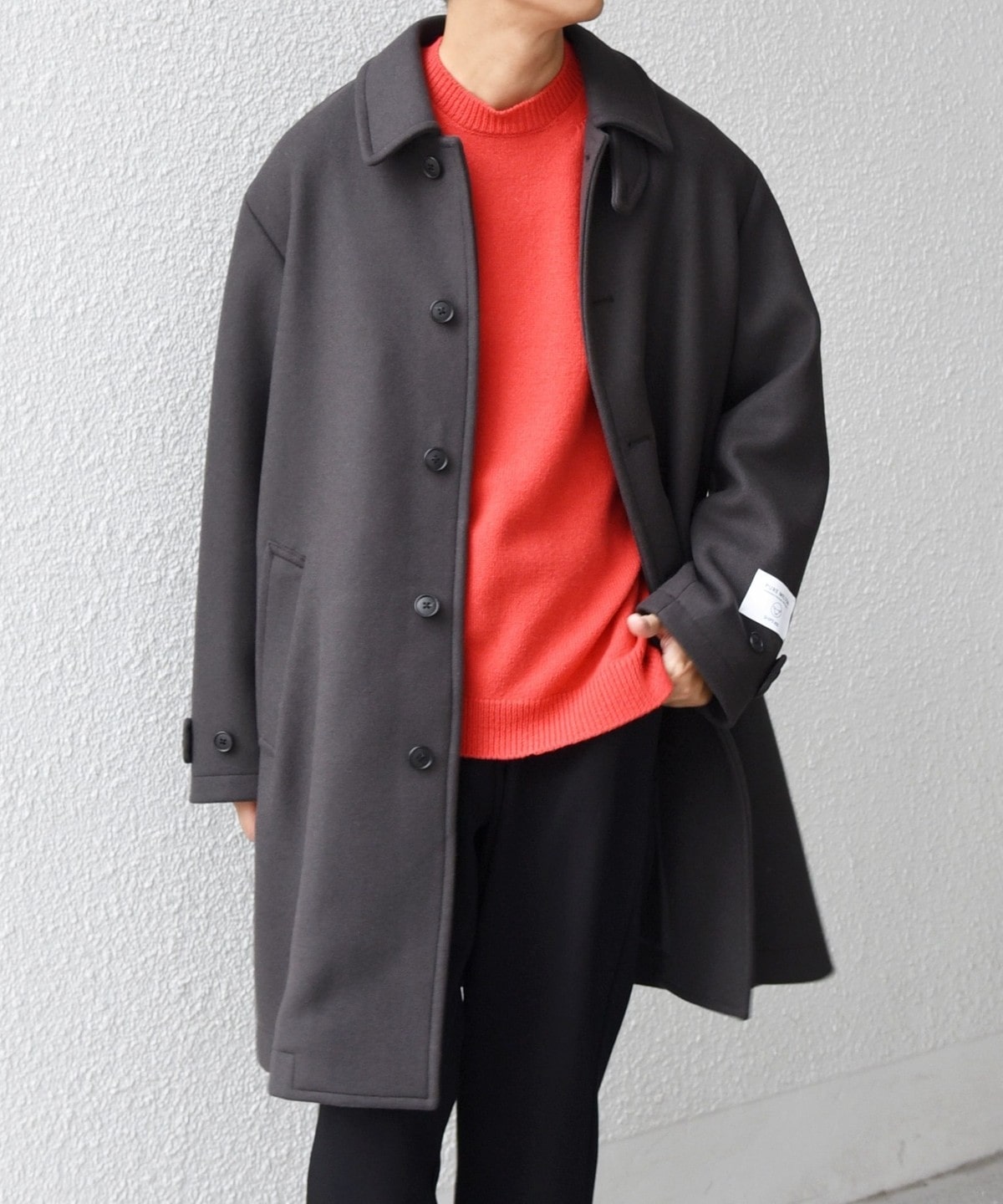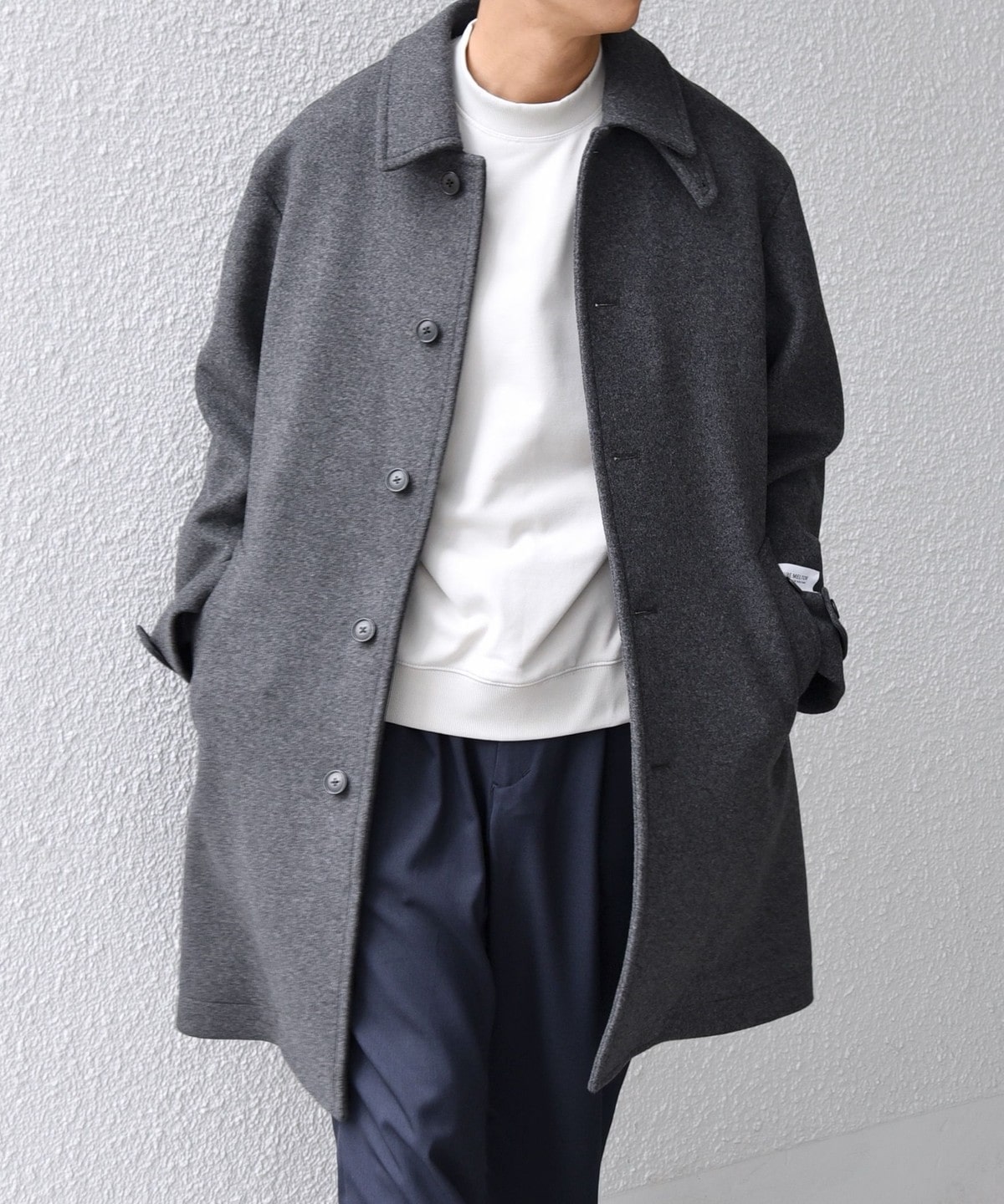 ビジネスからカジュアルまで対応可能なウールメルトンのステンカラーコート