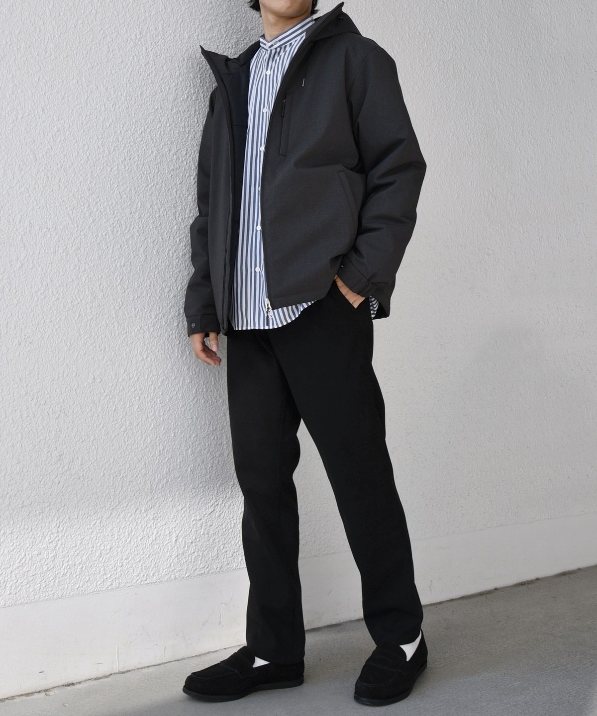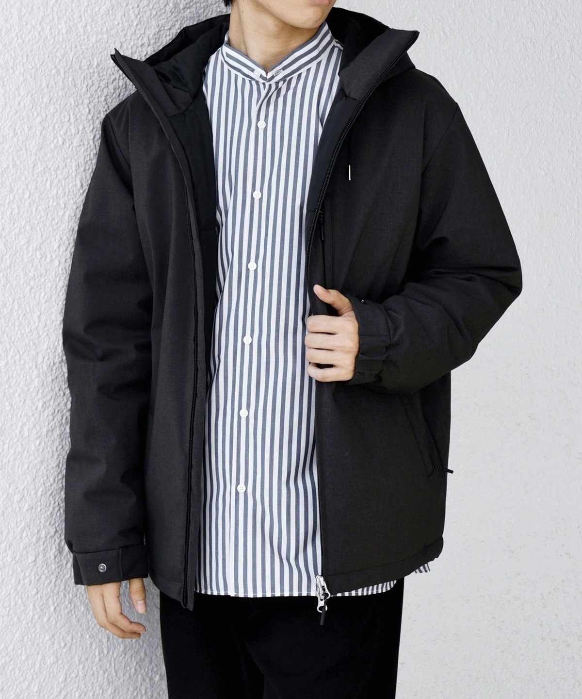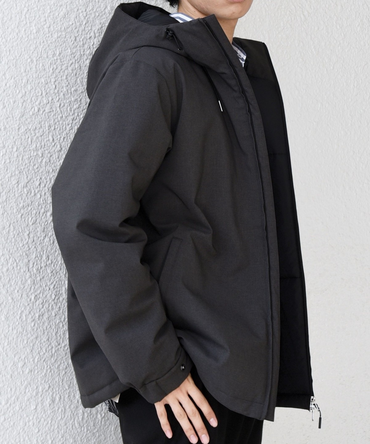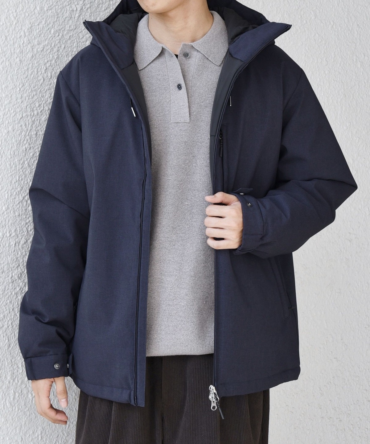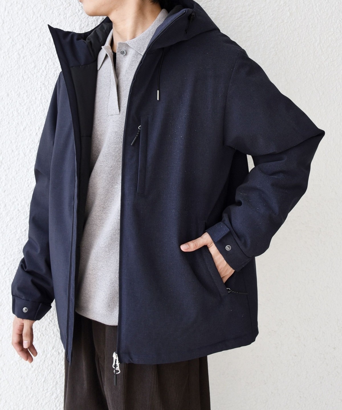 ウールのような素材を使用し、より上品な仕上がりにした中綿入りのマウンテンパーカー