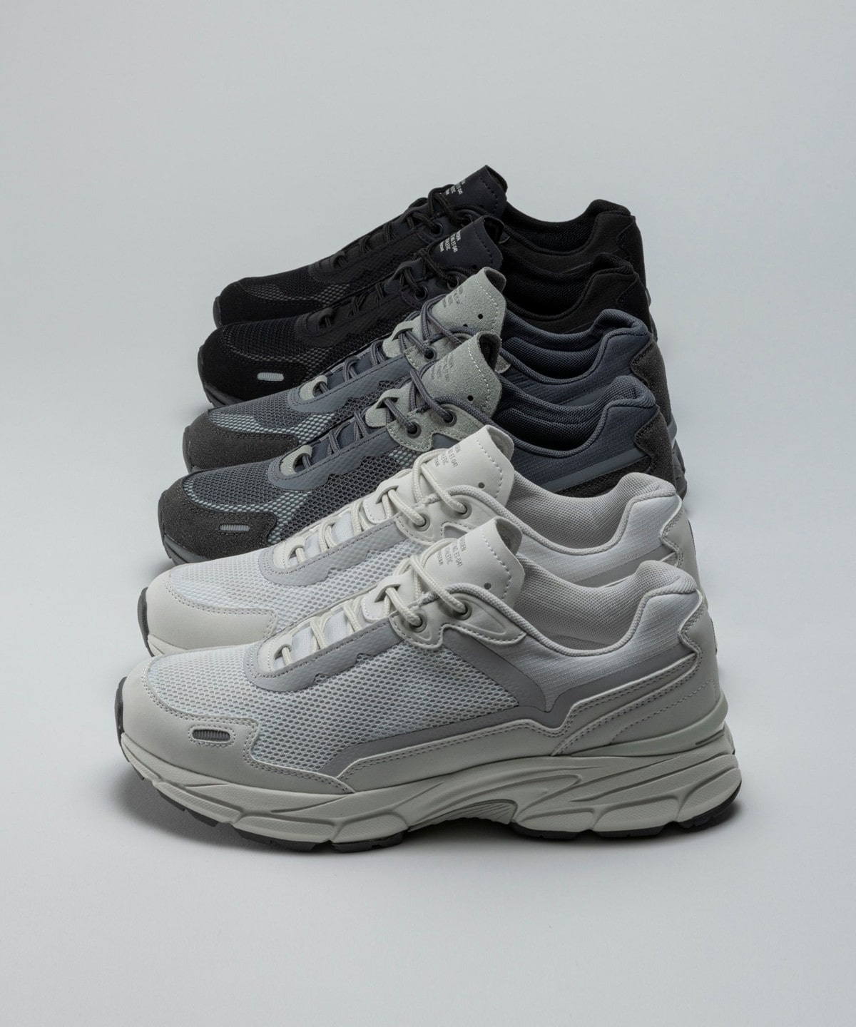 耐久性を考慮した素材をベースにアッパーを構成し、屈曲部の重なりを抑え、隠しサドルを搭載することで歩行時の足当たりや横ブレに配慮した設計に。