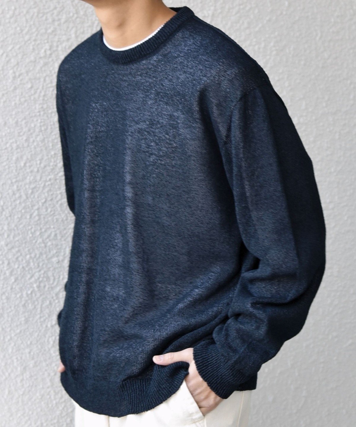 ほんのり透け感があるため、インナーとのレイヤードスタイルも楽しめます。
