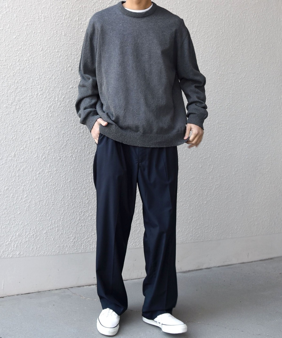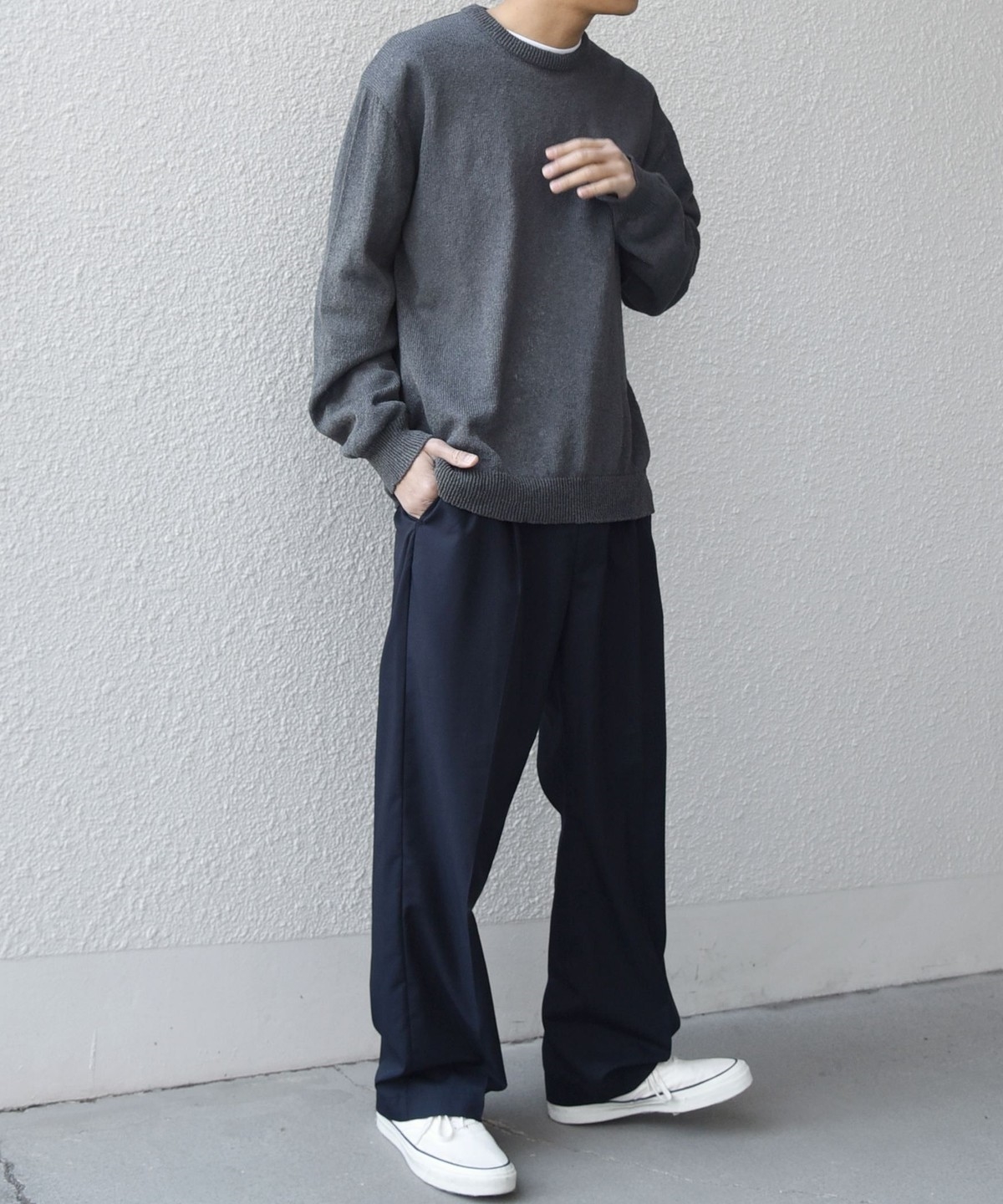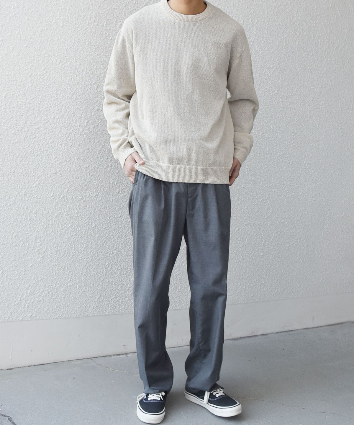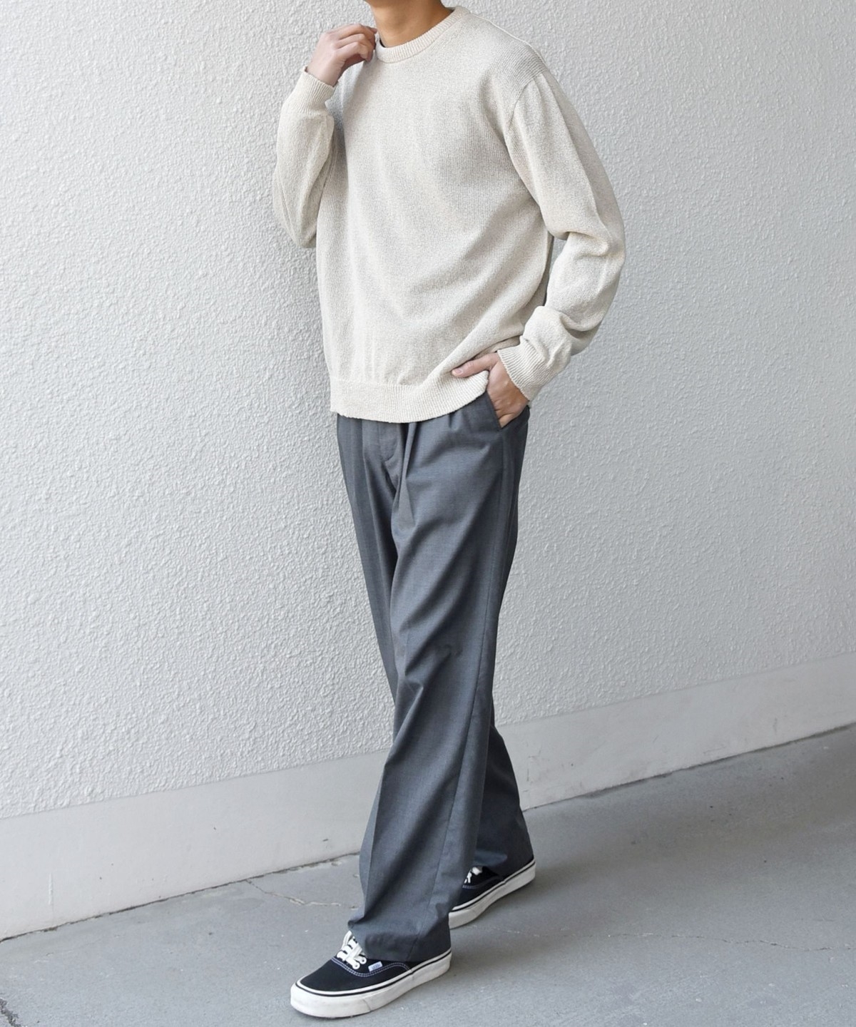 程よくリラックス感のあるシルエットで、どんなアイテムとも合わせやすさが◎