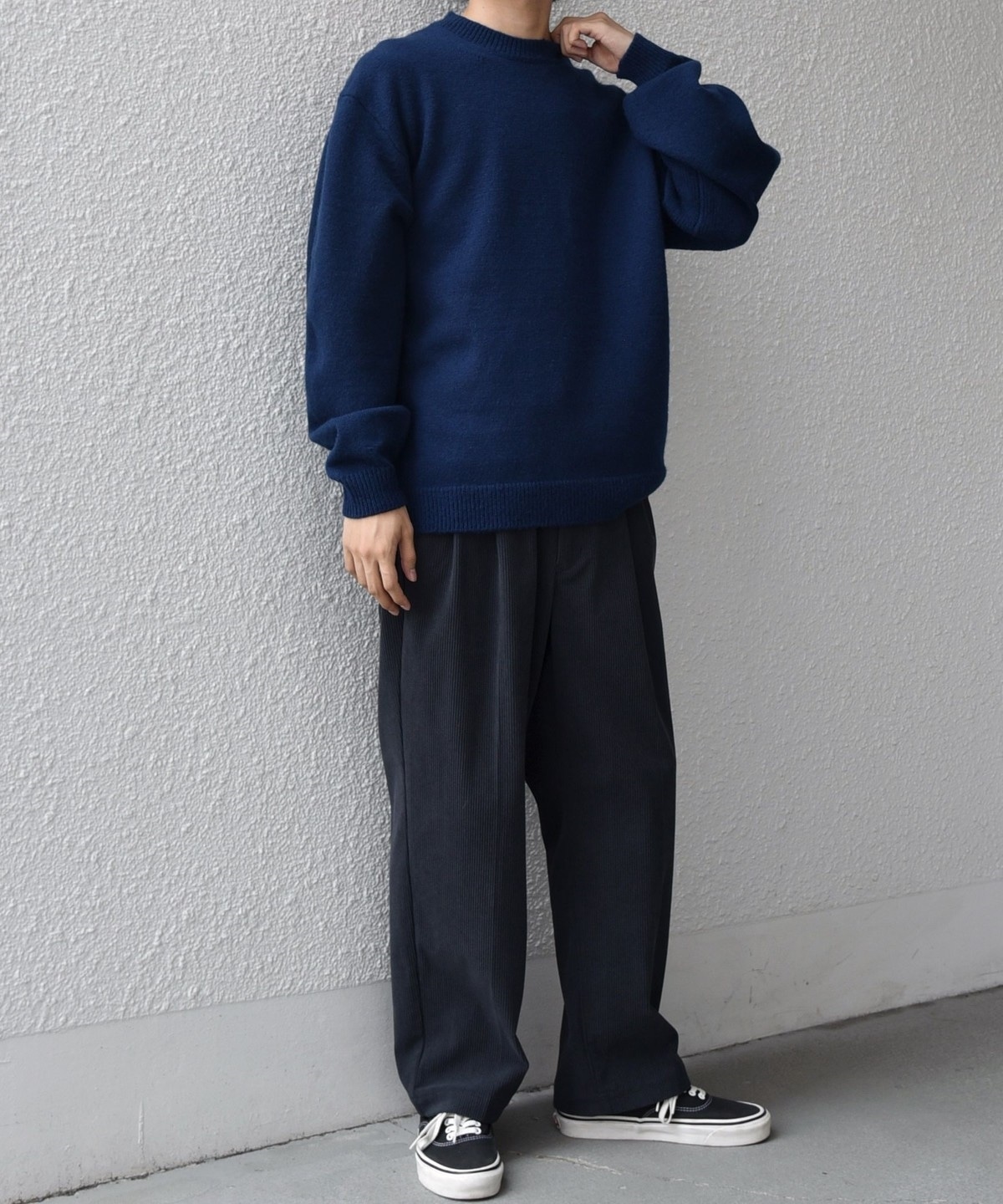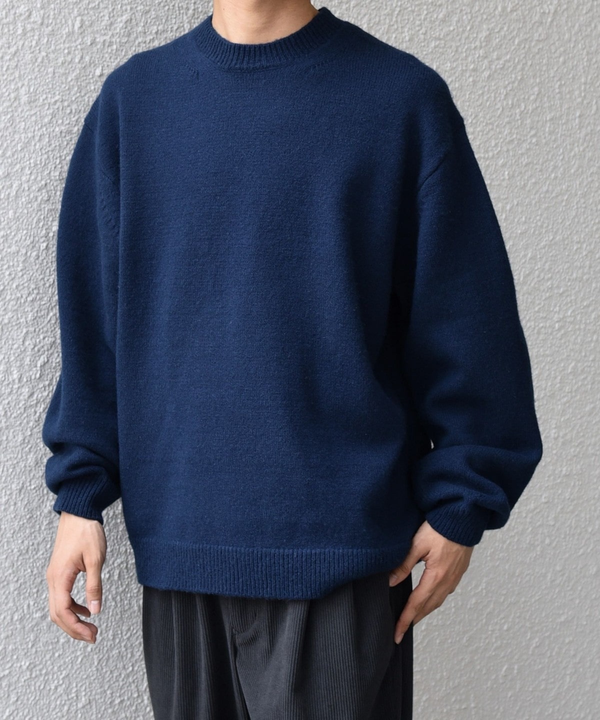 カジュアルにもきれいめにも使い勝手の良い、大人な仕上がりのクルーネックニット。