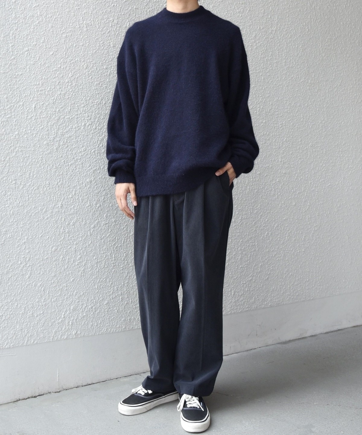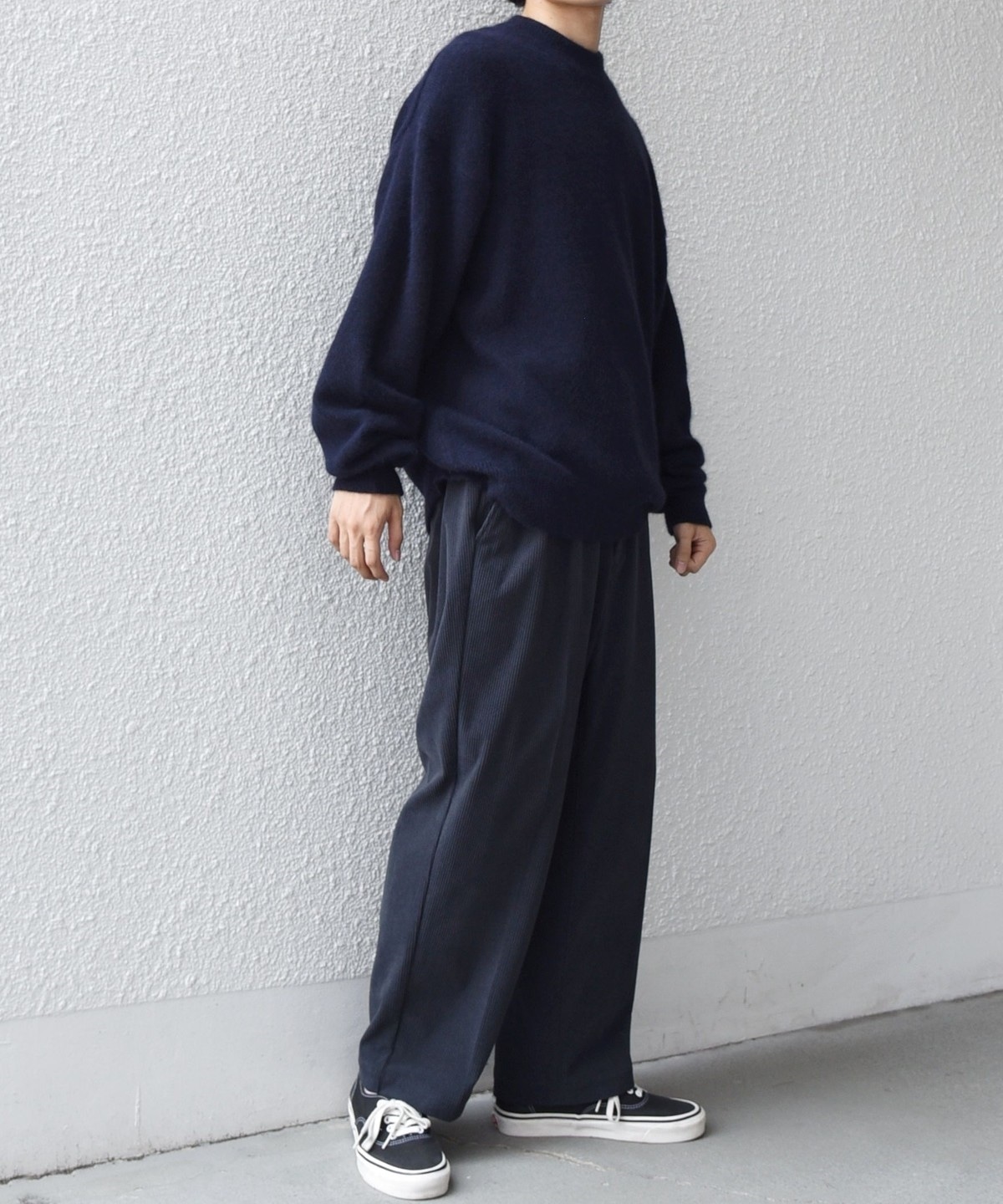 リラックスフィットながら、アウターの中にも着こみやすい絶妙なサイズ感に調整しました。