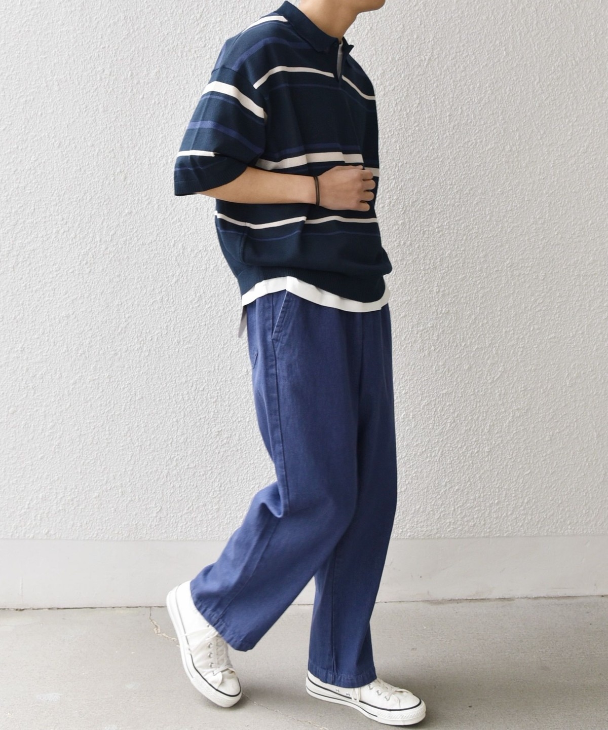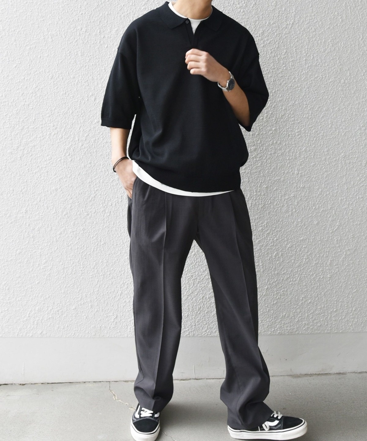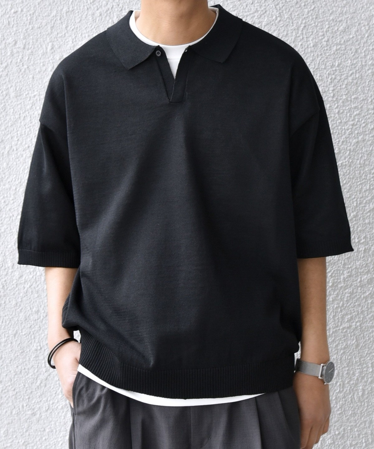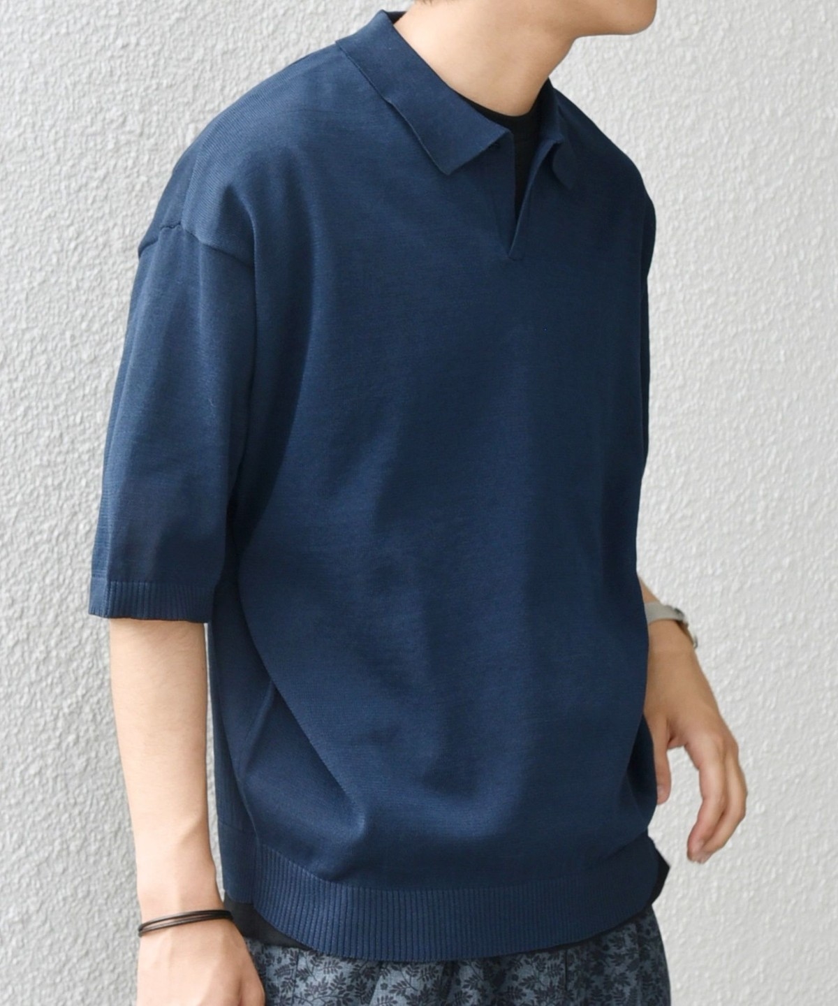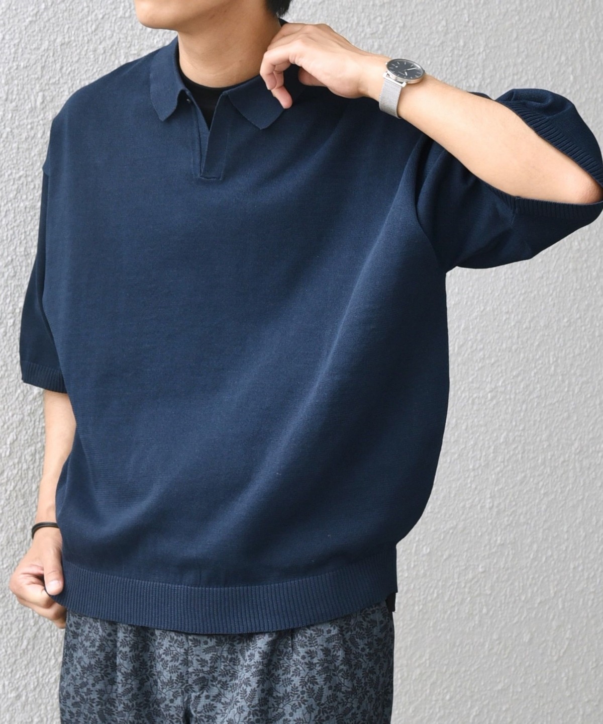 カットソーのポロシャツでは出せない、上品なニットならではの柔らかな表情がポイントです。