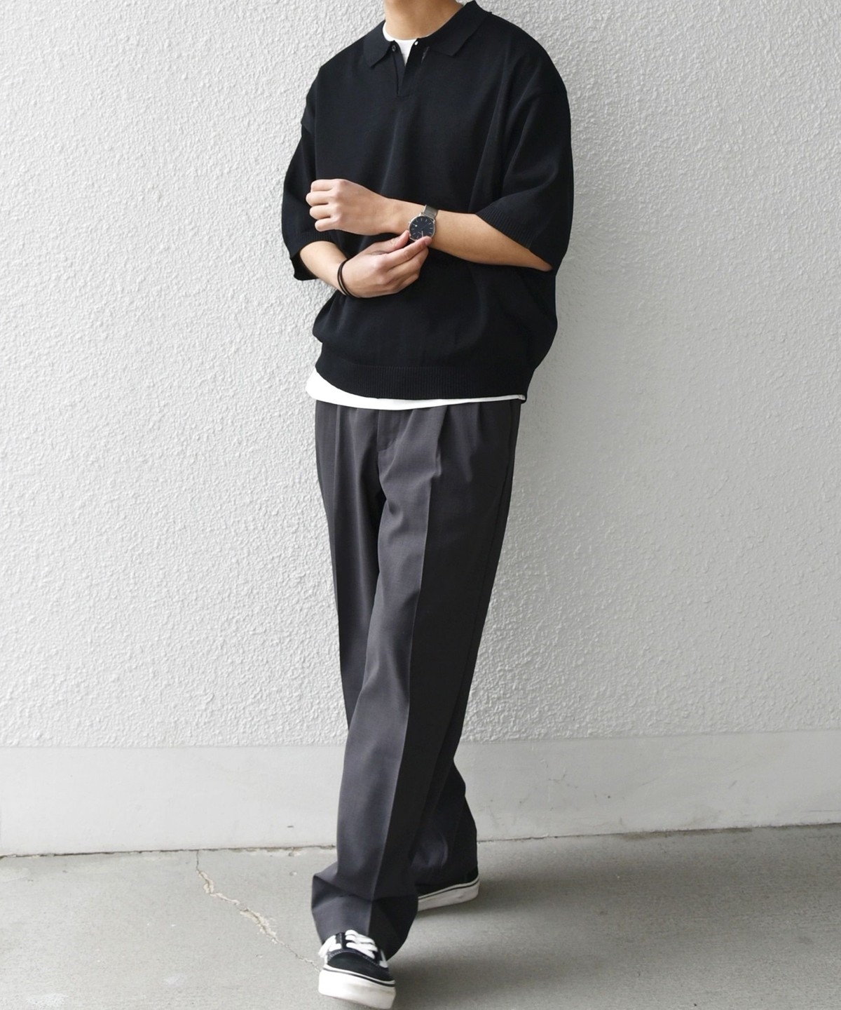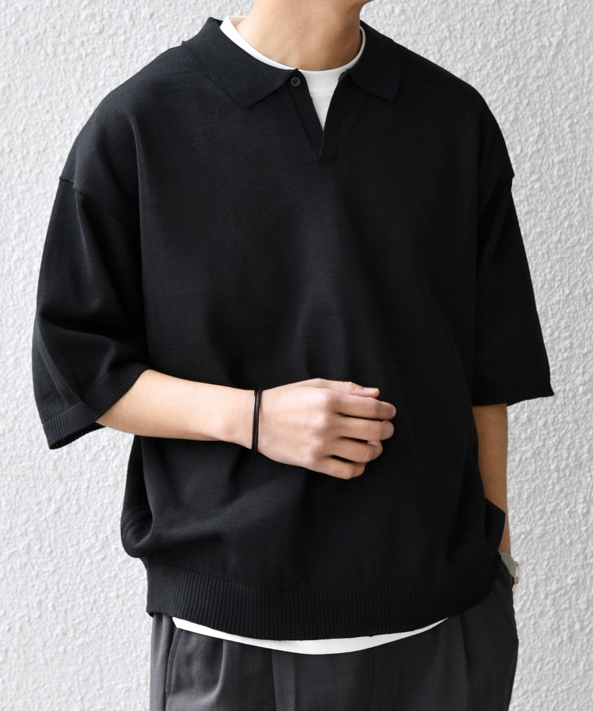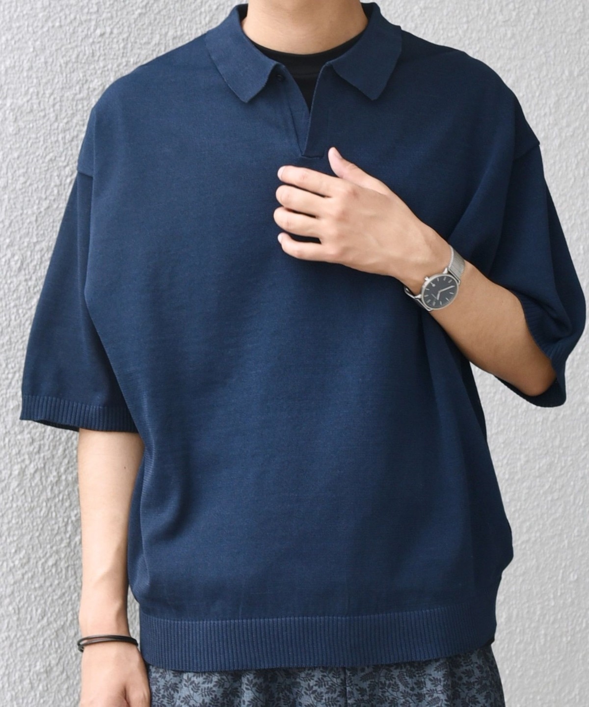 トレンドのニットポロシャツを大人のリラックスシルエットで演出したアイテム。