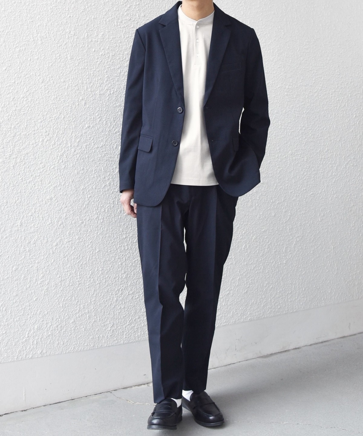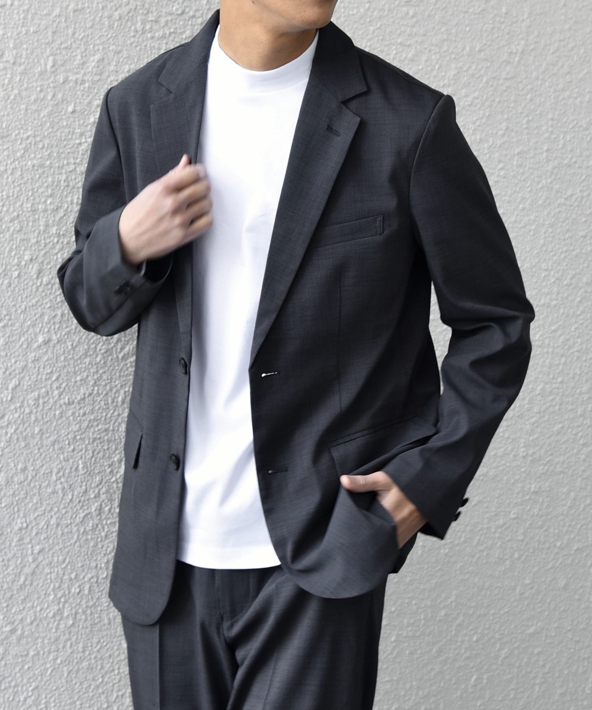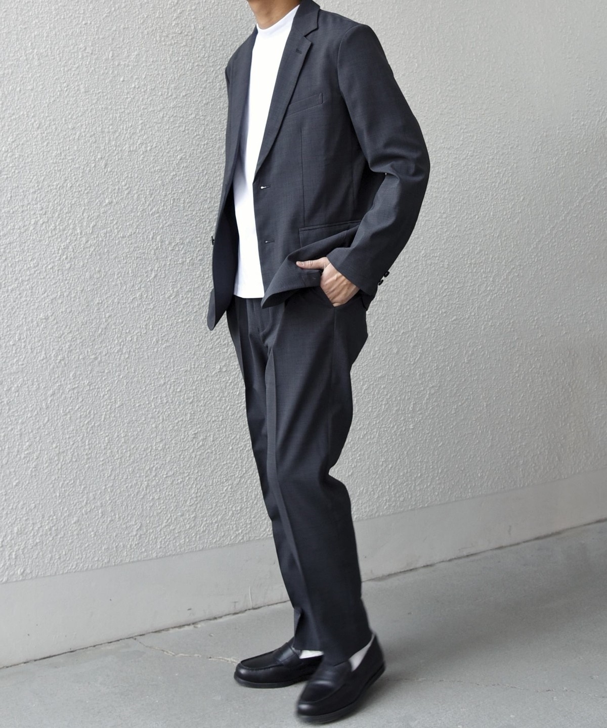 シャープに見えるセットアップスーツですが、ジャケットのラペル幅をやや太めにデザインすることで程よくクラシックな印象をプラス。